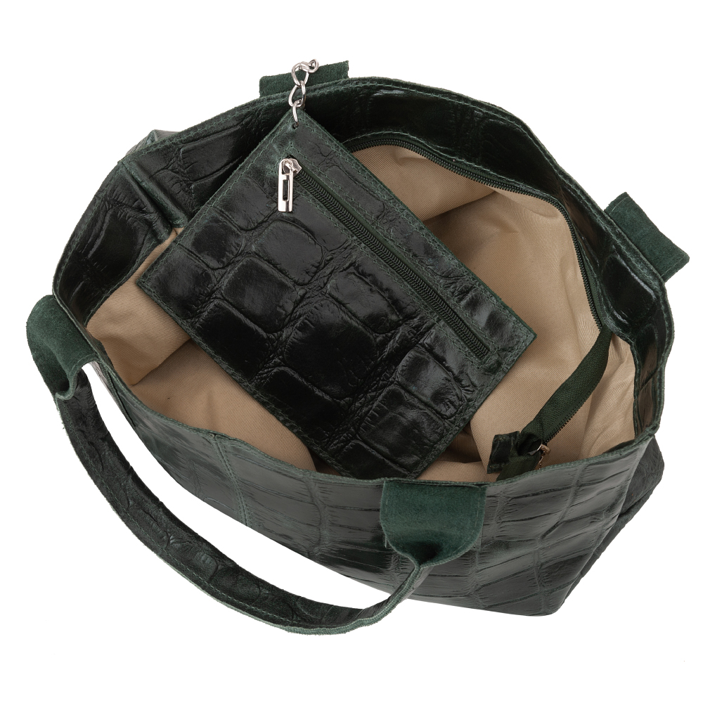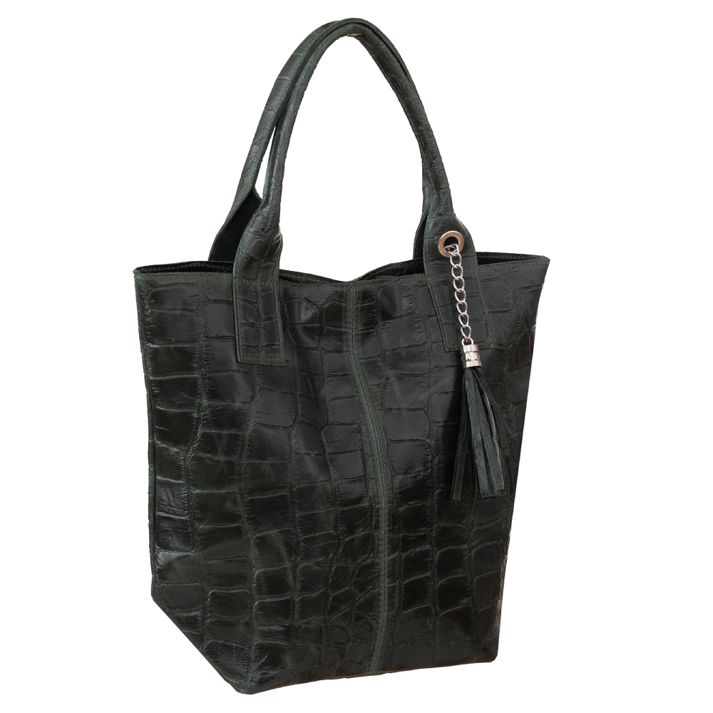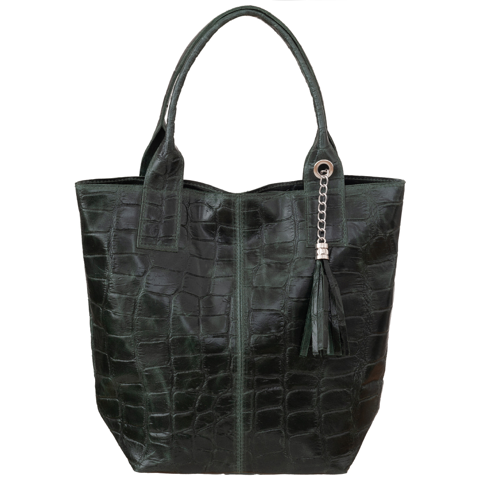 VERA PELLE Włoska skórzana torebka worek wykonana z naturalnej skóry z motywem łuski krokodyla.