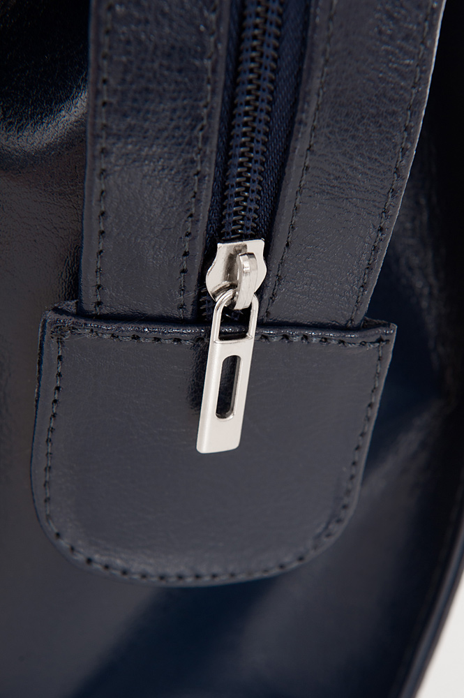 DAN-A polska A4 skórzana torebka wykonana z wysokogatunkowej naturalnej skóry licowej. Zamykana od góry na zamek. Torebka dwukomorowa przedzielona na środku dużą kieszenią na suwak na całej szerokości. Dodatkowo wewnątrz jedna kieszonka na zamek + kieszonka na telefon. Wnętrze wykończone trwałą, czarną podszewką. Torebka od spodu usztywniona oraz podbita nożkami, aby nie niszczył i nie rysował się spód. Elementy wykończenia w kolorze srebrnym.