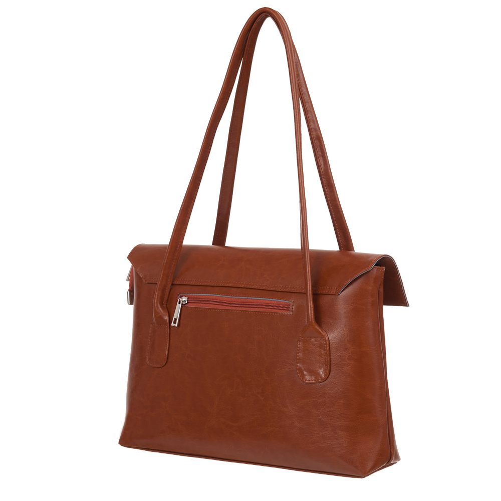 DAN-A polska skórzana torebka wykonana z wysokogatunkowej naturalnej skóry licowej. Zamykana na suwak + klapa na magnes. Torebka dwukomorowa przedzielona dużą kieszenią na suwak na całej szerokości. Dodatkowo wewnątrz jedna kieszonka na zamek + kieszonka na telefon. Z tyłu torebki pojemna kieszeń na suwak. Wnętrze wykończone trwałą, czarną podszewką. Torebka od spodu usztywniona oraz podbita metalowymi nóżkami, przeciw niszczeniu spodu. Elementy wykończenia w kolorze srebrnym.