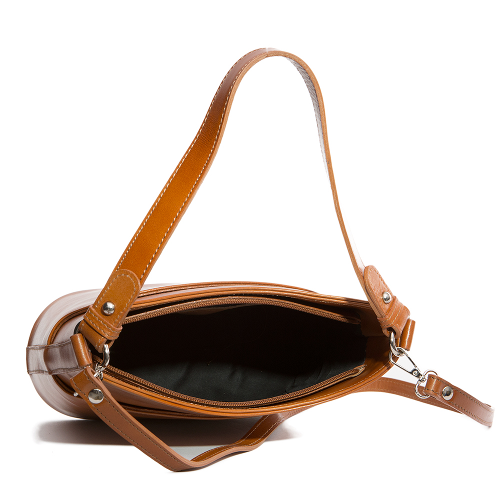 Włoska klasyczna skórzana torebka wykonana z wysokogatunkowej naturalnej gładkiej skóry licowej firmy Vera Pelle. Zamykana z góry na suwak. Torebka jednokomorowa. Wewnątrz jedna kieszonka na zamek oraz jedna na telefon. Wnętrze wykończone trwałą, ciemną podszewką. Dodatkowo z przodu iz tyłu torebki duża kieszeń na magnes. Torebka od spodu usztywniona oraz podbita nóżkami, aby spód się nie niszczył. Elementy wykończenia w kolorze srebrnym. Dodatkowy długi pasek w komplecie.