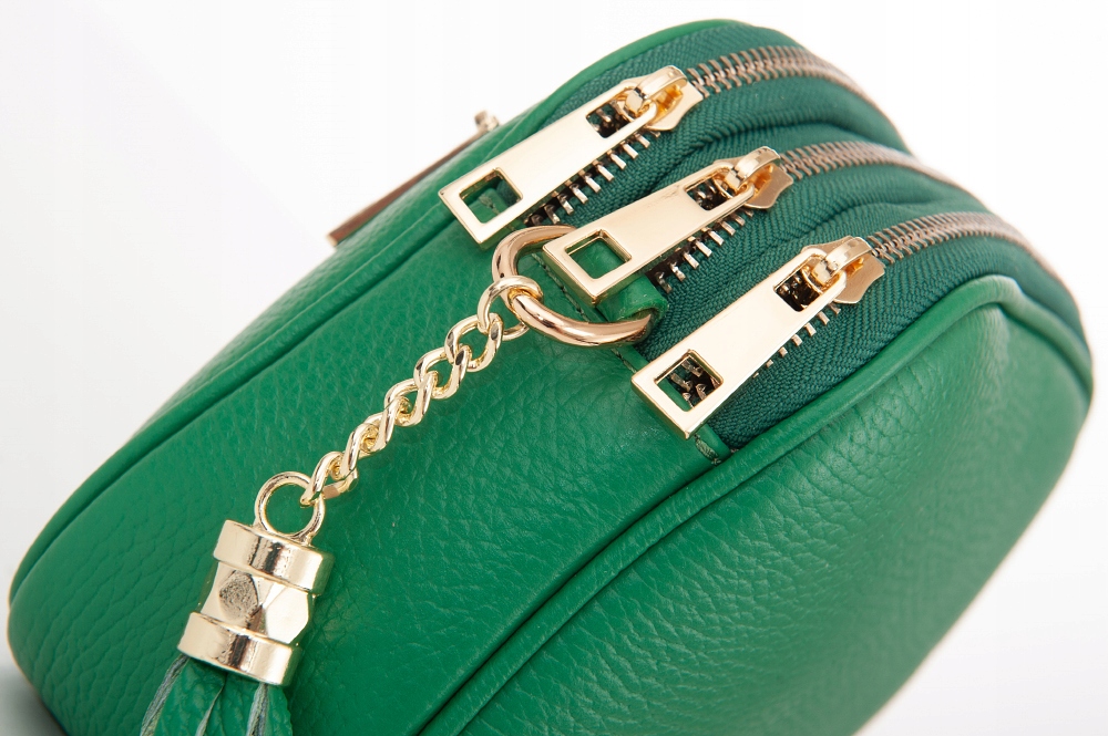 Skórzany pasek z możliwością regulowania długości 70-136 cm oraz całkowitego odpięcia, dzięki czemu torebkę można nosić jako elegancką kopertówkę. Suwak zakończony modnym pękiem frędzli.