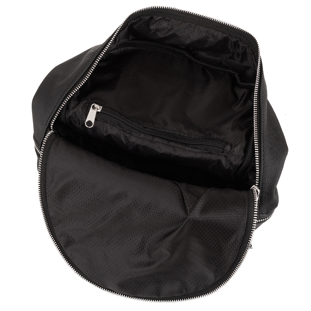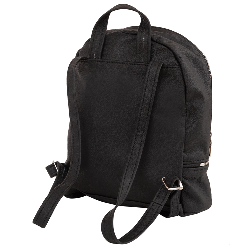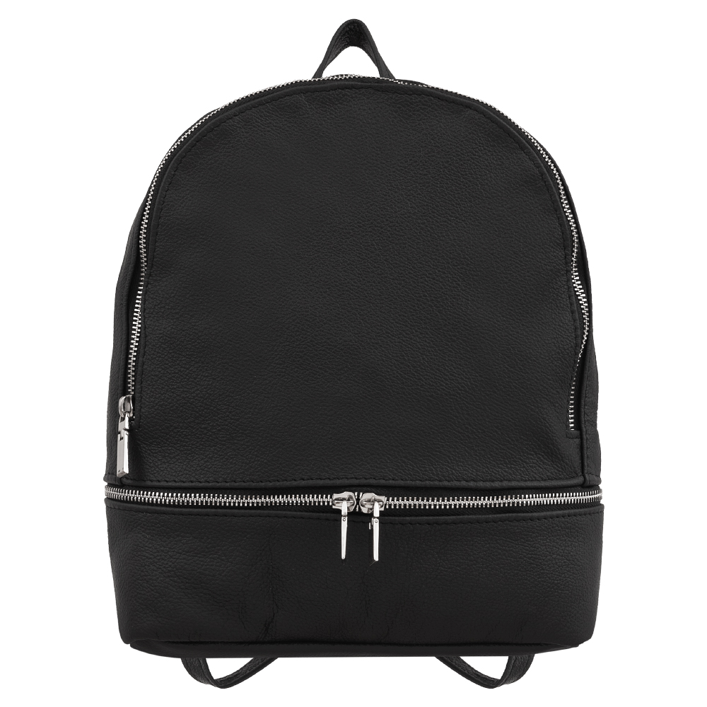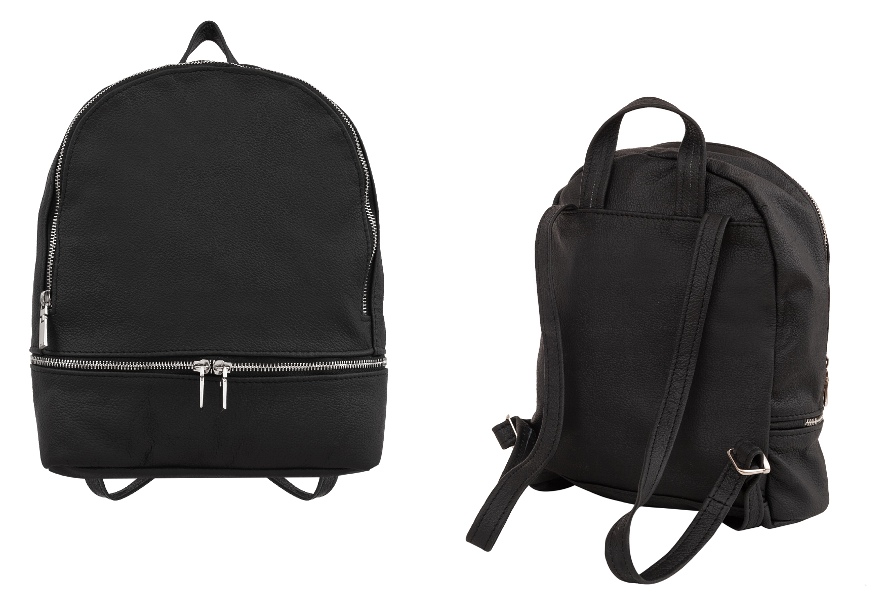 Modny i elegancki skórzany PLECAK wykonany w całości z wysokogatunkowej naturalnej, gładkiej miękkiej skóry. Zamykany dookoła na zamek. W głównej komorze kieszonka na zamek. Wnętrze wykończone materiałową trwałą, czarną podszewką. Dodatkowo jedna kieszonka pozioma z przodu. Elementy wykończenia w kolorze srebrnym. Uszy z możliwością regulacji długości do max 90 cm. Można nosić jako plecak lub w dłoni.
