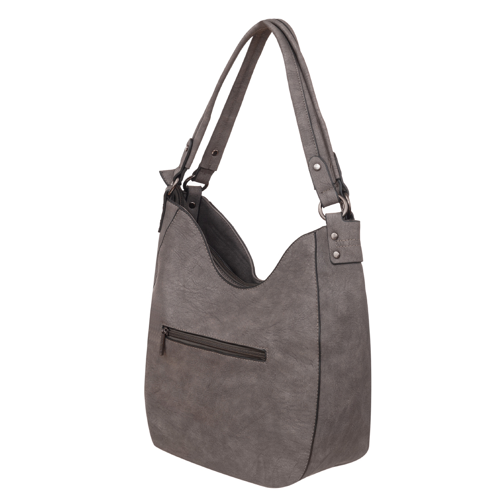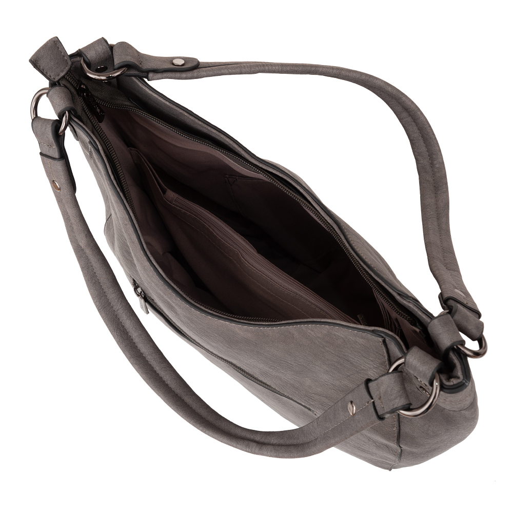 Modna, klasyczna A4 torebka wykonana z wysokogatunkowej gładkiej skóry ekologicznej wysokiej jakości. Zamykana z góry na zamek na całej szerokości. Torebka dwukomorowa, zorganizowana w środku i przedzielona dużą kieszenią na zamek. Wewnątrz 2 kieszonki na zamek, jedna na telefon + dodatkowa kieszeń na drobiazgi. Wnętrze wykończone trwałą, materiałową podszewką. Dodatkowo z tyłu torebki kieszonka na suwak. Torebka od spodu delikatnie usztywniona. Elementy wykończenia w kolorze srebrnym (inox). W komplecie długi regulowany pasek na ramię o długości max. 129 cm.