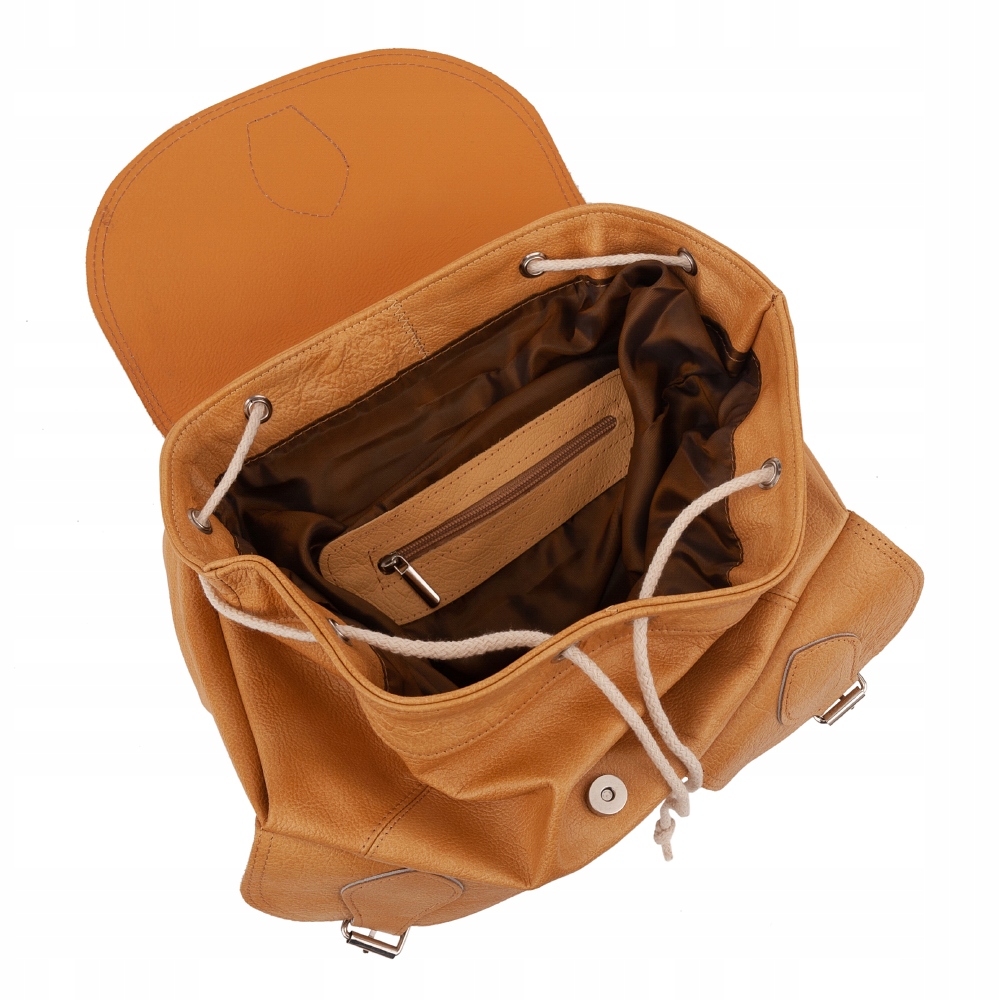 Polski skórzany A4 porządny plecak wykonany w 100% z miękkiej skóry naturalnej. Zamykany na klapę z magnesem + sznurek. Plecak jednokomorowy. Wewnątrz jedna kieszonka na zamek oraz jedna na telefon. Z przodu 2 x kieszonka na magnes. Wnętrze wykończone trwałą mocną, materiałową podszewką. Możliwość regulacji długości pasków. Elementy metalowe w kolorze srebrnym. Dno usztywnione.