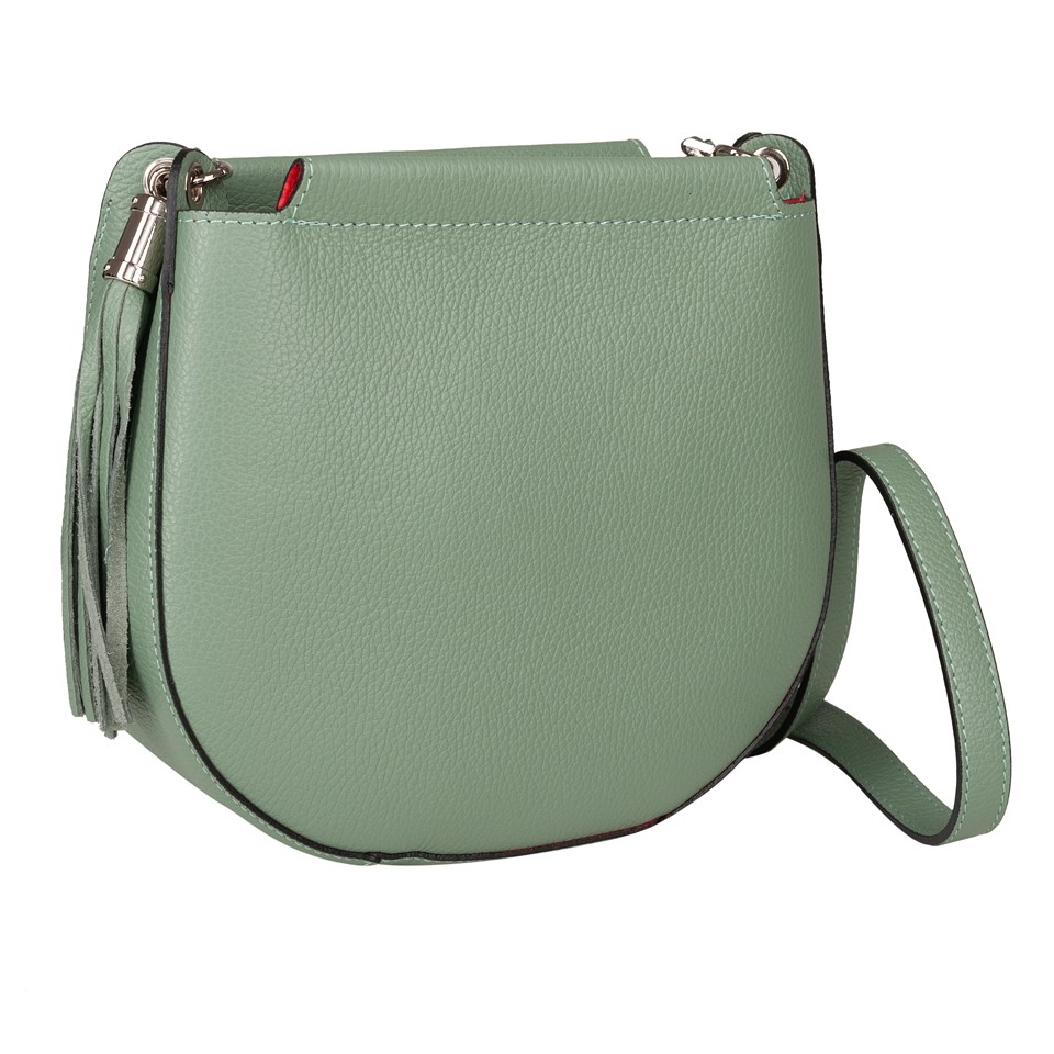 Włoska skórzana torebka listonoszka wykonana z wysokogatunkowej naturalnej skóry firmy VERA PELLE. Zamykana z góry na suwak. Torebka jednokomorowa, wewnątrz jedna kieszonka. Elementy wykończenia w kolorze srebrnym. Skórzany pasek z możliwością regulacji długości do 122 cm oraz całkowitego odpięcia, dzięki czemu torebkę można nosić jako elegancką kopertówkę. Suwak zakończony modnym pękiem frędzli.