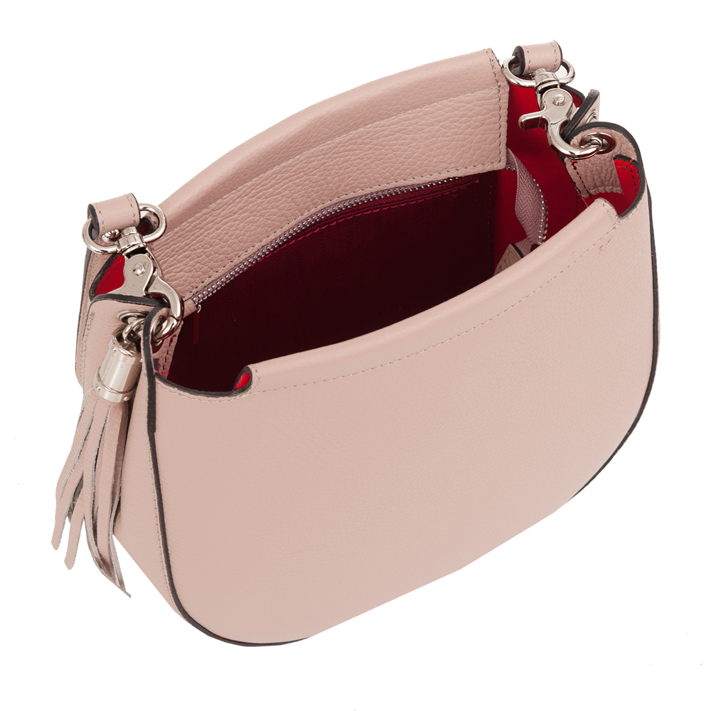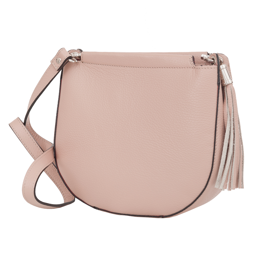 Włoska skórzana torebka listonoszka wykonana z wysokogatunkowej naturalne skóry firmy VERA PELLE. Zamykana z góry na suwak. Torebka jednokomorowa, wewnątrz jedna kieszonka. Elementy wykończenia w kolorze srebrnym. Skórzany pasek z możliwością regulacji długości do 122 cm oraz całkowitego odpięcia, dzięki czemu torebkę można nosić jako elegancką kopertówkę. Suwak zakończony modnym pękiem frędzli.