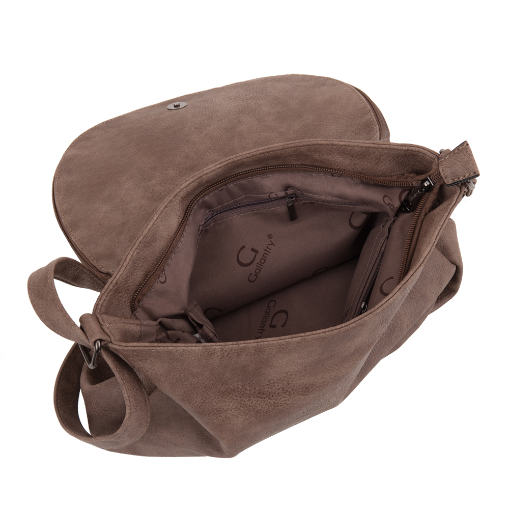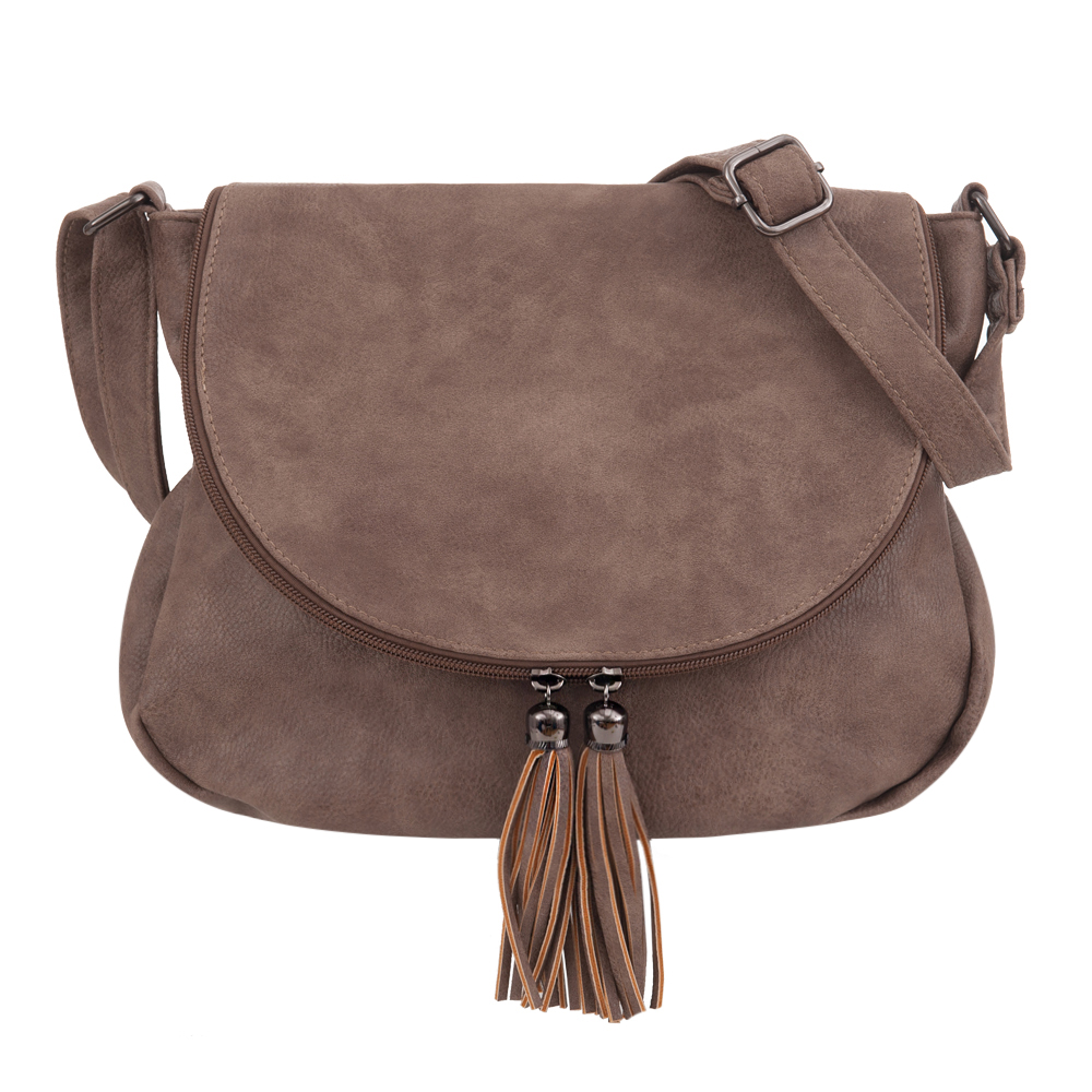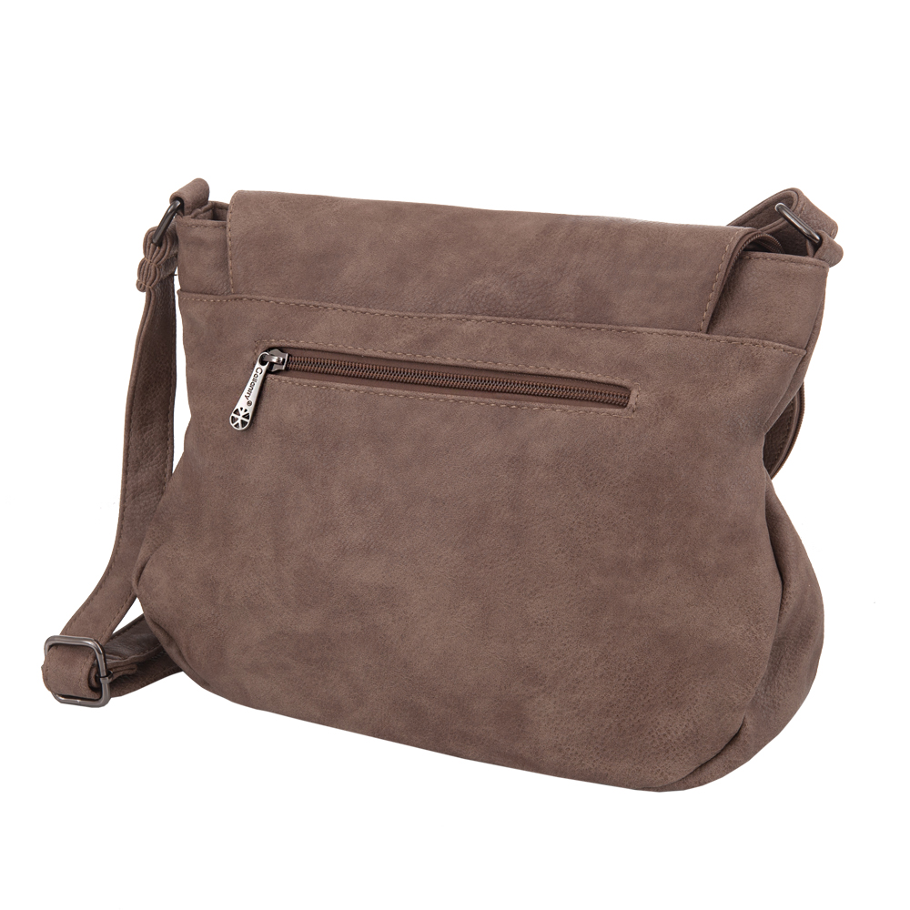 Modna torebka wykonana z wysokogatunkowej miękkiej skóry ekologicznej. Zamykana na suwak + klapa na magnes. Torebka jednokomorowa przedzielona dużą kieszenią na suwak na całą szerokość torebki + w środku jedna kieszonka na zamek oraz jedna na telefon. Wnętrze wykończone trwałą podszewką kolorystycznie dopasowaną do skóry. Długi, regulowany pasek umożliwia wygodne noszenie na ramieniu lub przez ramię jak listonoszkę. Dodatkowa kieszeń w klapie torebki na suwaki + kieszonka na suwak z tyłu.