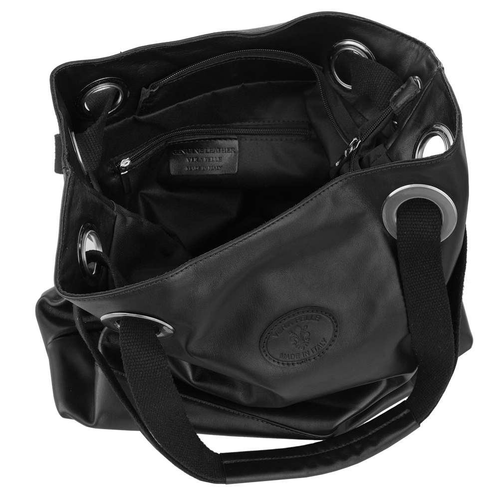 Vera Pelle - włoska XL skórzana torebka worek wykonana z wysokogatunkowej miękkiej naturalnej skóry cielęcej. Oryginalna torebka w miejskim stylu, idealna na codzień. Zamykana z góry na suwak. Torebka jednokomorowa. Wewnątrz jedna kieszonka na zamek oraz jedna na telefon. Wnętrze wykończone trwałą materiałową podszewką. Dno lekko usztywnione. Oryginalne uszy parciano-skórzane.