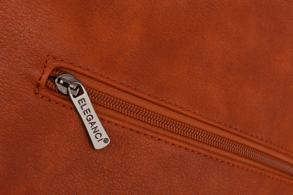 Modna torebka wykonana z wysokogatunkowej miękkiej gładkiej skóry ekologicznej najwyższej jakości. Zamykana z góry na zamek na całej szerokości. Torebka jednokomorowa przedzielona na środku dużą kieszenią na zamek, zorganizowana + wewnątrz kieszonka na zamek, jedna na telefon + duża kieszeń na zamek w środku dzieląca torebkę na dwie części + wsuwna kieszonka na drobiazgi. Wnętrze wykończone trwałą, bawełnianą mocną podszewką. Dodatkowo z tyłu torebki kieszonka na zamek + ukośna kieszonka na zamek z przodu. Torebka od spodu usztywniona. Elementy wykończenia w kolorze srebrnym. W komplecie długi regulowany pasek na ramię o długości max. 130 cm.