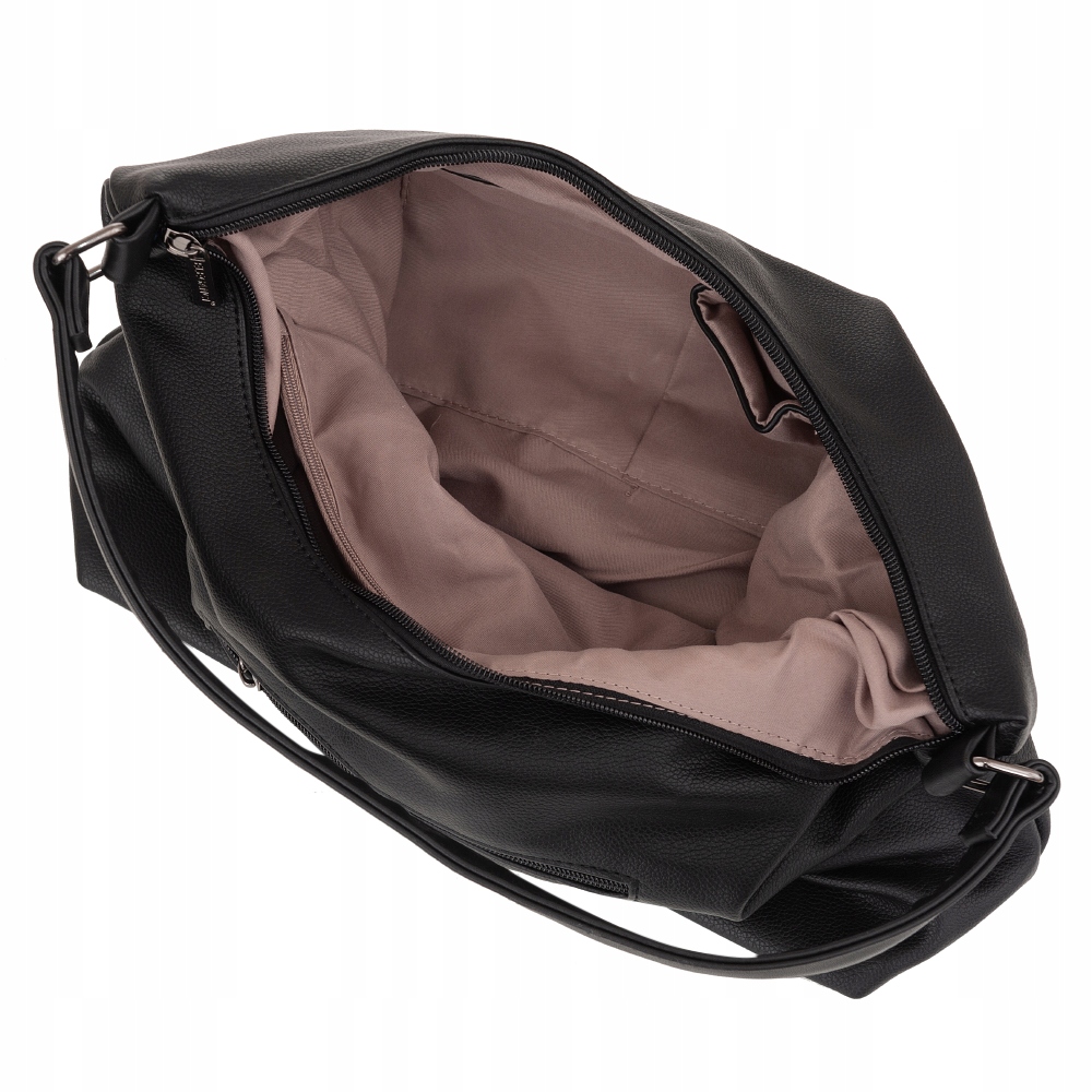 Modna torebka wykonana z wysokogatunkowej miękkiej gładkiej skóry ekologicznej najwyższej jakości. Zamykana z góry na zamek na całej szerokości. Torebka dwukomorowa przedzielona na środku dużą kieszenią na zamek, zorganizowana + wewnątrz kieszonka na zamek, jedna na telefon + duża kieszeń na zamek w środku dzieląca torebkę na dwie części + wsuwna kieszonka na drobiazgi.