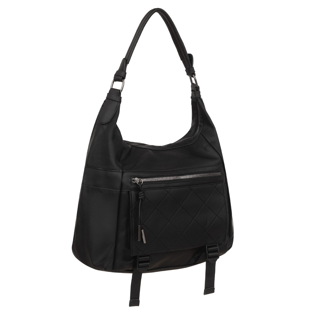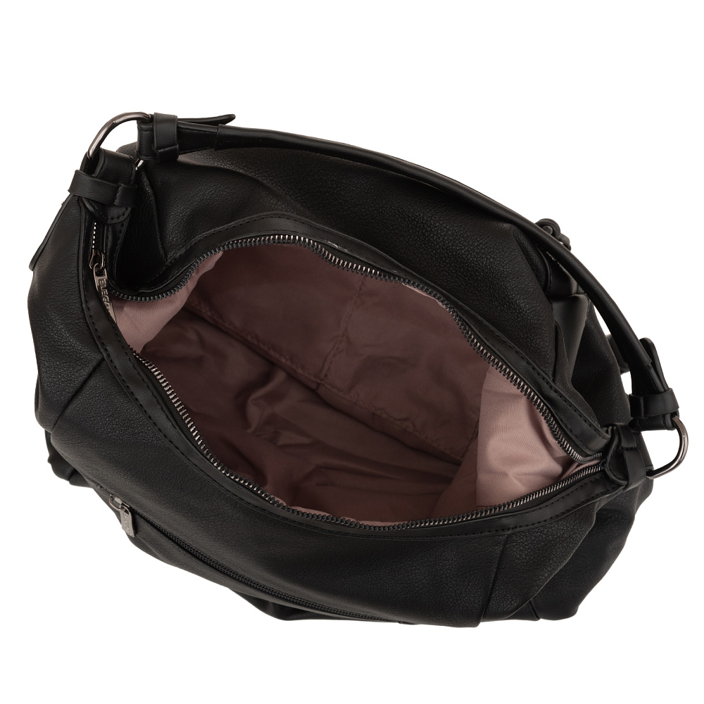 Modna torebka wykonana z wysokogatunkowej miękkiej gładkiej skóry ekologicznej najwyższej jakości. Zamykana z góry na zamek na całej szerokości. Torebka dwukomorowa, przedzielona na środku, zorganizowana + wewnątrz kieszonka na zamek, jedna na telefon + duża kieszeń na zamek w środku dzieląca torebkę na dwie części + wsuwna kieszonka na drobiazgi. Wnętrze wykończone trwałą, bawełnianą mocną podszewką. Dodatkowo z przodu i z tyłu torebki kieszonka na zamek. Torebka od spodu usztywniona. Elementy wykończenia w kolorze srebrnym. W komplecie długi regulowany pasek na ramię o długości max. 130 cm.