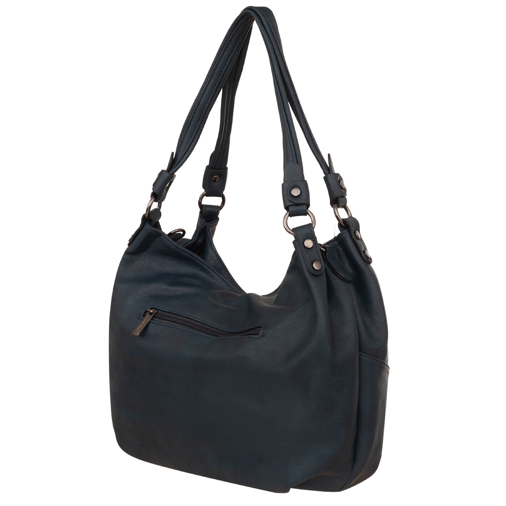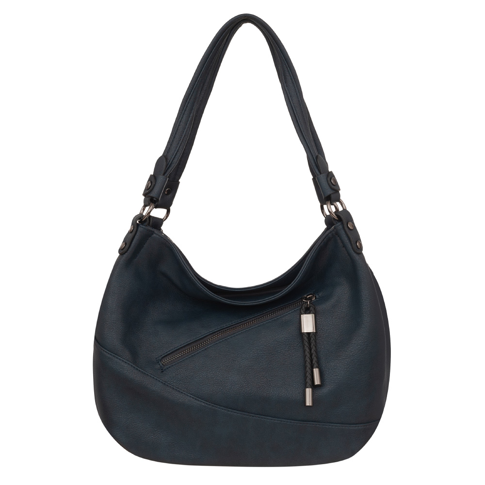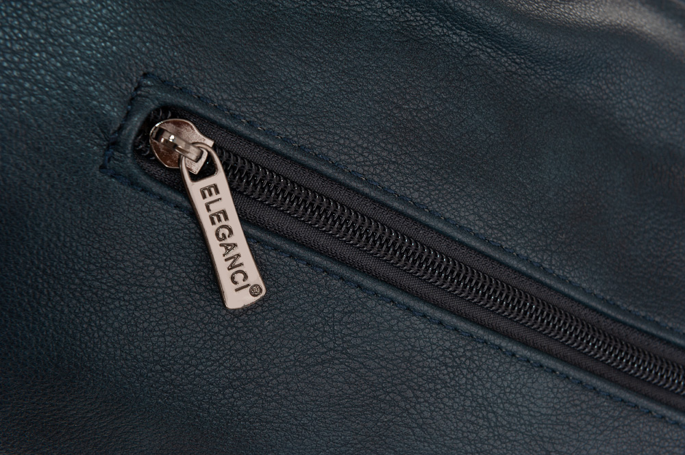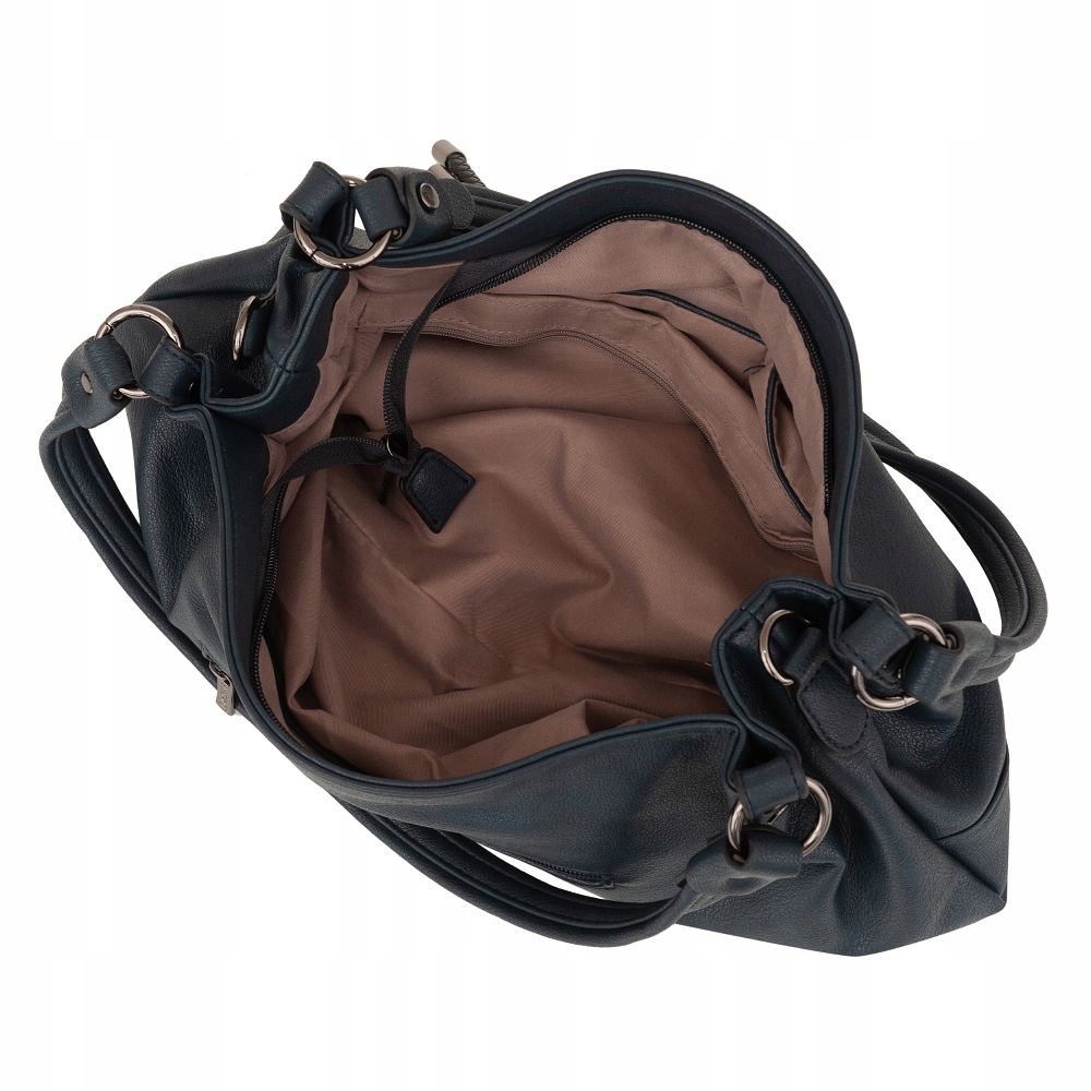 Modna torebka wykonana z wysokogatunkowej miękkiej gładkiej skóry ekologicznej najwyższej jakości. Zamykana z góry na zamek na całej szerokości. Torebka jednokomorowa przedzielona na środku dużą kieszenią na zamek, zorganizowana + wewnątrz kieszonka na zamek, jedna na telefon + duża kieszeń na zamek w środku dzieląca torebkę na dwie części + wsuwna kieszonka na drobiazgi. Wnętrze wykończone trwałą, bawełnianą mocną podszewką. Dodatkowo z tyłu torebki kieszonka na zamek + ukośna kieszonka na zamek z przodu. Torebka od spodu usztywniona. Elementy wykończenia w kolorze srebrnym. W komplecie długi regulowany pasek na ramię o długości max. 130 cm.