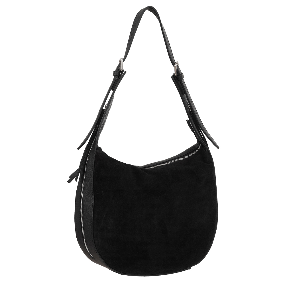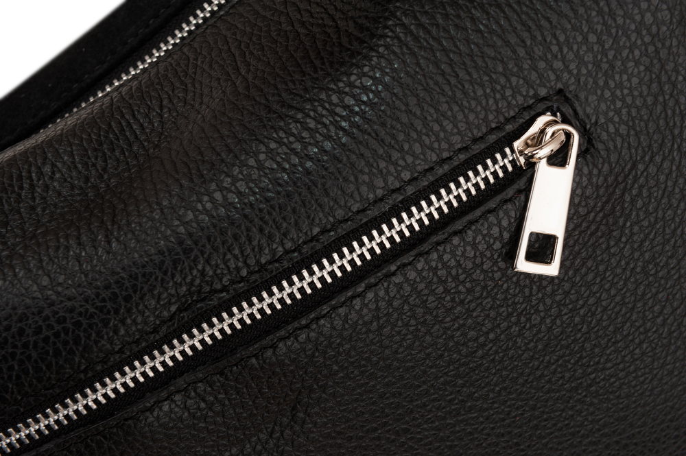 VERA PELLE włoska modna i pojemna skórzana torebka wykonana z wysokogatunkowej naturalnej skóry zamszowej łącznej ze skórą licową. Wygodny dostęp do środka, szczelnie zamykana na zamek. Torebka jednokomorowa, przedzielona kieszenią na zamek. Wewnątrz kieszonka na zamek + kieszeń na telefon + kieszonka dodatkowa na zamek. Po bokach torebki i z tyłu kieszonka na zamek. Torebka od środka wykończona porządną materiałową podszewką w kolorze dopasowanym do skóry. Elementy wykończenia w kolorze srebrnym. Wygodne szerokie ucho zapewnia wygodę noszenia.