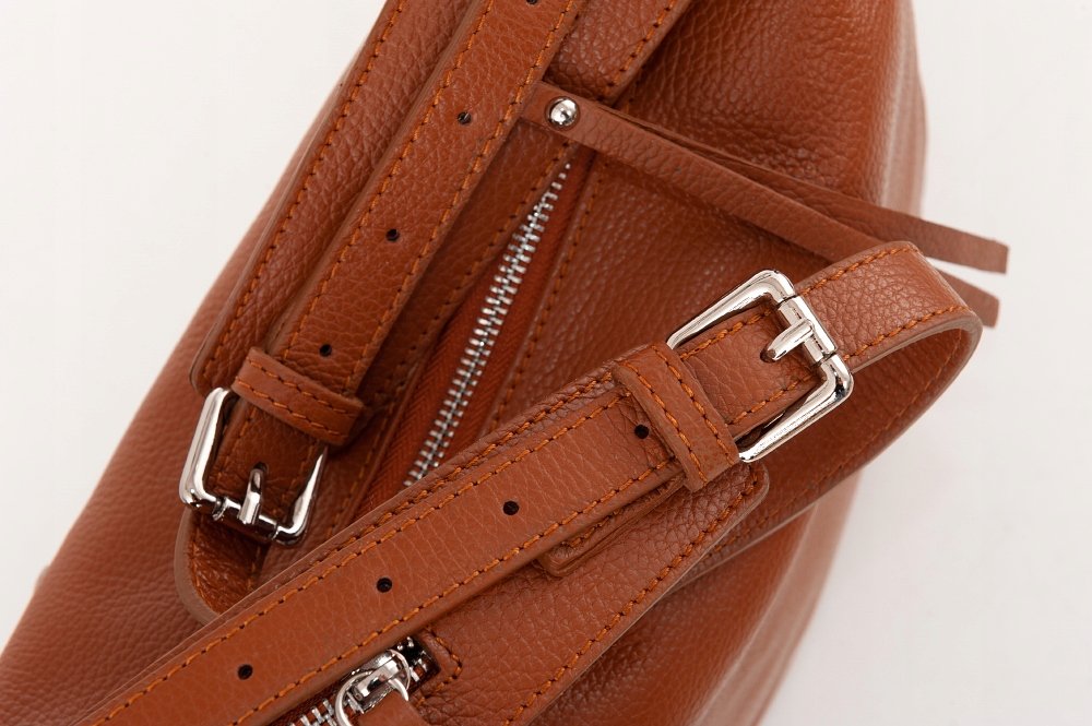 Strona główna » torebki skórzane włoskie » -30% Włoska owalna camel ruda skórzana torebka worek SKÓRA DOLARO półksiężyc