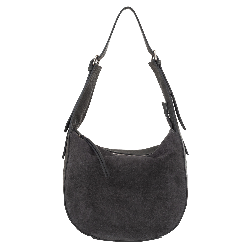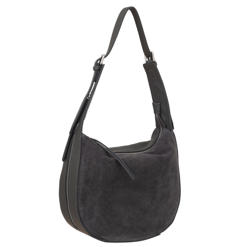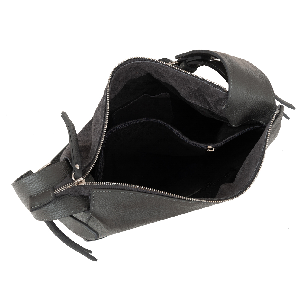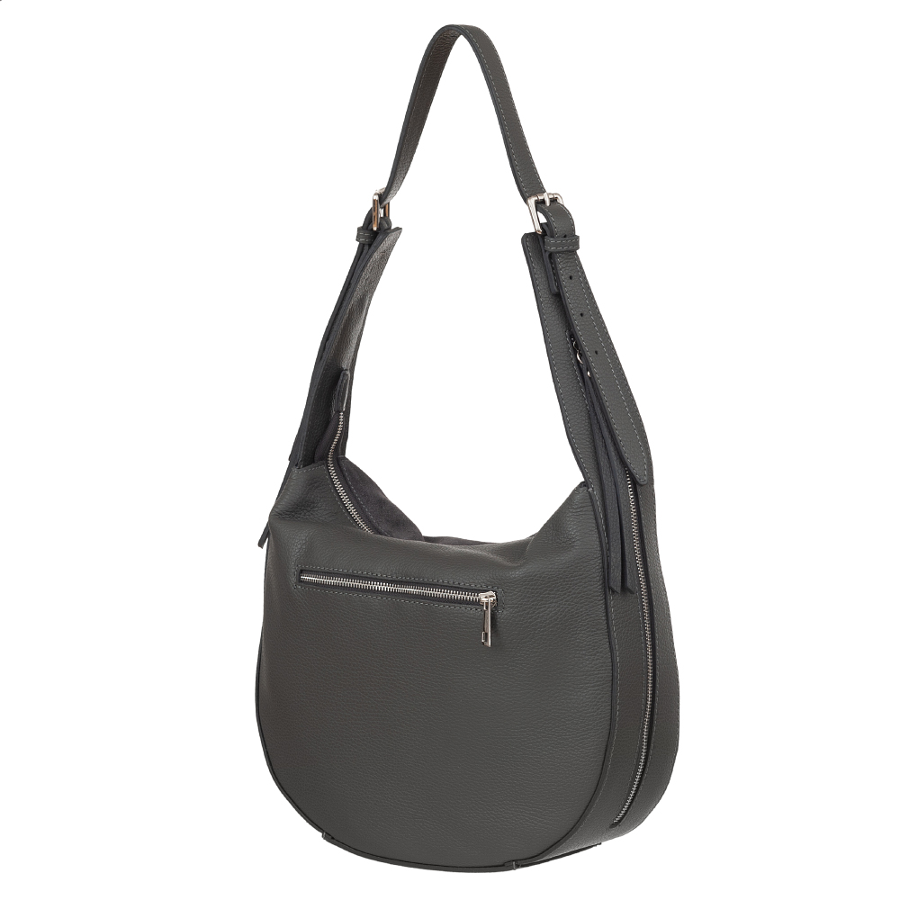 VERA PELLE włoska modna i pojemna skórzana torebka wykonana z wysokogatunkowej naturalnej skóry zamszowej łącznej ze skórą licową. Wygodny dostęp do środka, szczelnie zamykana na zamek. Torebka jednokomorowa, przedzielona kieszenią na zamek. Wewnątrz kieszonka na zamek + kieszeń na telefon + kieszonka dodatkowa na zamek. Po bokach torebki i z tyłu kieszonka na zamek. Torebka od środka wykończona porządną materiałową podszewką w kolorze dopasowanym do skóry. Elementy wykończenia w kolorze srebrnym. Wygodne szerokie ucho zapewnia wygodę noszenia.