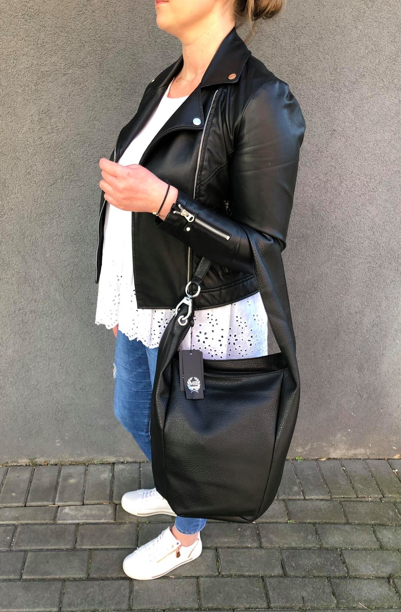 Asymetryczna skórzana torebka wykonana z wysokogatunkowej miękkiej skóry ekologicznej najwyższej jakości. Modna pojemna torba w miejskim stylu. Torebka jednokomorowa + wewnątrz kieszonka na zamek. Wnętrze wykończone mięciutkim materiałem. Elementy wykończenia w kolorze srebrnym.