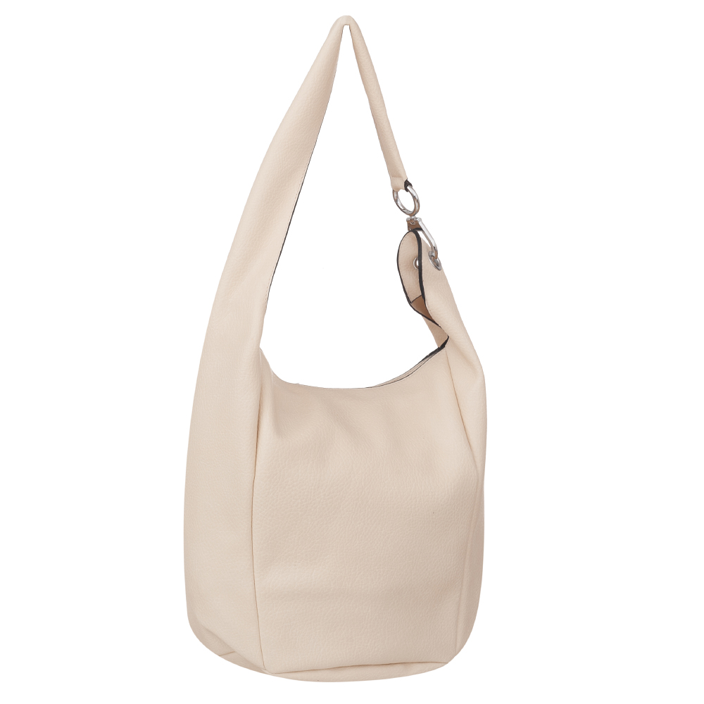 Asymetryczna skórzana torebka wykonana z wysokogatunkowej miękkiej skóry ekologicznej najwyższej jakości. Modna pojemna torba w miejskim stylu. Torebka jednokomorowa + wewnątrz kieszonka na zamek. Wnętrze wykończone mięciutkim materiałem. Elementy wykończenia w kolorze srebrnym.