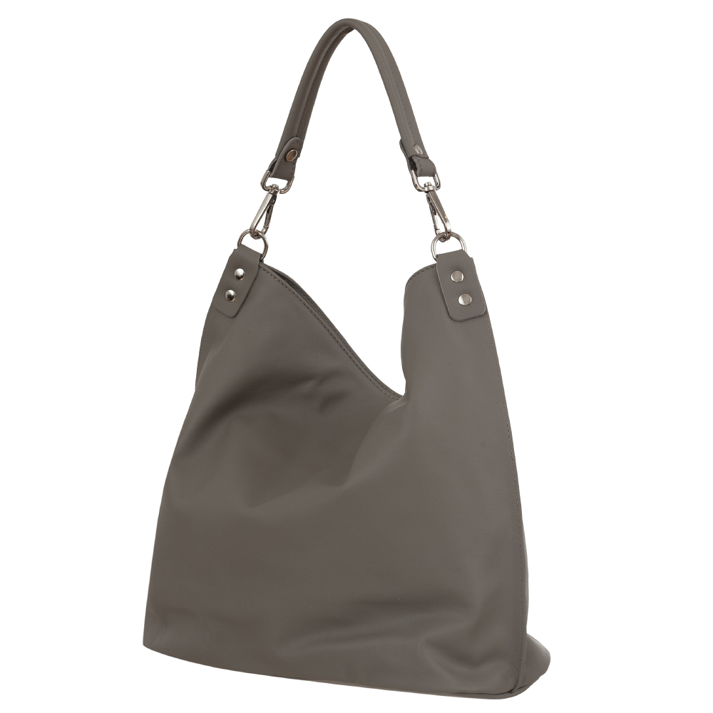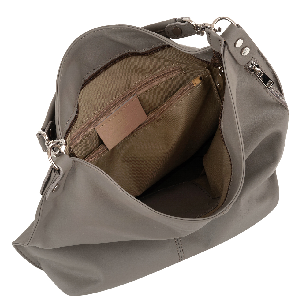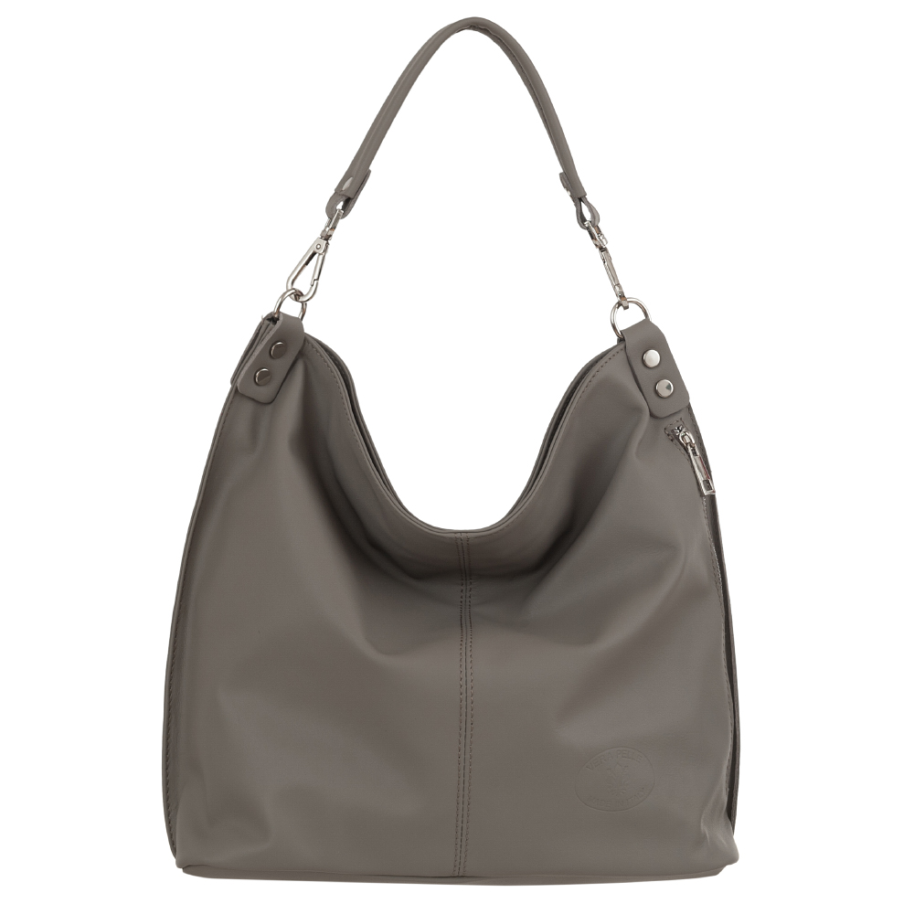 Vera Pelle - włoska XL skórzana torebka worek wykonana z wysokogatunkowej miękkiej naturalnej skóry cielęcej. Oryginalna torebka w miejskim stylu, idealna na codzień. Zamykana z góry na suwak. Torebka jednokomorowa. Wewnątrz 2 x kieszonka na zamek, kieszonka na drobiazgi + jedna na telefon. Z przodu pojemna kieszeń zamek. Wnętrze wykończone trwałą materiałową podszewką. Dno lekko usztywnione. W komplecie długi regulowany pasek na ramię o maksymalnej długości 125 cm. Możliwość całkowitego wypięcia krótszego ucha i noszenie na długim pasku.