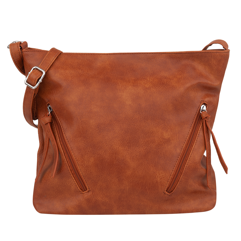 MUST HAVE - Modna, klasyczna torebka listonoszka w miejskim stylu wykonana z wysokogatunkowej skóry ekologicznej wysokiej jakości. Zamykana z góry na zamek na całej szerokości torebki. Torba jednokomorowa, zorganizowana w środku + wewnątrz kieszonka na zamek, jedna na telefon + dodatkowa kieszeń na zamek z tyłu. Z przodu dwie pionowe kieszonki na zamek. Wnętrze wykończone trwałą materiałową bawełnianą podszewką. Elementy wykończenia w kolorze srebrnym. Długi regulowany pasek na ramię o długości max. 130 cm.