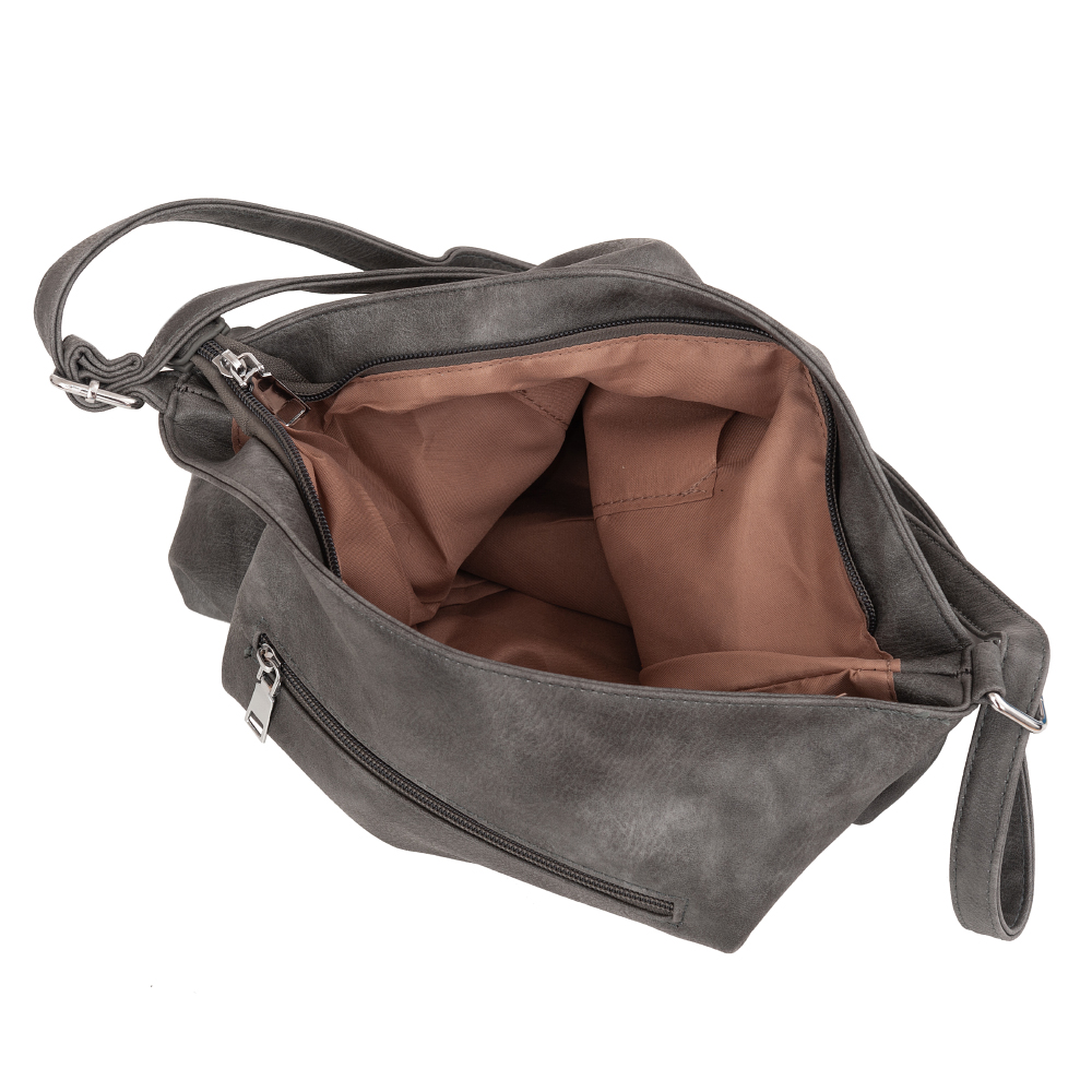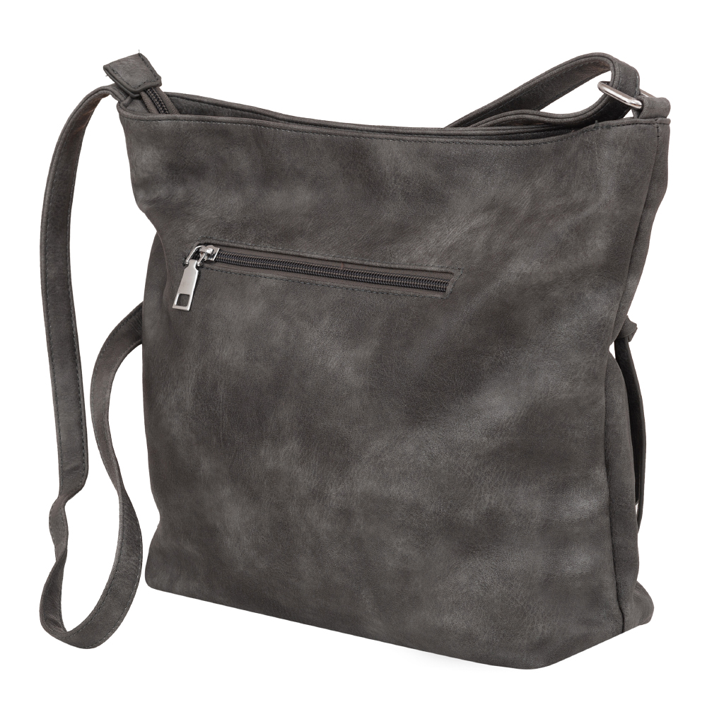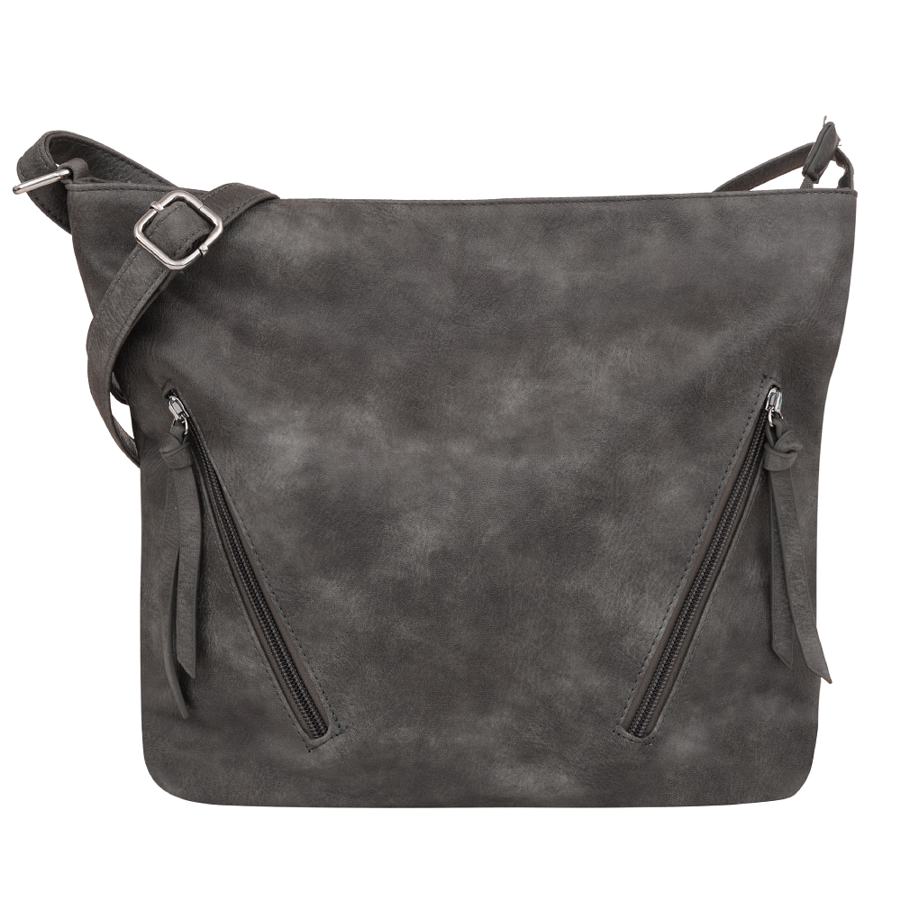 MUST HAVE - Modna, klasyczna torebka listonoszka w miejskim stylu wykonana z wysokogatunkowej skóry ekologicznej wysokiej jakości. Zamykana z góry na zamek na całej szerokości torebki. Torba jednokomorowa, zorganizowana w środku + wewnątrz kieszonka na zamek, jedna na telefon + dodatkowa kieszeń na zamek z tyłu. Z przodu dwie pionowe kieszonki na zamek. Wnętrze wykończone trwałą materiałową bawełnianą podszewką. Elementy wykończenia w kolorze srebrnym. Długi regulowany pasek na ramię o długości max. 130 cm.
