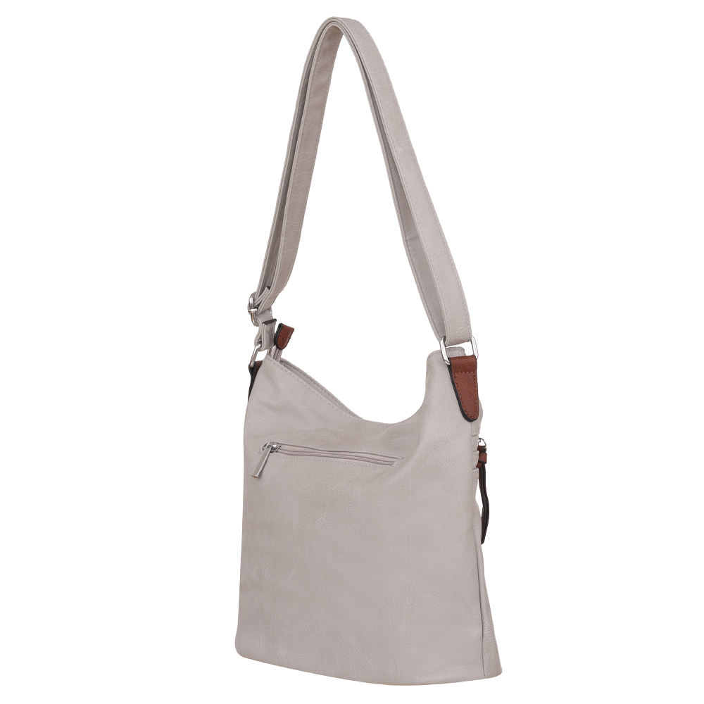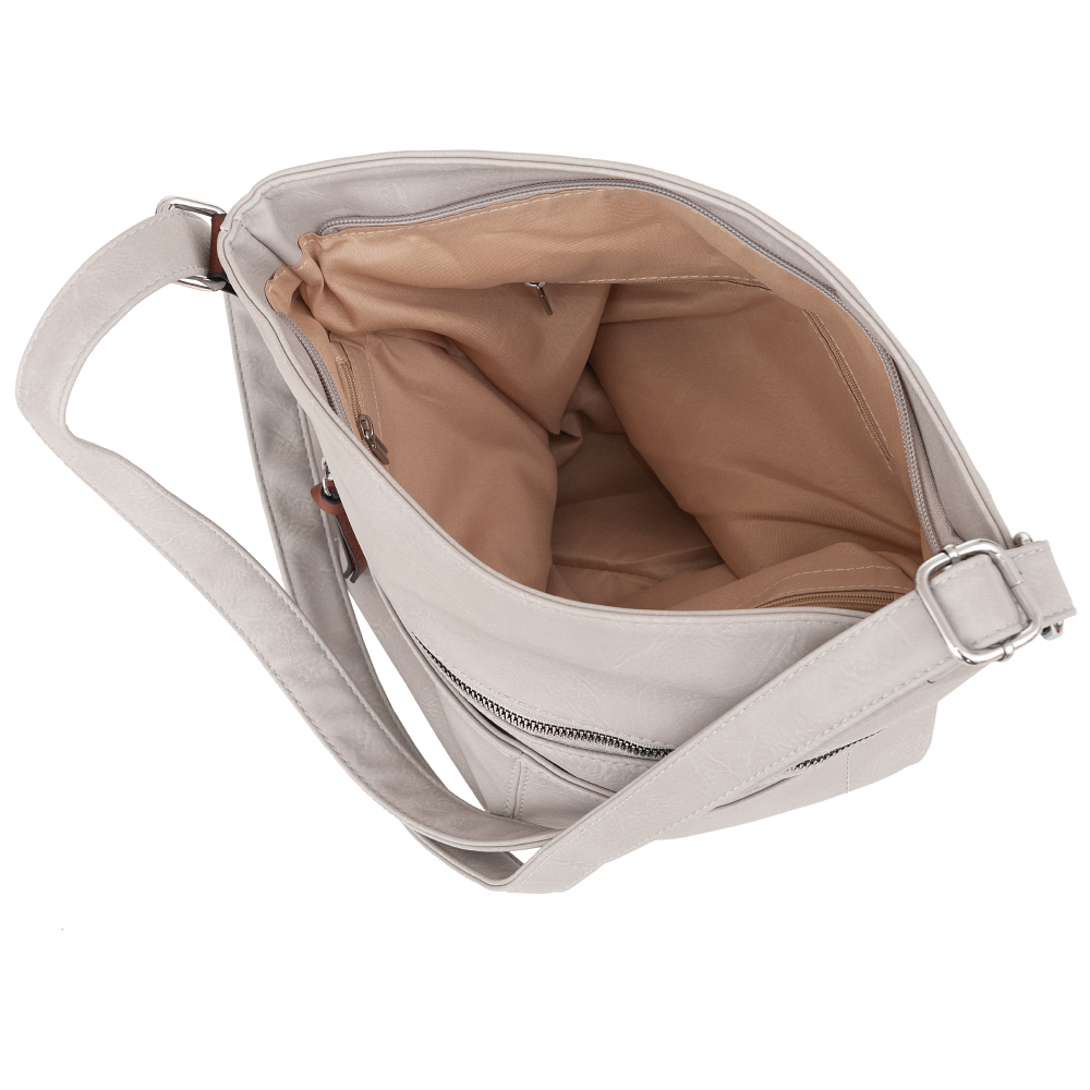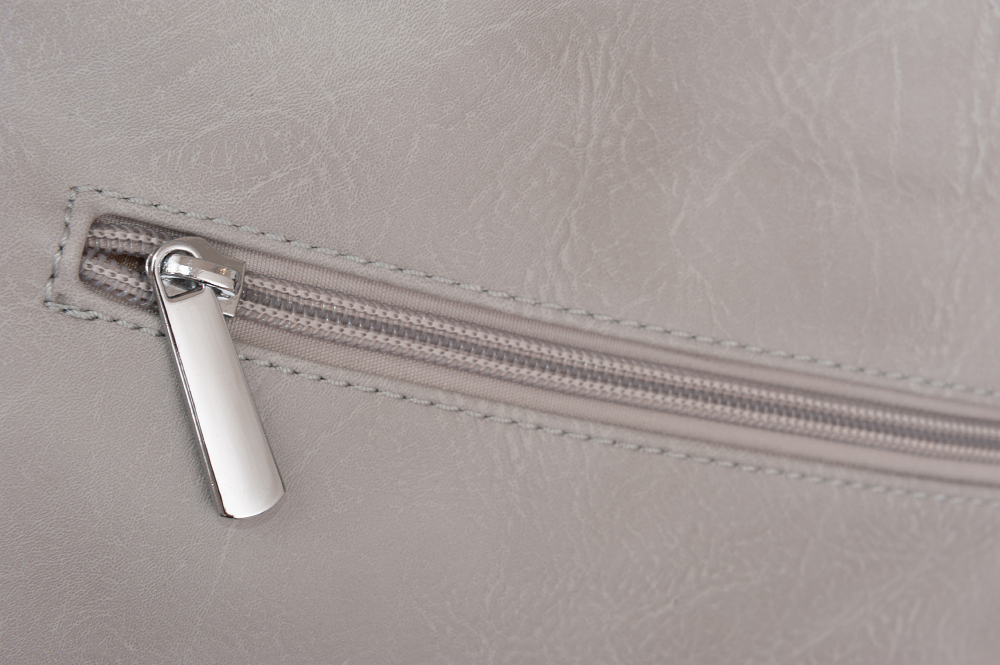 Oryginalna torebka listonoszka w miejskim stylu wykonana z wysokogatunkowej skóry ekologicznej. Zamykana z góry na zamek, torebka jednokomorowa, zorganizowana w środku + wewnątrz 2 x kieszonka na zamek, jedna na telefon + dodatkowa kieszeń na zamek z tyłu. Z przodu dwie pionowe kieszonki na rzep + kieszonka na zamek. Wnętrze wykończone trwałą materiałową bawełnianą podszewką. Elementy wykończenia w kolorze srebrnym. Długi regulowany pasek na ramię o długości max. 135 cm.