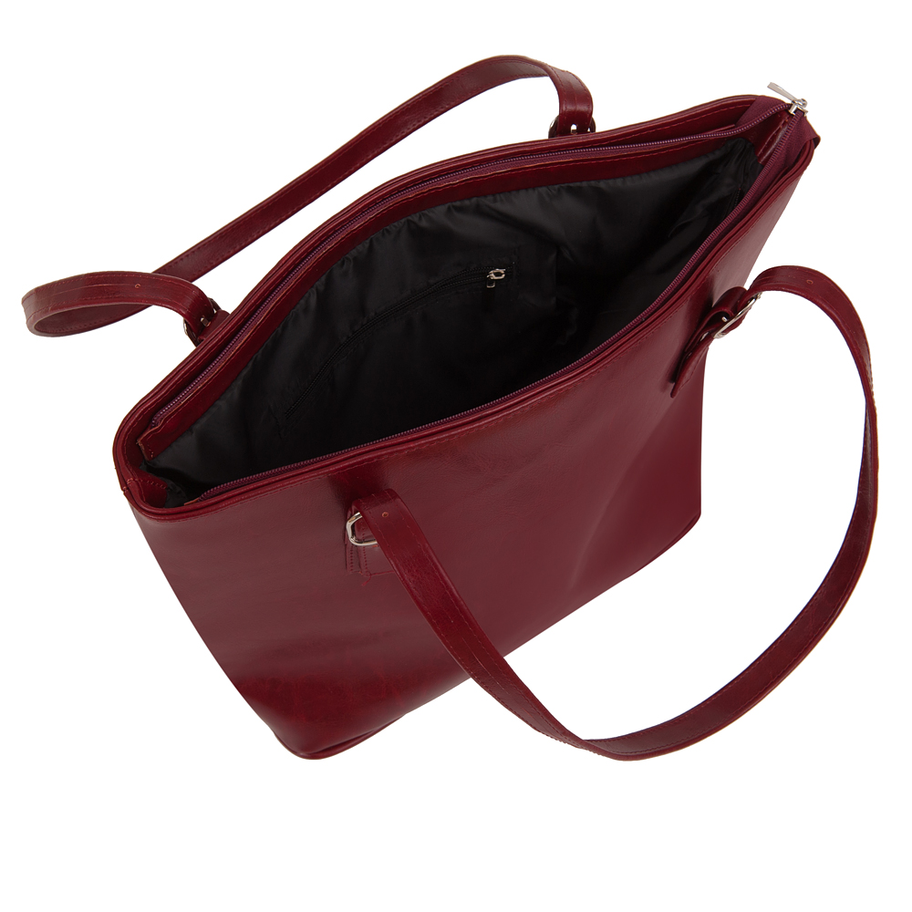 DAN-A polska skórzana torebka wykonana z wysokogatunkowej naturalnej skóry licowej. Zamykana na suwak. Torebka dwukomorowa przedzielona dużą kieszenią na suwak na całej szerokości. Dodatkowo wewnątrz jedna kieszonka na zamek + kieszonka na telefon. Z tyłu torebki pojemna kieszeń na suwak. Wnętrze wykończone trwałą, czarną podszewką. Torebka od spodu usztywniona oraz podbita metalowymi nóżkami, przeciw niszczeniu spodu. Elementy wykończenia w kolorze srebrnym. Uszy regulowane.