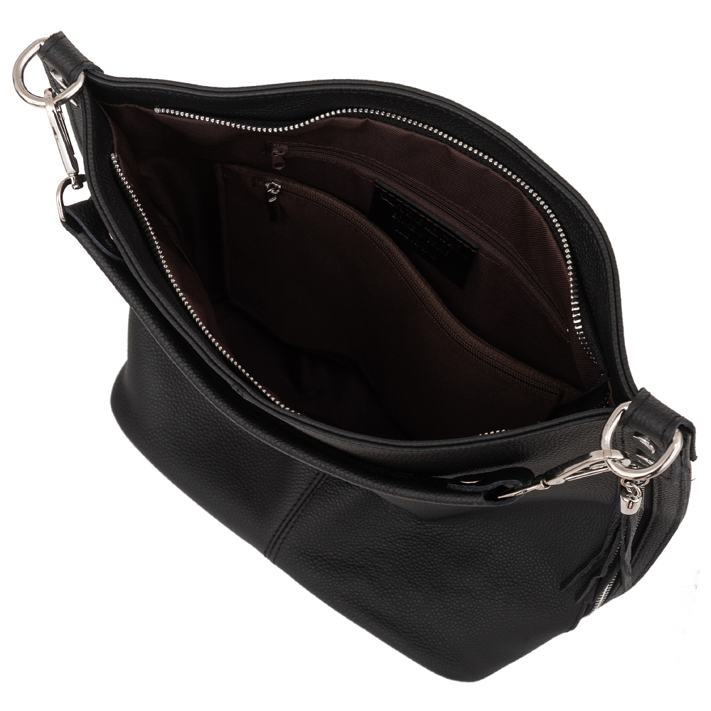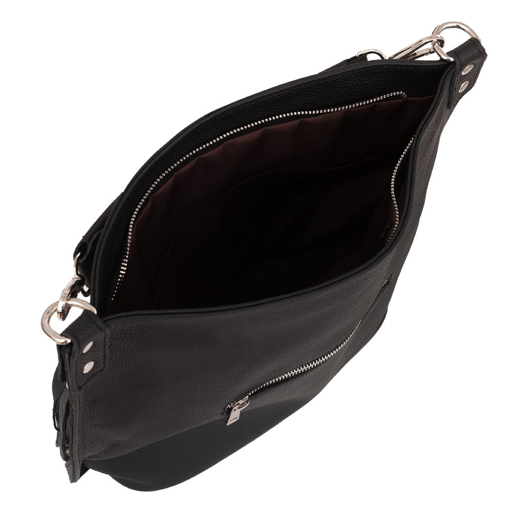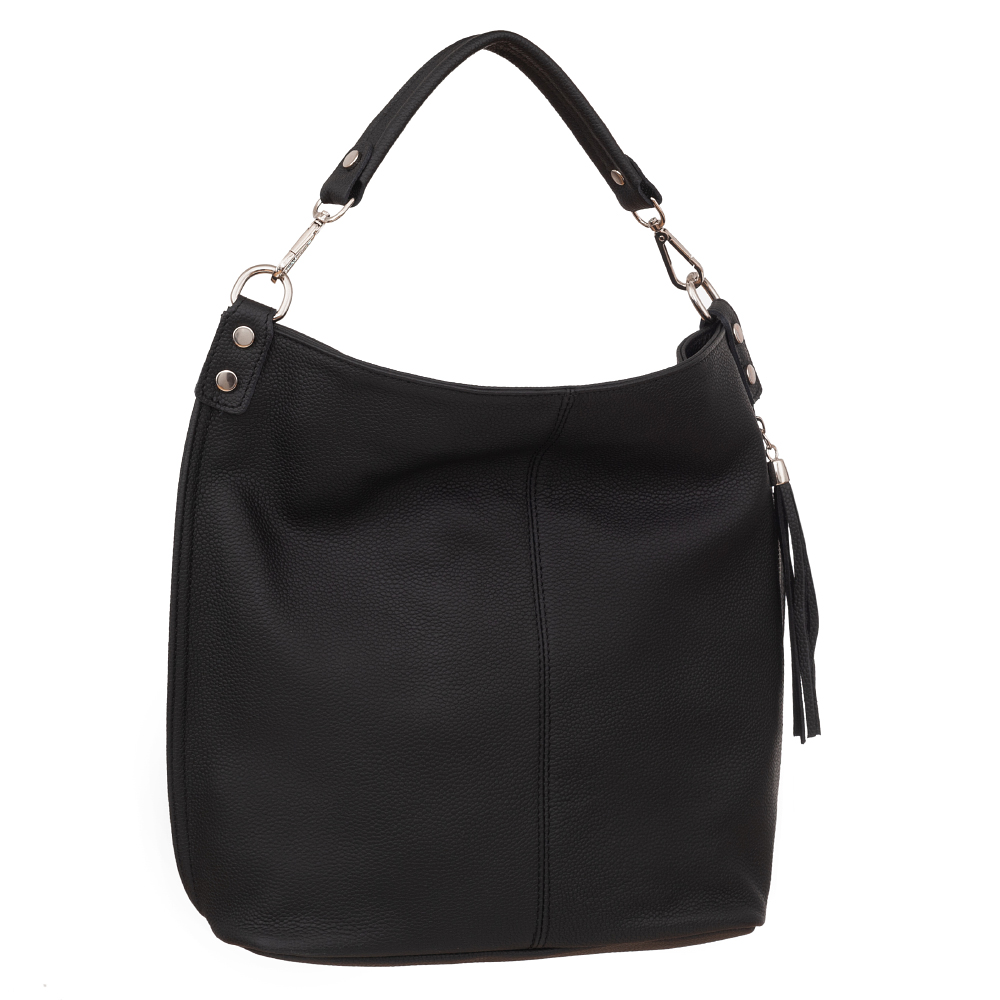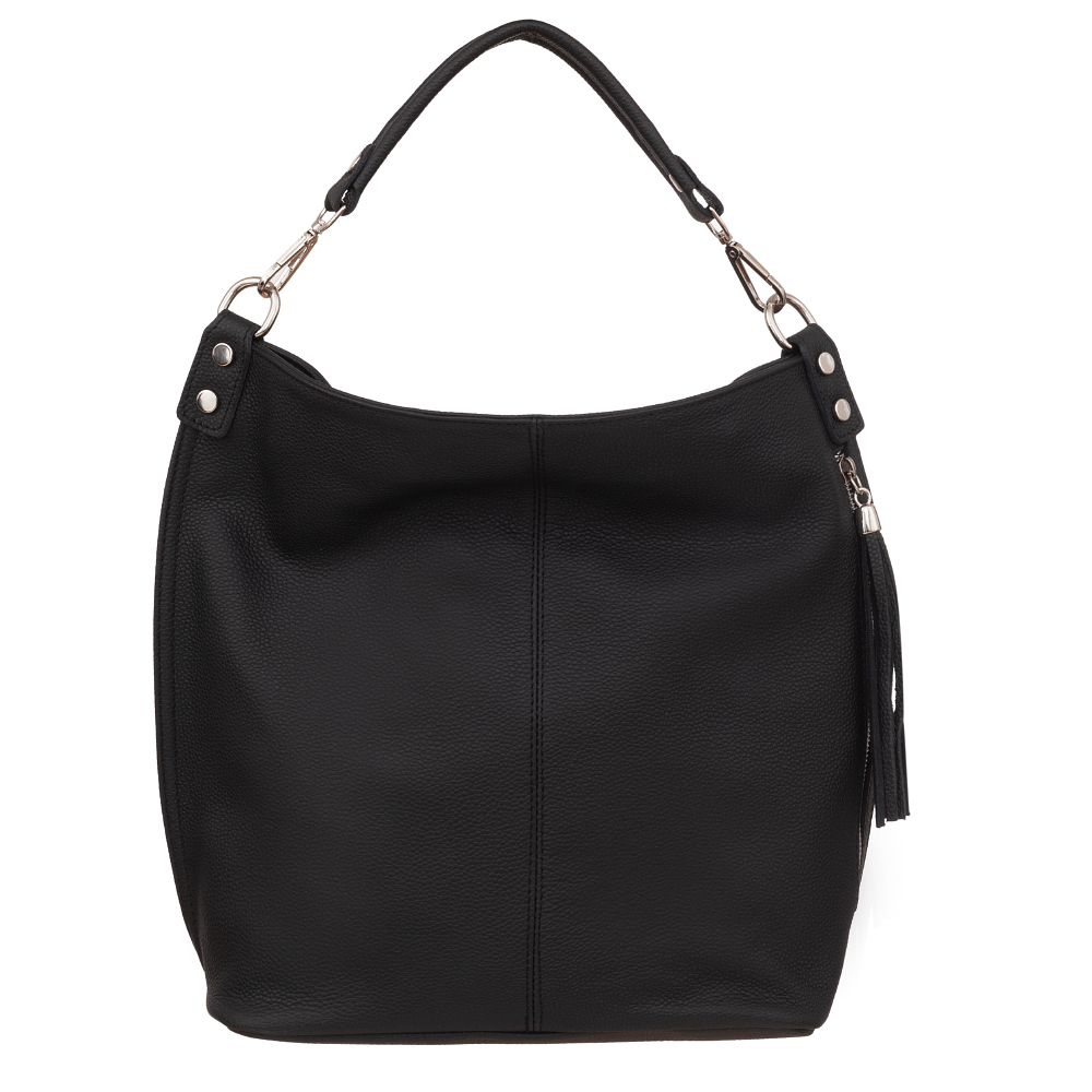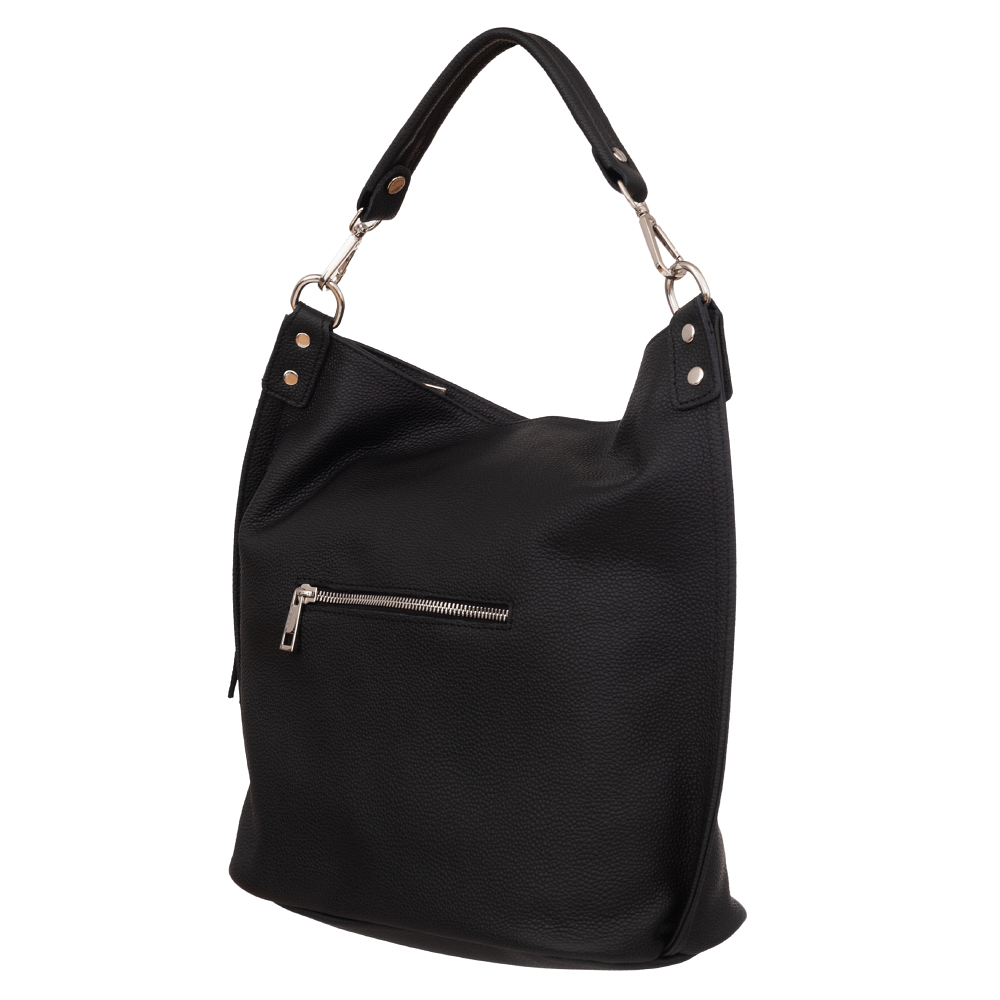 Vera Pelle - włoska XL skórzana torebka worek wykonana z wysokogatunkowej miękkiej naturalnej skóry. Oryginalna torebka w miejskim stylu, idealna na codzień. Zamykana z góry na suwak. Torebka jednokomorowa. Wewnątrz 2 x kieszonka na zamek, kieszonka na drobiazgi + jedna na telefon. Z przodu pojemna kieszeń zamek. Wnętrze wykończone trwałą materiałową podszewką. Dno lekko usztywnione. W komplecie długi regulowany pasek na ramię o maksymalnej długości 125 cm. Możliwość całkowitego wypięcia krótszego ucha i noszenie na długim pasku.