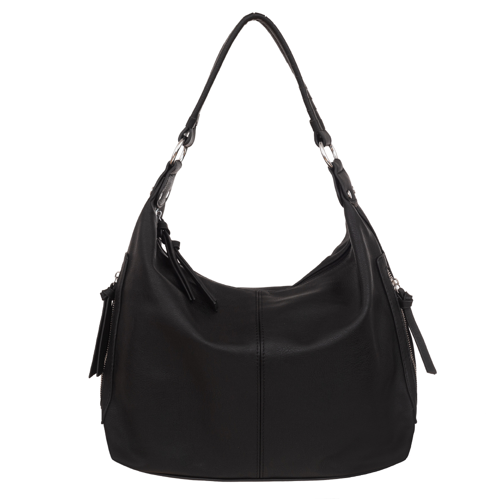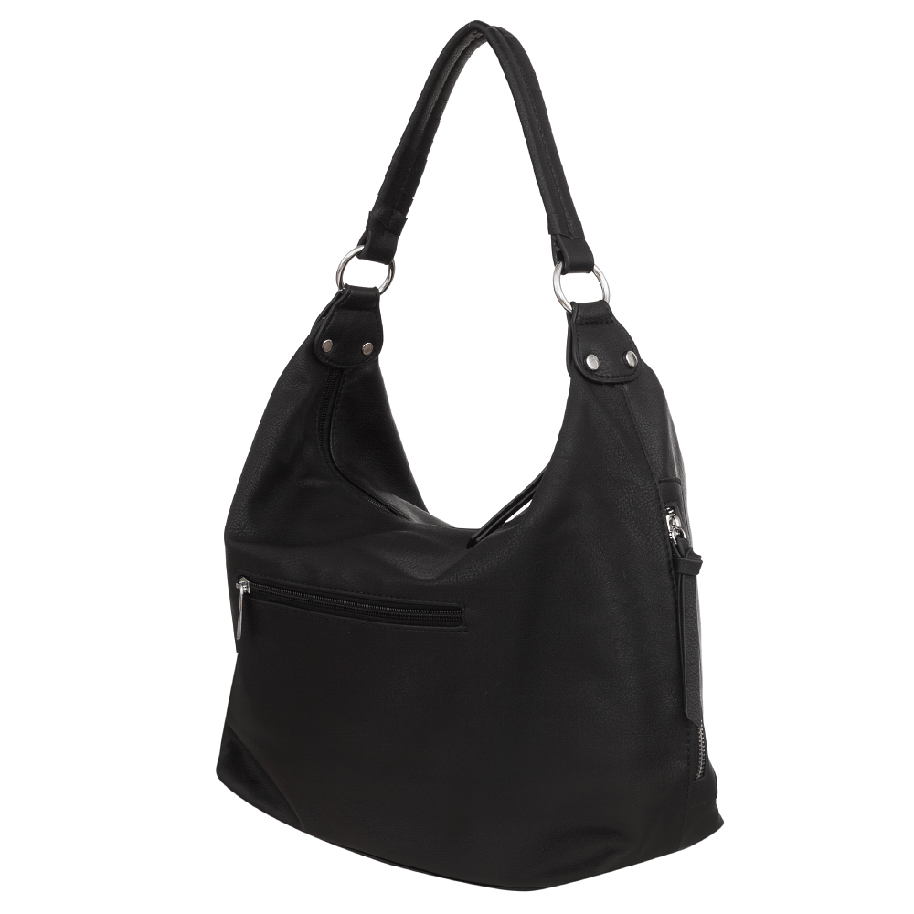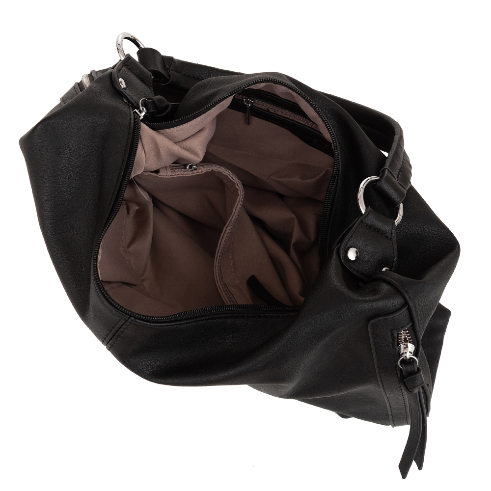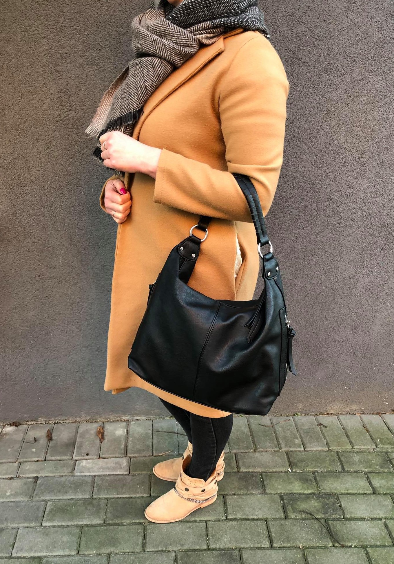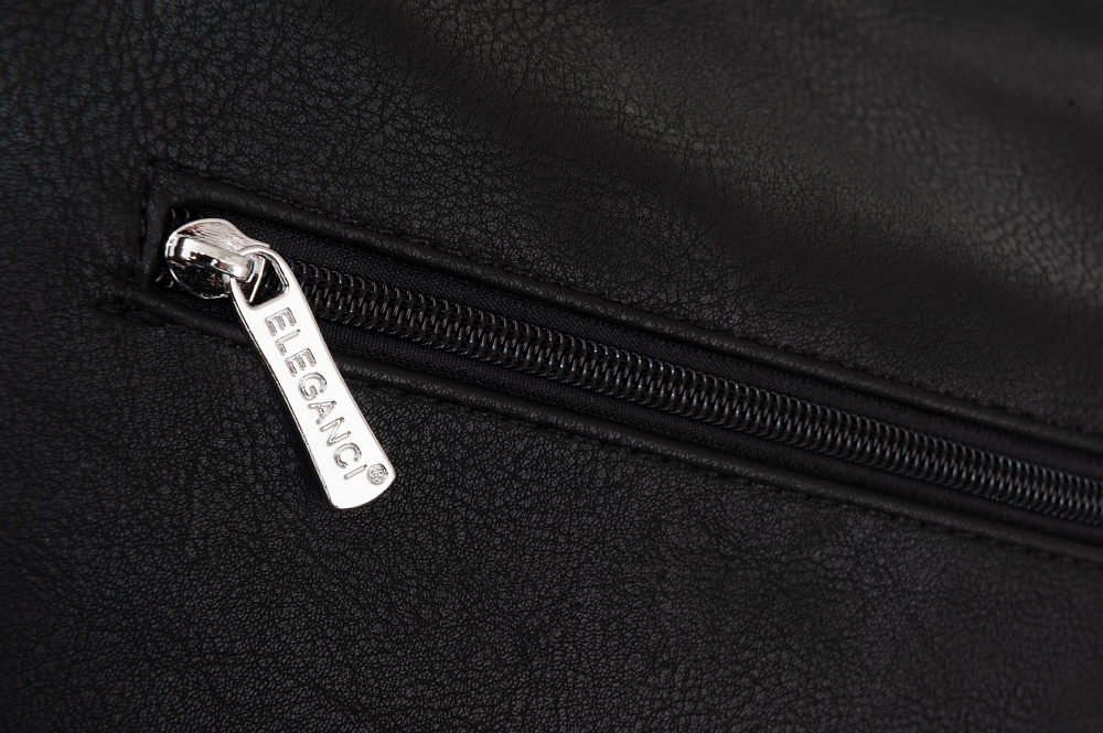 Modna torebka wykonana z wysokogatunkowej miękkiej gładkiej skóry ekologicznej najwyższej jakości. Zamykana z góry na zamek na całej szerokości. Torebka jednokomorowa, przedzielona na środku, zorganizowana + wewnątrz kieszonka na zamek, jedna na telefon + duża kieszeń na zamek w środku dzieląca torebkę na dwie części + wsuwna kieszonka na drobiazgi. Wnętrze wykończone trwałą, bawełnianą mocną podszewką. Dodatkowo po bokach i z tyłu torebki kieszonka na zamek. Torebka od spodu usztywniona. Elementy wykończenia w kolorze srebrnym. W komplecie długi regulowany pasek na ramię o długości max. 130 cm.