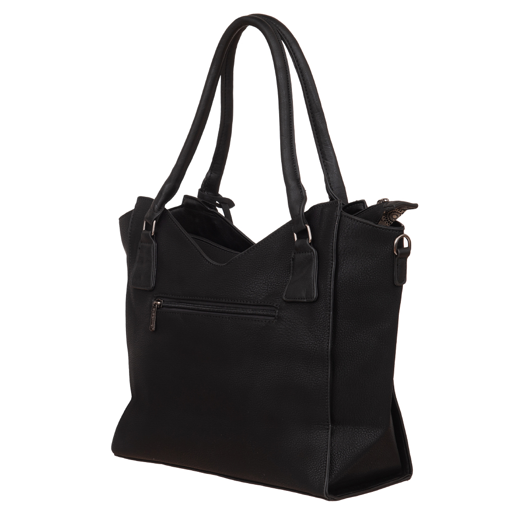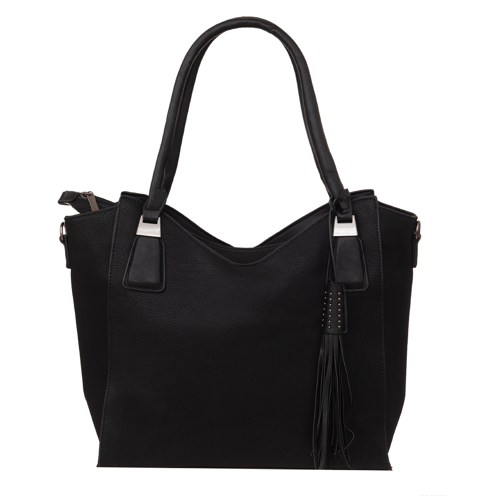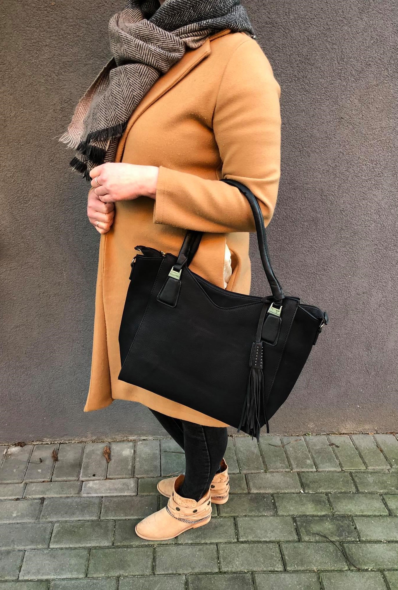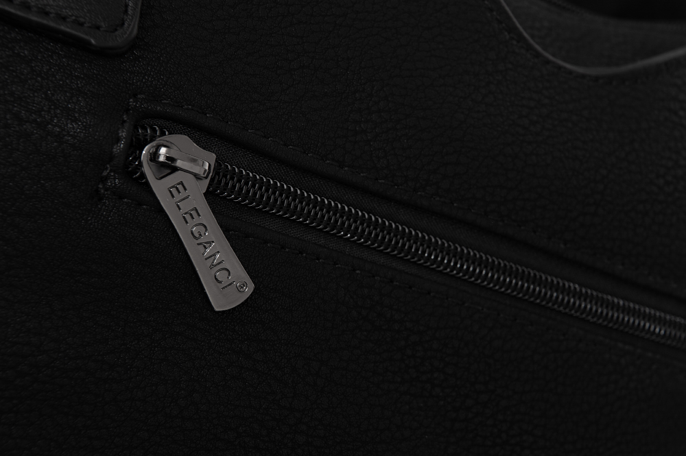 Modna torebka wykonana z wysokogatunkowej skóry ekologicznej najwyższej jakości. Zamykana z góry na zamek na całej szerokości. Torebka jednokomorowa, przedzielona na środku, zorganizowana + wewnątrz kieszonka na zamek, jedna na telefon + duża kieszeń na zamek w środku dzieląca torebkę na dwie części + wsuwna kieszonka na drobiazgi. Wnętrze wykończone trwałą, bawełnianą mocną podszewką. Dodatkowo z tyłu torebki kieszonka na zamek. Torebka od spodu usztywniona. Elementy wykończenia w kolorze srebrnym. W komplecie długi regulowany pasek na ramię o długości max. 130 cm.