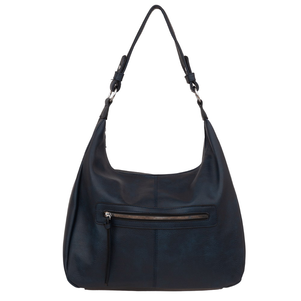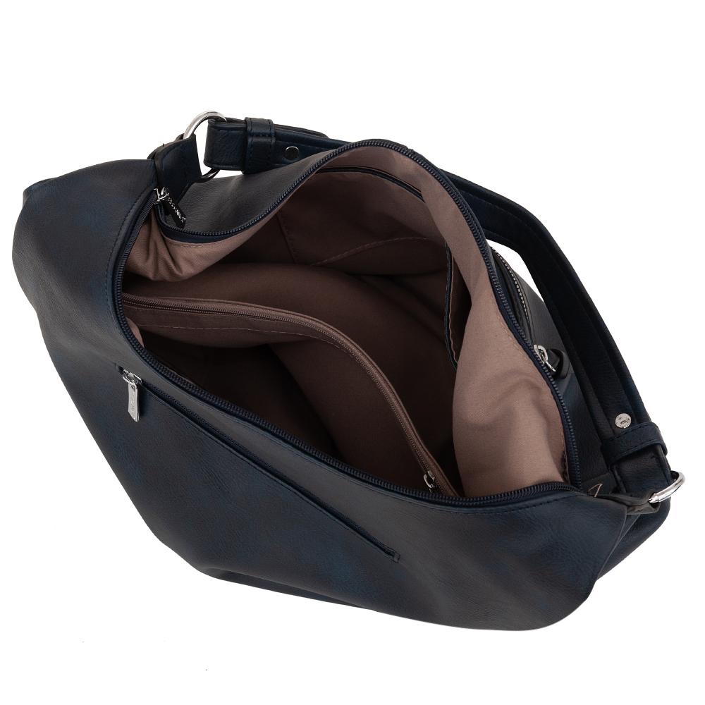 Modna torebka wykonana z wysokogatunkowej miękkiej gładkiej skóry ekologicznej najwyższej jakości. Zamykana z góry na zamek na całej szerokości. Torebka dwukomorowa, przedzielona na środku, zorganizowana + wewnątrz kieszonka na zamek, jedna na telefon + duża kieszeń na zamek w środku dzieląca torebkę na dwie części + wsuwna kieszonka na drobiazgi. Wnętrze wykończone trwałą, bawełnianą mocną podszewką. Dodatkowo z przodu i z tyłu torebki kieszonka na zamek. Torebka od spodu usztywniona. Elementy wykończenia w kolorze srebrnym. W komplecie długi regulowany pasek na ramię o długości max. 130 cm.