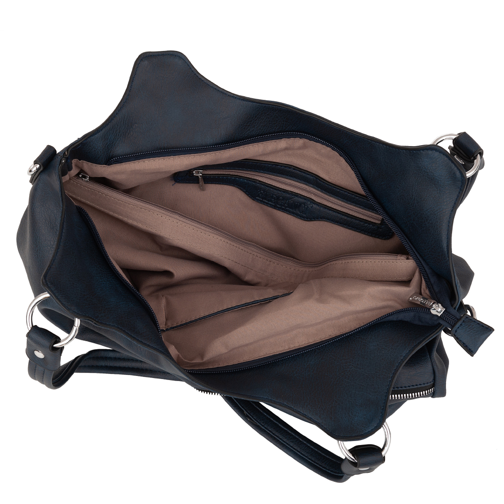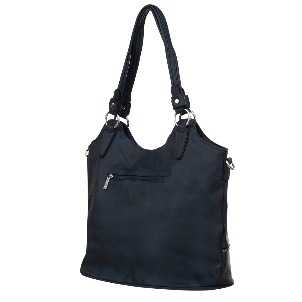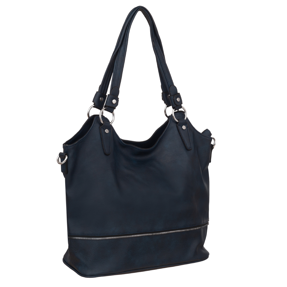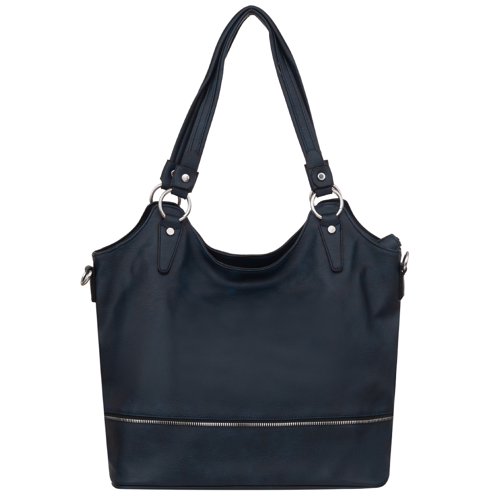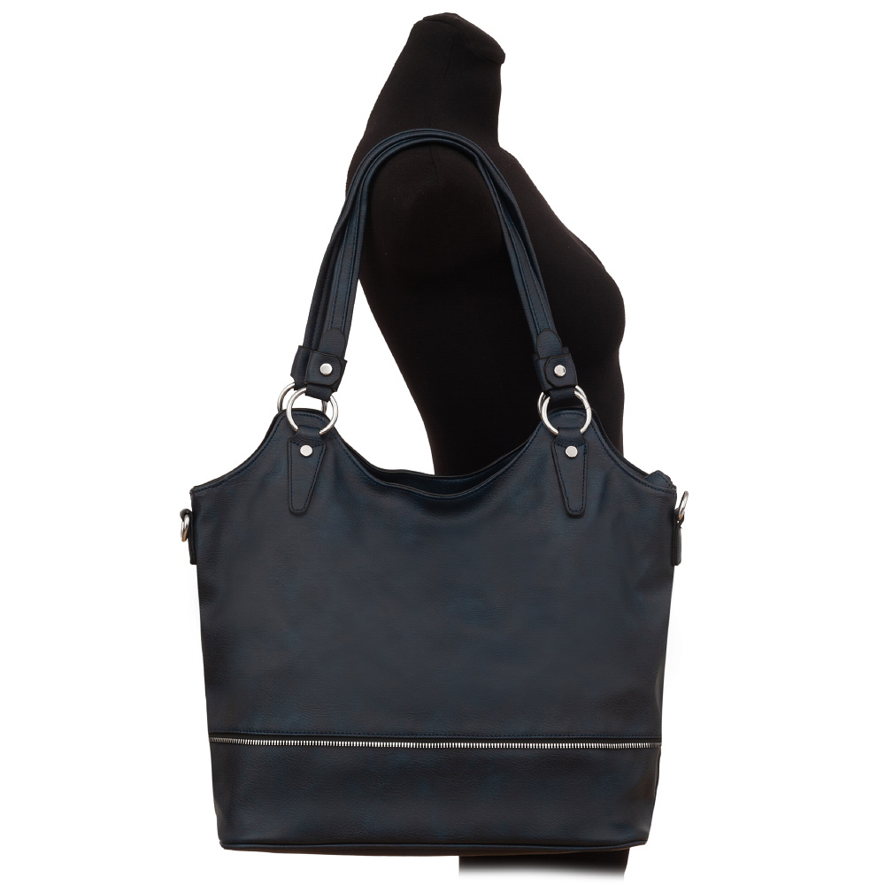Modna torebka wykonana z wysokogatunkowej miękkiej gładkiej skóry ekologicznej najwyższej jakości. Zamykana z góry na zamek na całej szerokości. Torebka jednokomorowa, przedzielona na środku dużą kieszenią na zamek, zorganizowana + wewnątrz kieszonka na zamek, jedna na telefon + duża kieszeń na zamek + wsuwna kieszonka na drobiazgi. Wnętrze wykończone trwałą, bawełnianą mocną podszewką. Dodatkowo z tyłu torebki kieszonka na zamek. Torebka od spodu usztywniona. Elementy wykończenia w kolorze srebrnym. W komplecie długi regulowany pasek na ramię o długości max. 130 cm.