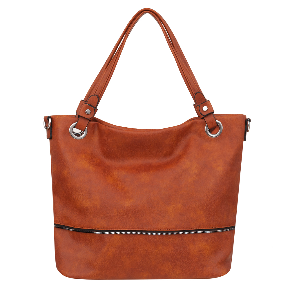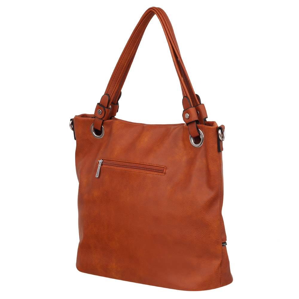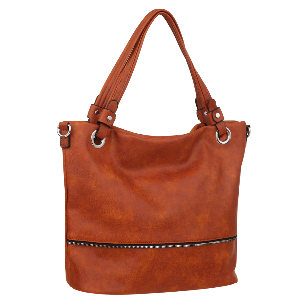 Modna torebka wykonana z wysokogatunkowej miękkiej gładkiej skóry ekologicznej najwyższej jakości. Zamykana z góry na zamek na całej szerokości. Torebka dwukomorowa, przedzielona na środku, zorganizowana + wewnątrz kieszonka na zamek, jedna na telefon + duża kieszeń na zamek w środku dzieląca torebkę na dwie części + wsuwna kieszonka na drobiazgi. Wnętrze wykończone trwałą, bawełnianą mocną podszewką. Dodatkowo z tyłu torebki kieszonka na zamek. Torebka od spodu usztywniona. Elementy wykończenia w kolorze srebrnym. W komplecie długi regulowany pasek na ramię o długości max. 130 cm.
