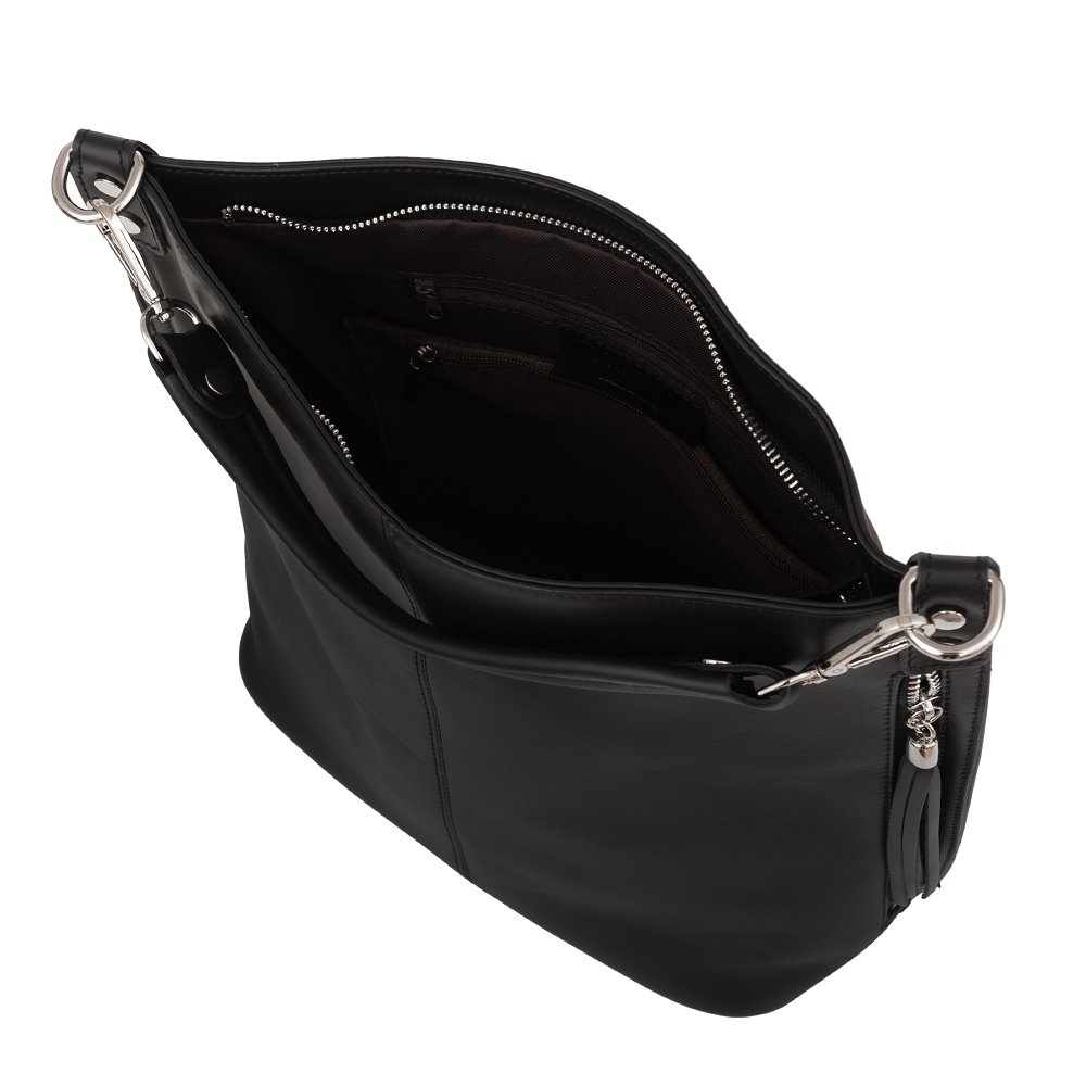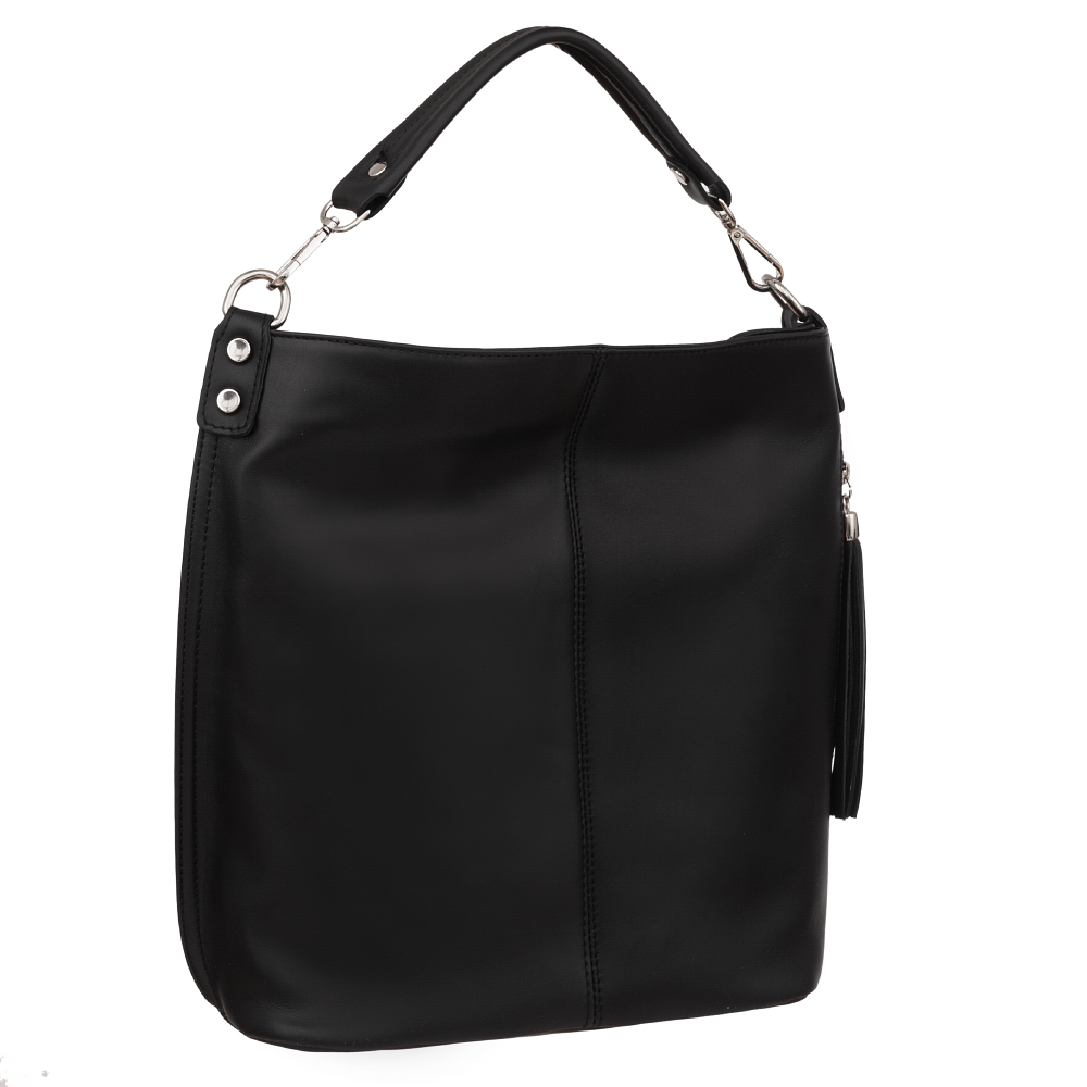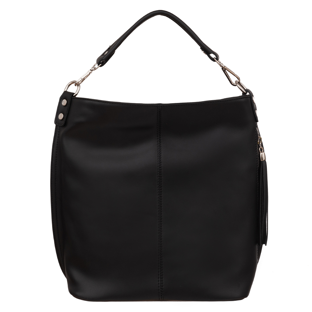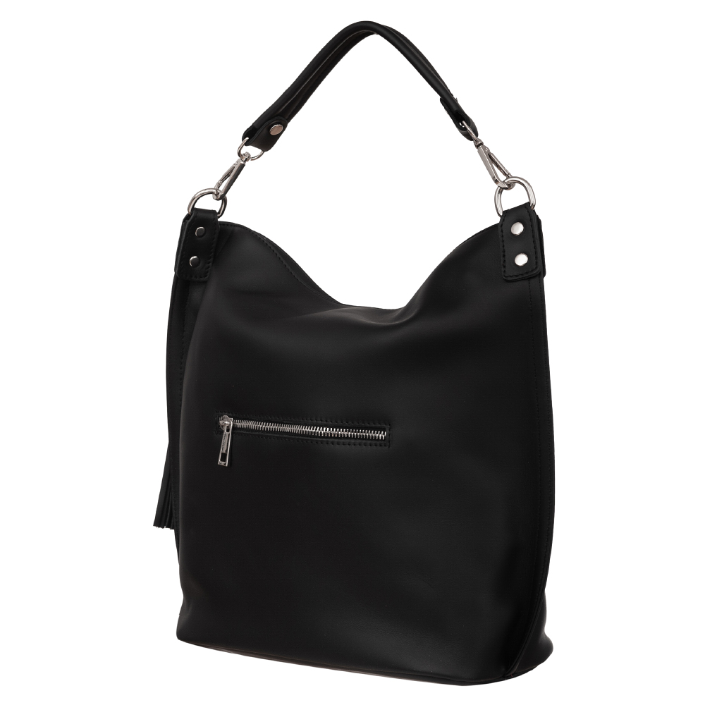 Vera Pelle - włoska XL skórzana torebka worek wykonana z wysokogatunkowej miękkiej naturalnej skóry cielęcej. Oryginalna torebka w miejskim stylu, idealna na codzień. Zamykana z góry na suwak. Torebka jednokomorowa. Wewnątrz 2 x kieszonka na zamek, kieszonka na drobiazgi + jedna na telefon. Z przodu pojemna kieszeń zamek. Wnętrze wykończone trwałą materiałową podszewką. Dno lekko usztywnione. W komplecie długi regulowany pasek na ramię o maksymalnej długości 125 cm. Możliwość całkowitego wypięcia krótszego ucha i noszenie na długim pasku.