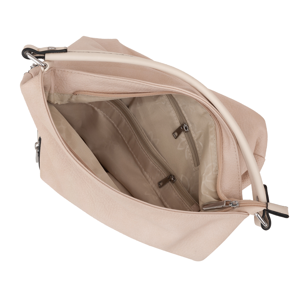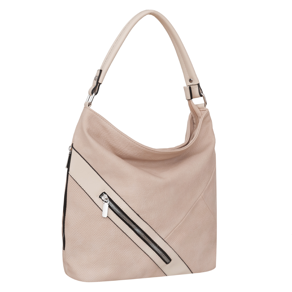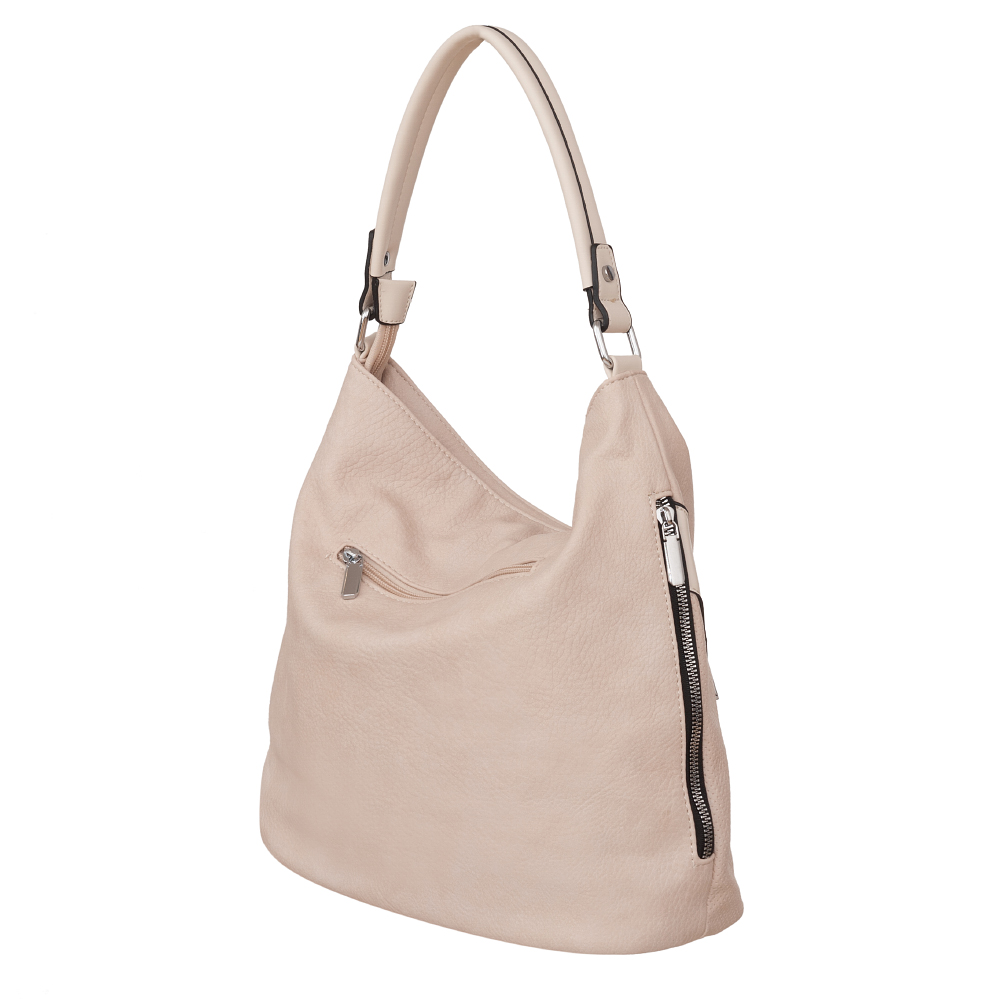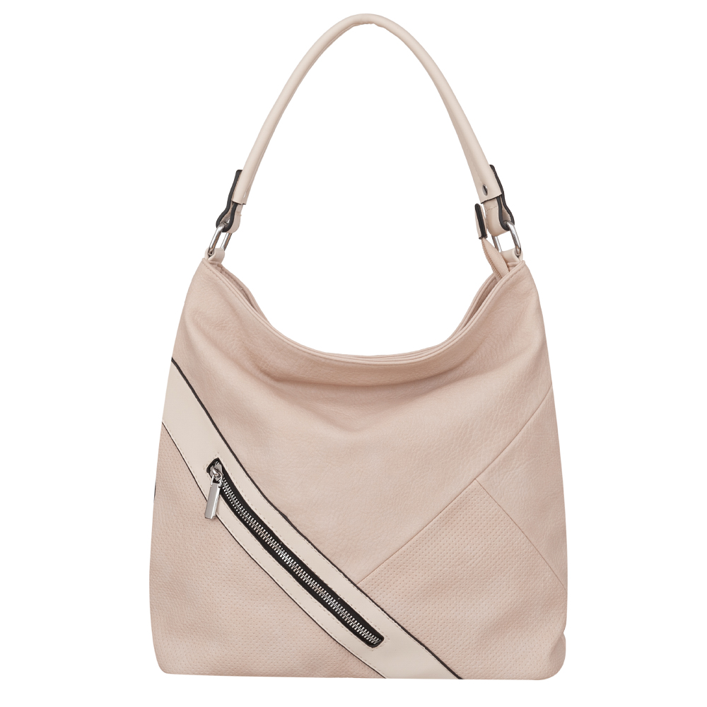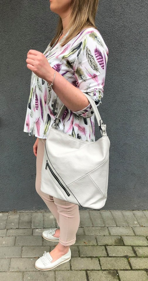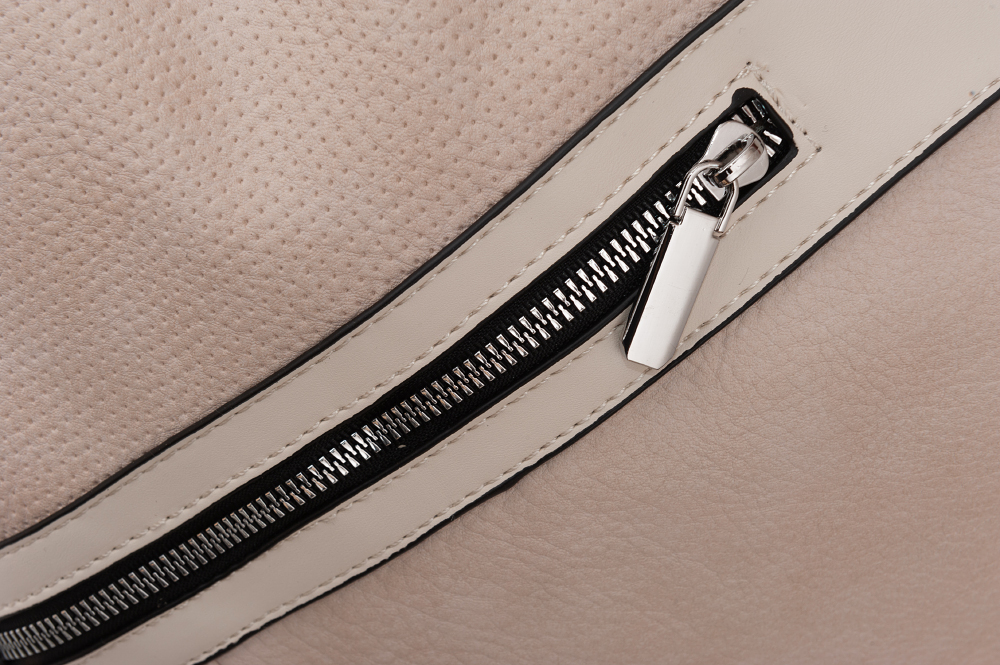 Modna, klasyczna A4 torebka wykonana z wysokogatunkowej miękkiej gładkiej skóry ekologicznej wysokiej jakości. 3 różne faktury skóry z przodu dodają torebce oryginalności. Zamykana z góry na zamek na całej szerokości. Torebka jednokomorowa, zorganizowana w środku + wewnątrz kieszonka na zamek, jedna na telefon + duża kieszeń na zamek w środku dzieląca torebkę na dwie części + wsuwna kieszonka na drobiazgi. Wnętrze wykończone trwałą, materiałową czarną podszewką. Dodatkowo z tyłu torebki kieszonka na zamek + pionowa kieszeń na boku torebki na zamek + kieszonka z przodu na zamek. Torebka od spodu usztywniona. Elementy wykończenia w kolorze srebrnym. W komplecie długi regulowany pasek na ramię o długości max. 129 cm.