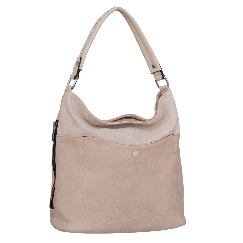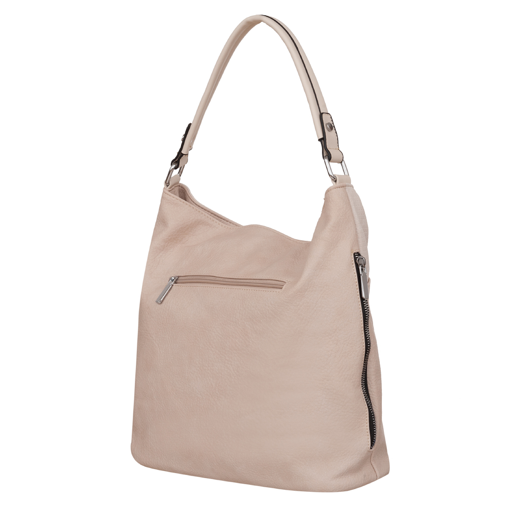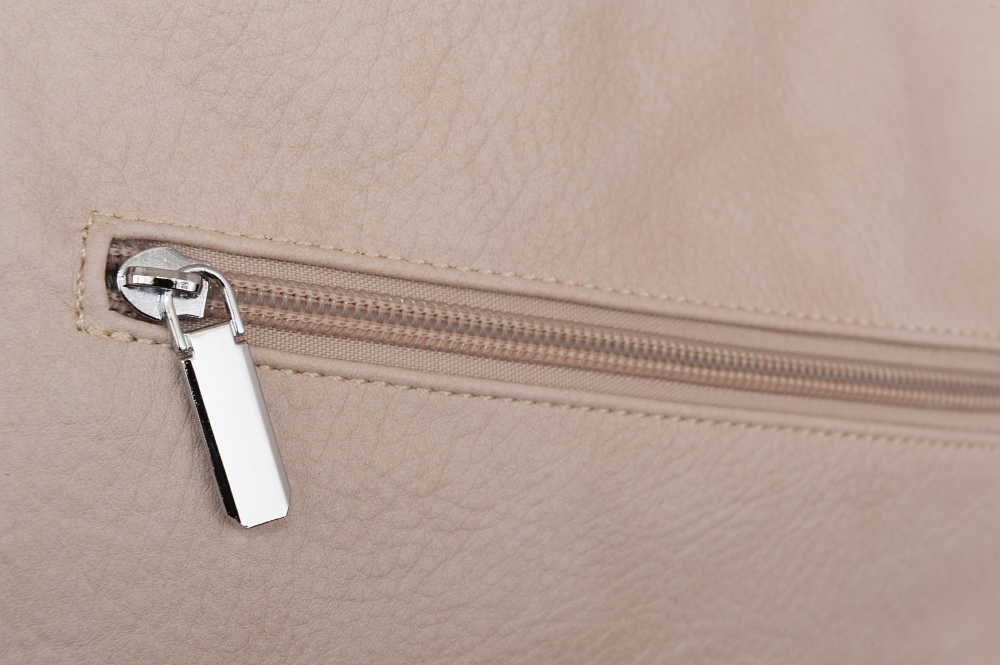 Zamykana z góry na zamek na całej szerokości. Torebka jednokomorowa, zorganizowana w środku + wewnątrz kieszonka na zamek, jedna na telefon + duża kieszeń na zamek w środku dzieląca torebkę na dwie części.