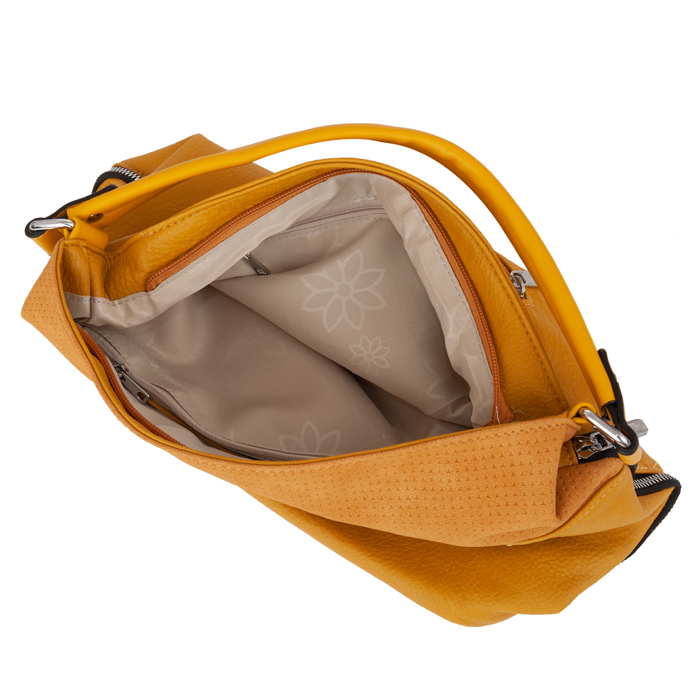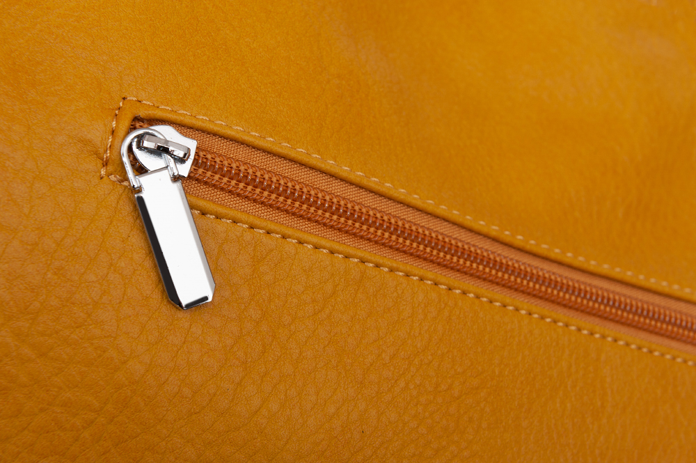 Zamykana z góry na zamek na całej szerokości. Torebka jednokomorowa, zorganizowana w środku + wewnątrz kieszonka na zamek, jedna na telefon + duża kieszeń na zamek w środku dzieląca torebkę na dwie części.