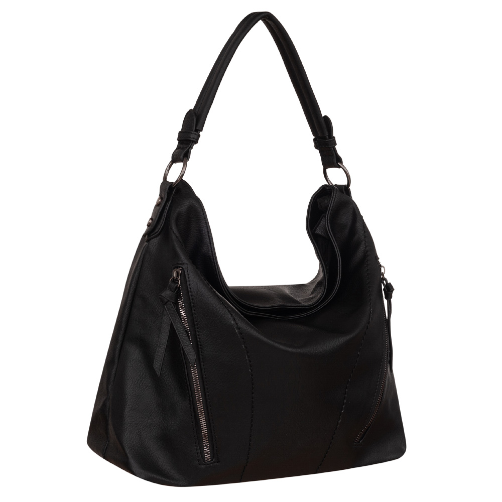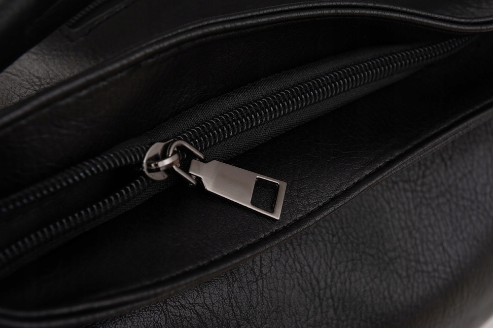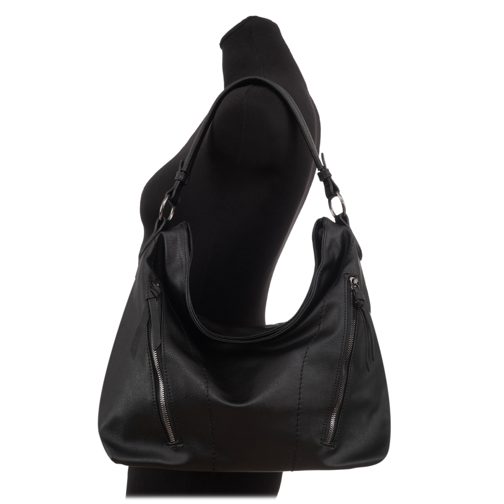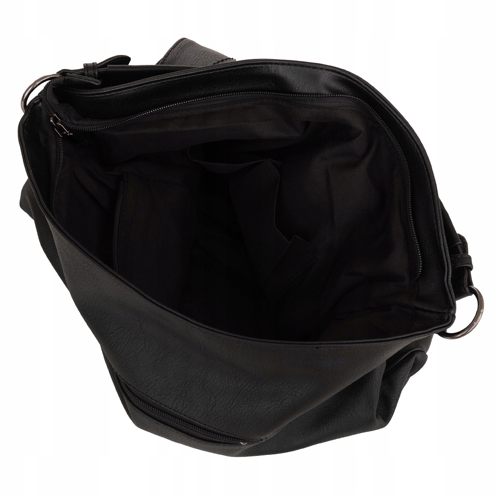 Modna, klasyczna torebka wykonana z wysokogatunkowej skóry ekologicznej wysokiej jakości. Zamykana z góry na zamek na całej szerokości. Torebka jednokomorowa, zorganizowana w środku + wewnątrz kieszonka na zamek, jedna na telefon + dodatkowa kieszeń na drobiazgi. Wnętrze wykończone trwałą podszewką. Z przodu dwie kieszenie. Torebka od spodu usztywniona. Elementy wykończenia w kolorze srebrnym. W komplecie długi regulowany pasek na ramię o długości max. 129 cm.