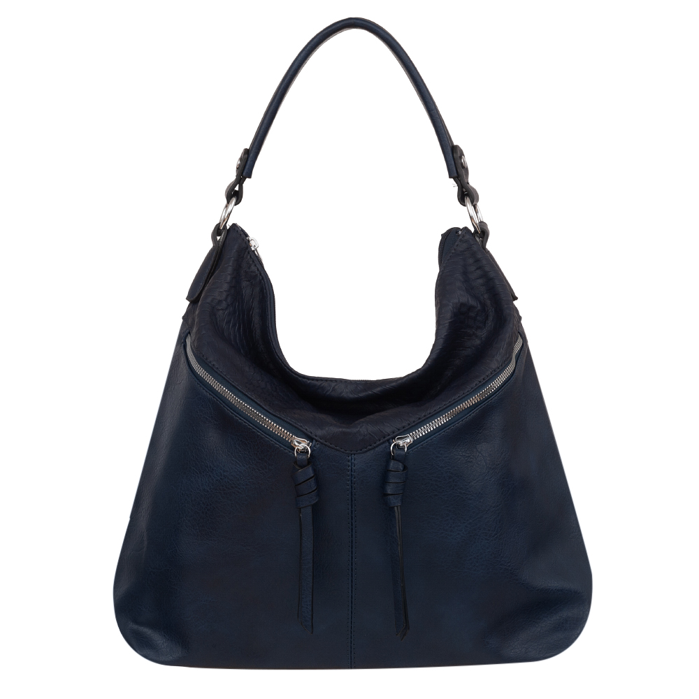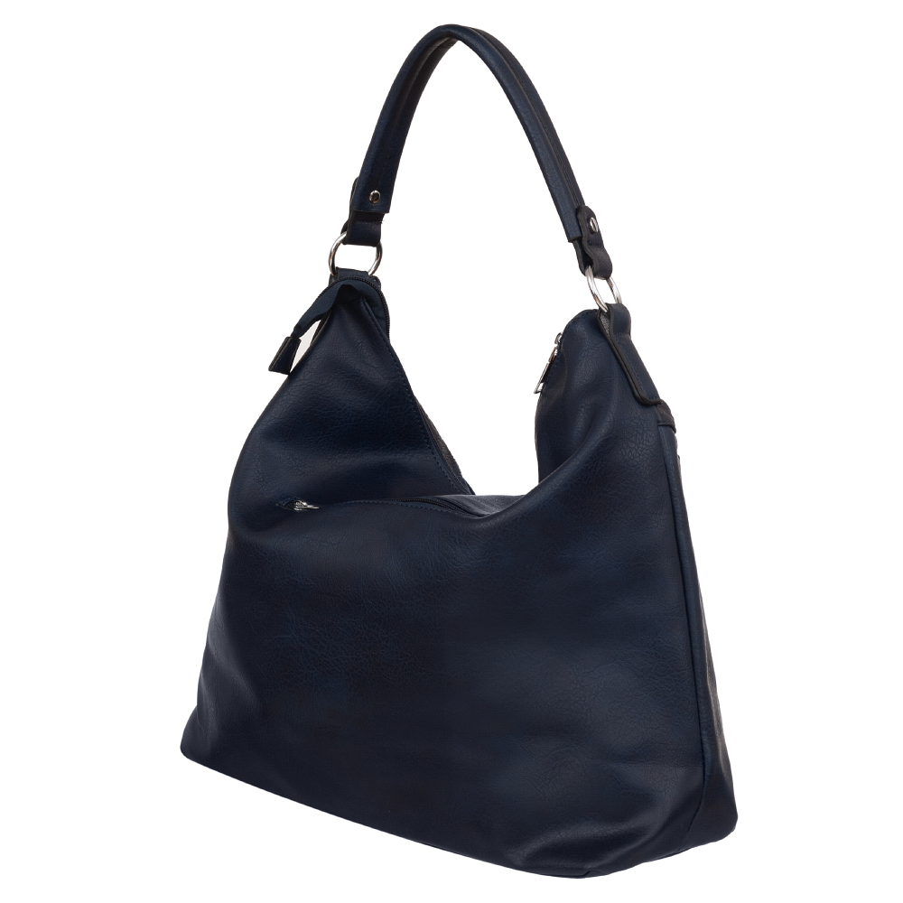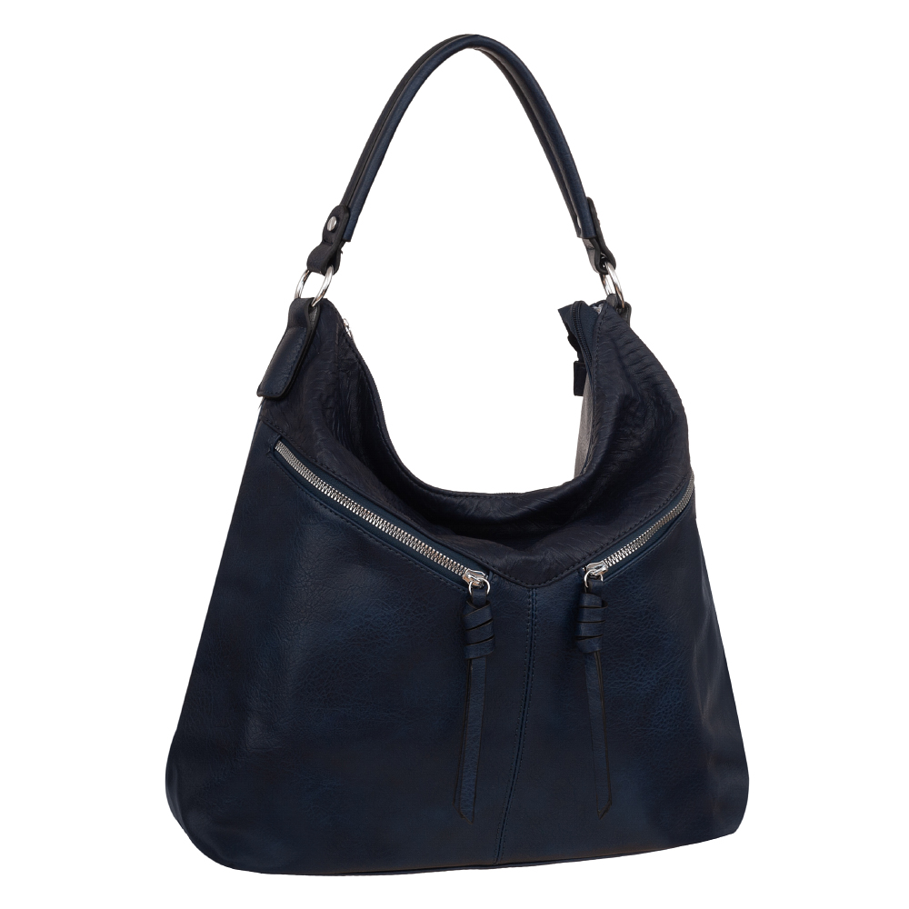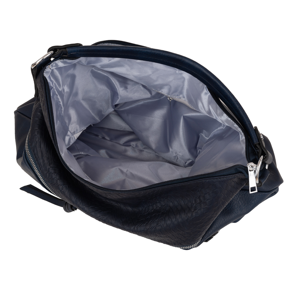 Modna, klasyczna torebka wykonana z wysokogatunkowej skóry ekologicznej wysokiej jakości. Z przodu dwie różne faktury materiału tworzą oryginalną całość. Zamykana z góry na zamek na całej szerokości. Torebka jednokomorowa, zorganizowana w środku + wewnątrz kieszonka na zamek, jedna na telefon + dodatkowa kieszeń na drobiazgi. Wnętrze wykończone trwałą podszewką. Dodatkowo z tyłu torebki kieszonka na zamek + 2 x ukośna kieszeń z przodu.. Torebka od spodu usztywniona. Elementy wykończenia w kolorze srebrnym. W komplecie długi regulowany pasek na ramię o długości max. 129 cm.