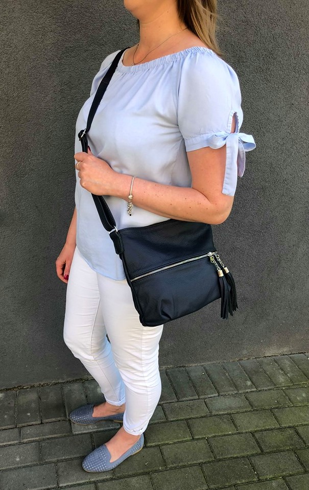 Polska skórzana torebka listonoszka wykonana z wysokogatunkowej skóry naturalnej matowej. Zamykana od góry na zamek na całej szerokości torebki. Torebka jednokomorowa, wewnątrz jedna kieszonka na zamek + kieszonka na telefon. Wnętrze wykończone trwałą podszewką. Długi, regulowany pasek umożliwia wygodne noszenie na ramieniu lub przez ramię jako listonoszkę. Dodatkowa kieszonka z tyłu na zamek + kieszonka z przodu. Elementy wykończenia w kolorze srebrnym.