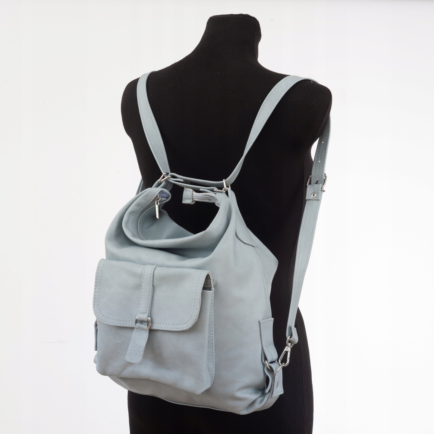 BŁĘKITNA TOREBKA SKÓRA NATURALNA WOREK PLECAK 2w1