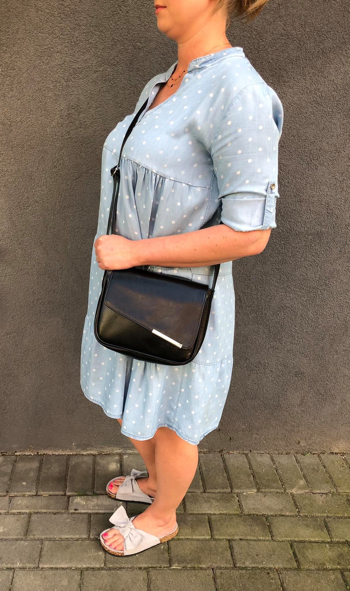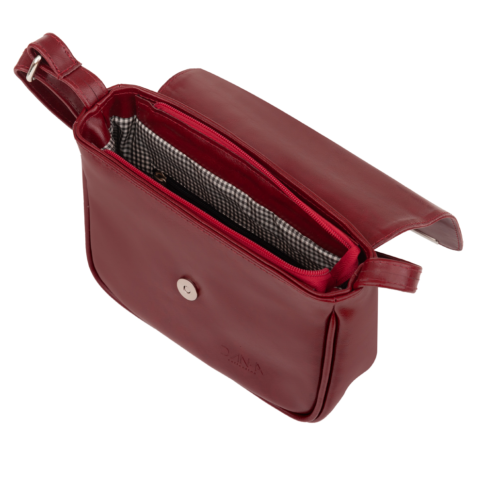 POLSKA skórzana torebka listonoszka wykonana z wysokogatunkowej naturalnej gładkiej skóry licowej firmy DAN-A. Zamykana od góry na klapę z magnesem + zamek. Torebka jednokomorowa, wewnątrz jedna kieszonka na zamek oraz jedna na telefon. Wnętrze wykończone trwałą, materiałową podszewką w modną kratę. Długi, regulowany pasek umożliwia wygodne noszenie na ramieniu lub przez ramię. Dodatkowo z tyłu torebki praktyczna kieszonka na zamek. Elementy metalowe w kolorze srebrnym. Pasek z możliwością regulacji długości do max 140 cm.