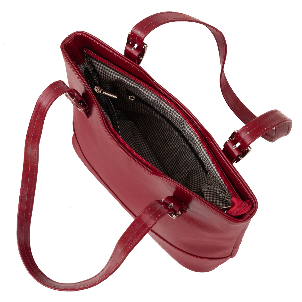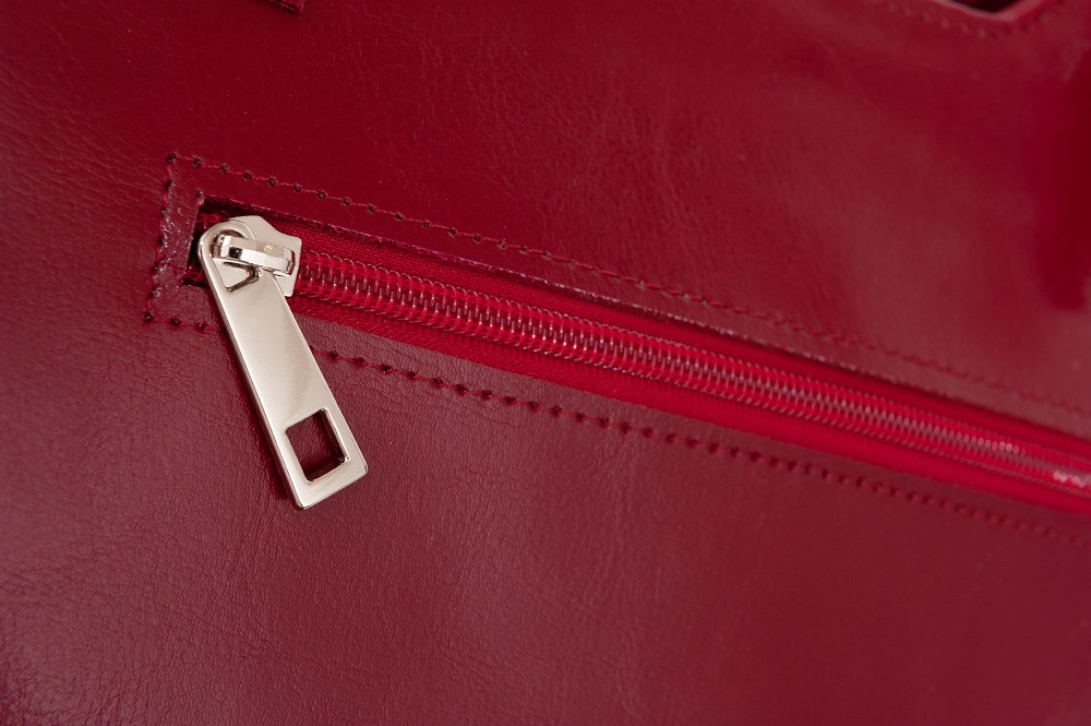Klasyczna skórzana torebka wykonana z naturalnej skóry licowej najwyższej jakośći. Torebka zamykana na zamek na całej szerokości. Torebka dwukomorowa, dodatkowo w środku kieszonka na telefon + kieszeń na zamek na bocznej wewnątrzenej ściance + kieszeń na zamek dzieląca torebkę na dwie komory. Wnętrze wykończone mocną, materiałową podszewką. Z tyłu torebki kieszeń na zamek. Metalowe elementy wykończenia w kolorze srebrnym. Torebka podbita metalowymi nóżkami. Długość uszu regulowana.