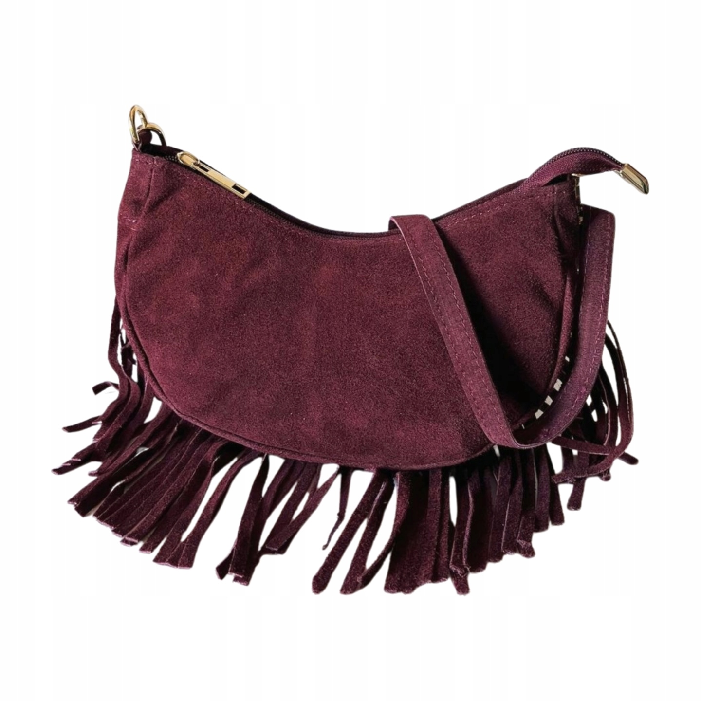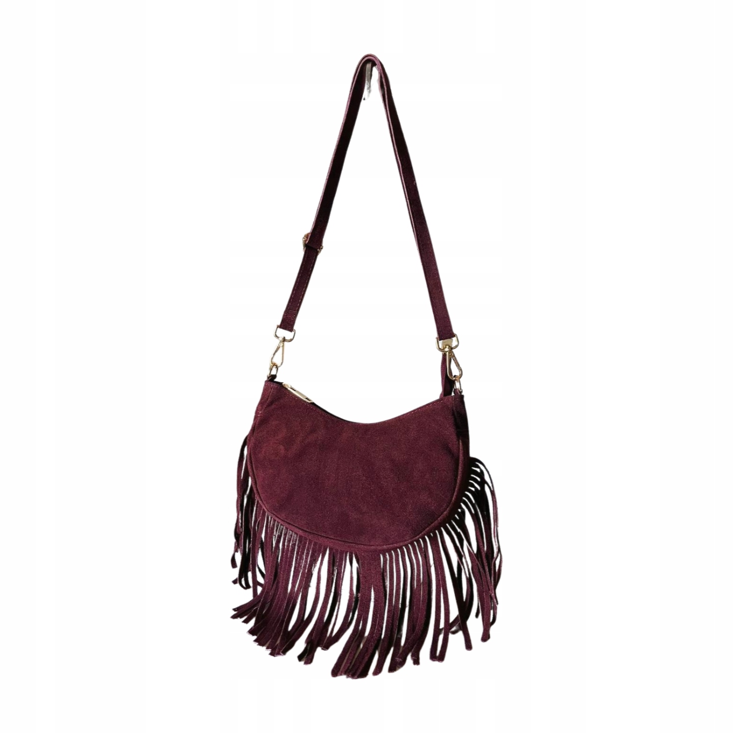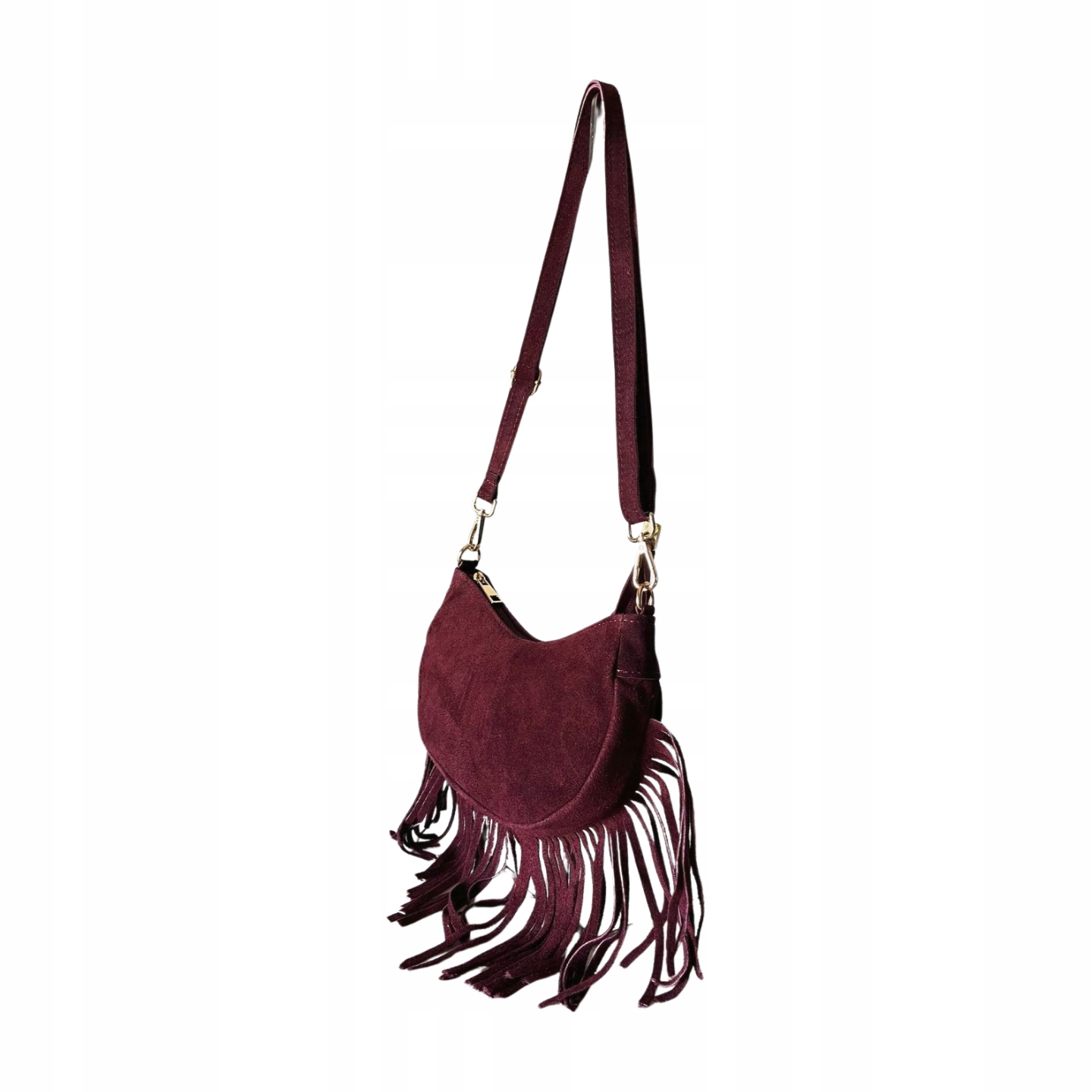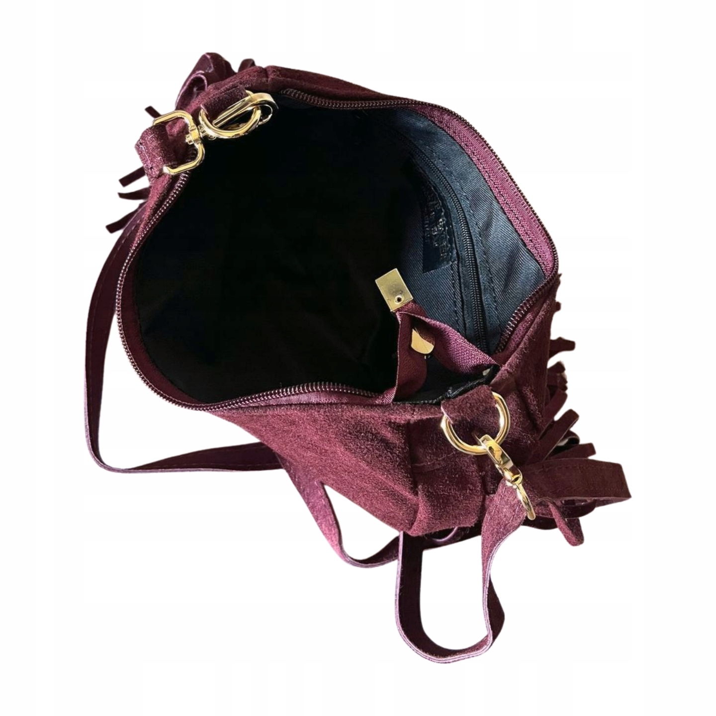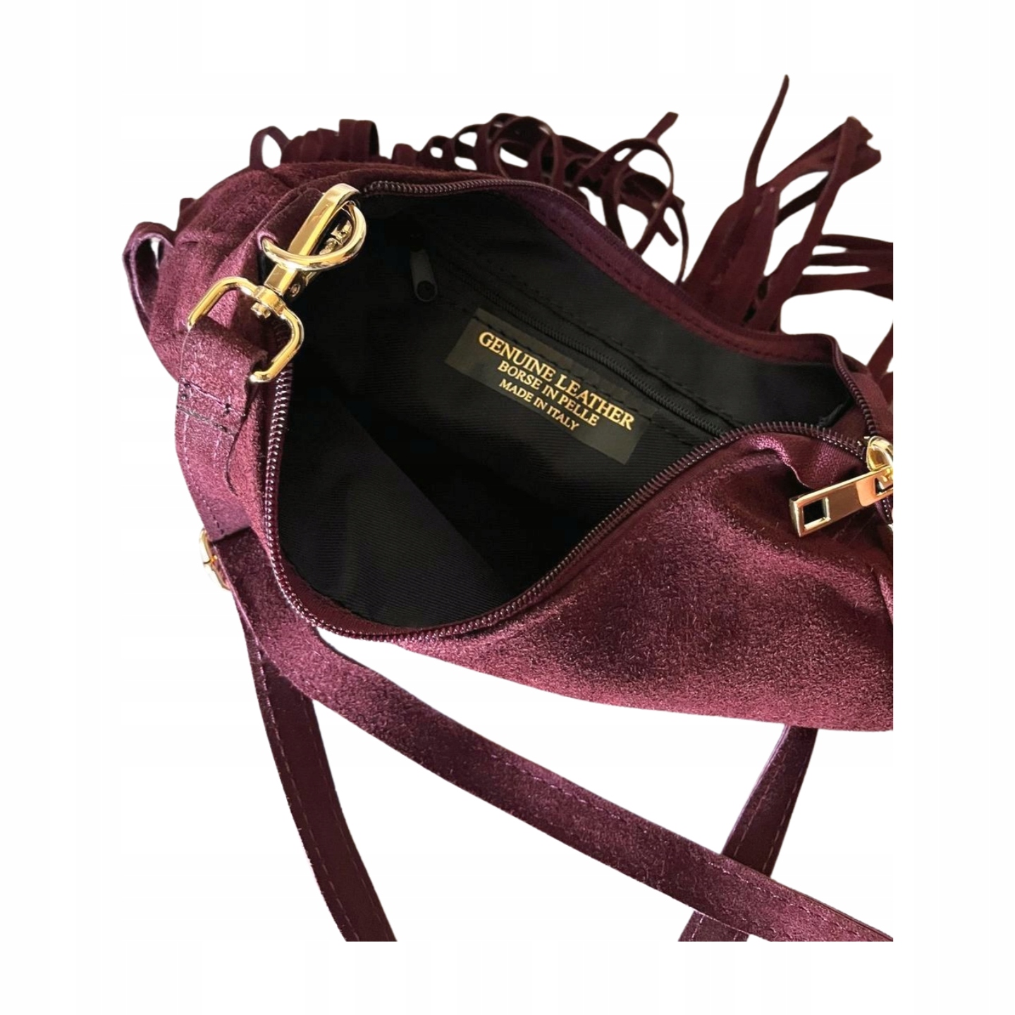 Vera Pelle - Włoska bordowa skórzana torebka listonoszka wykonana z wysokogatunkowej naturalnej skóry zamszowej.