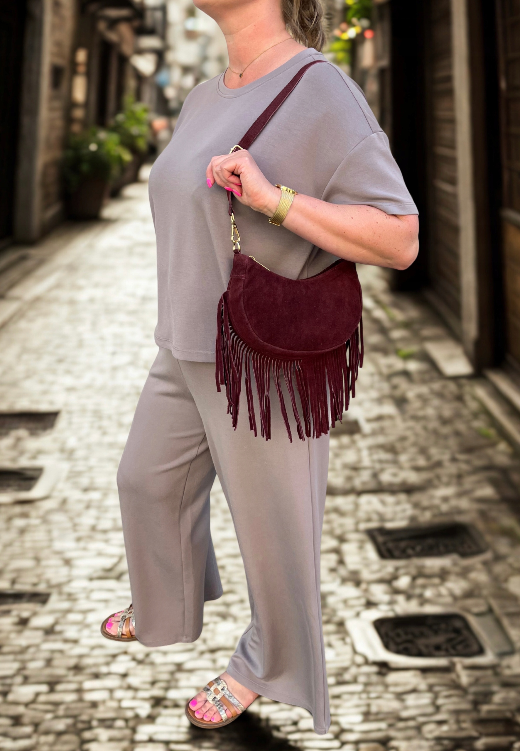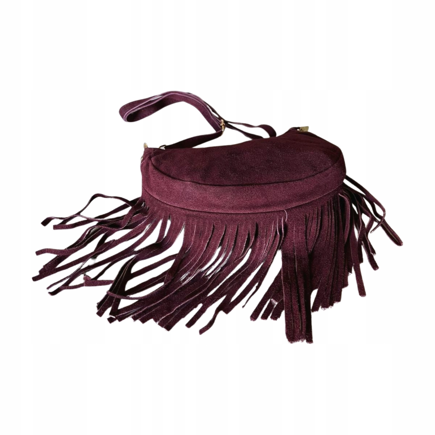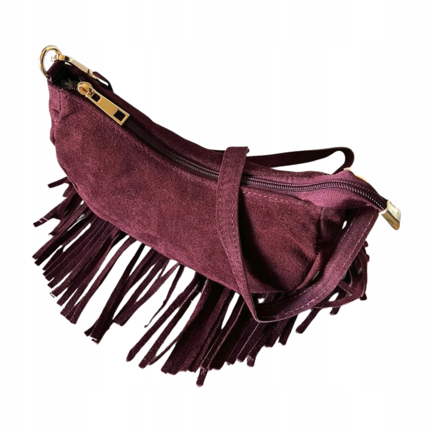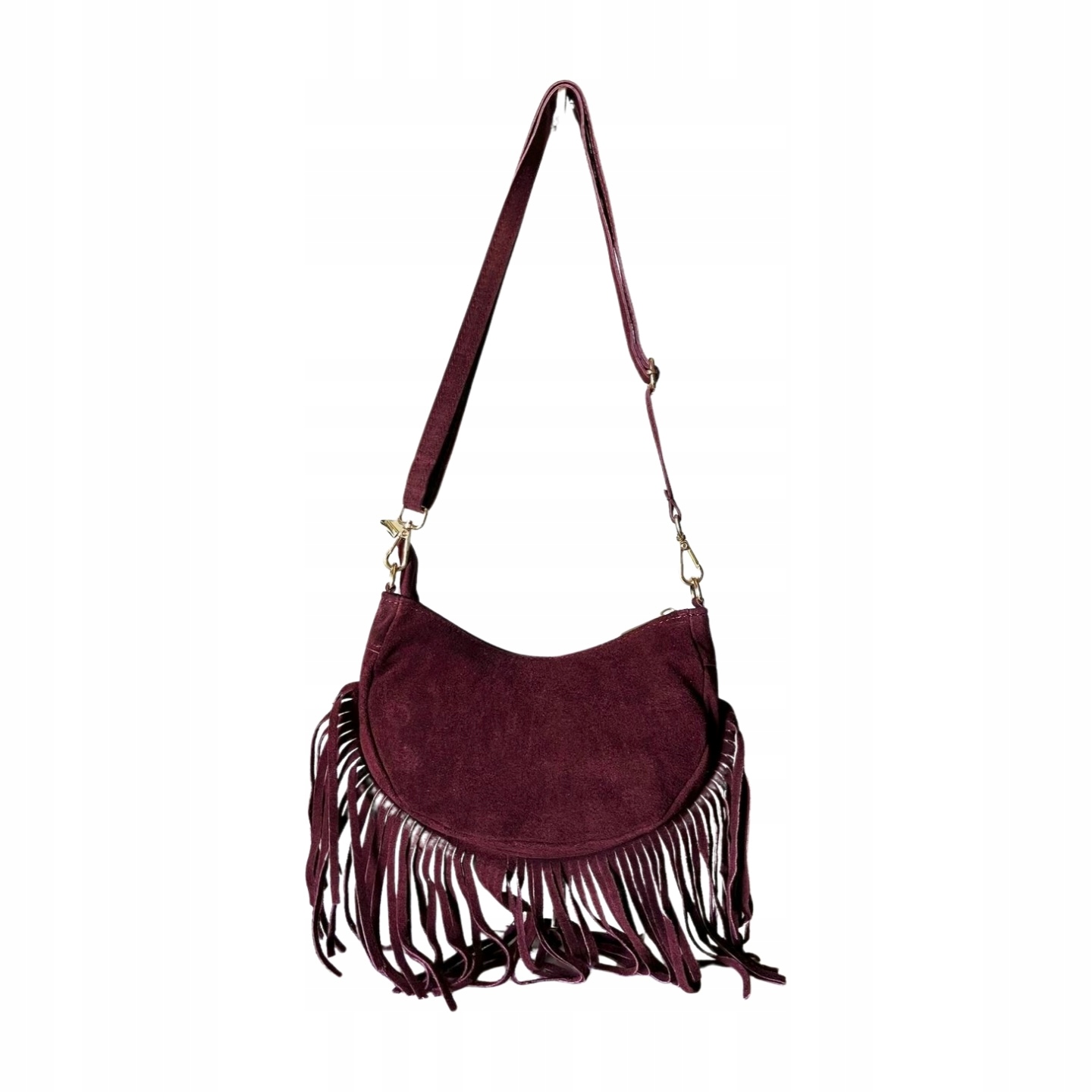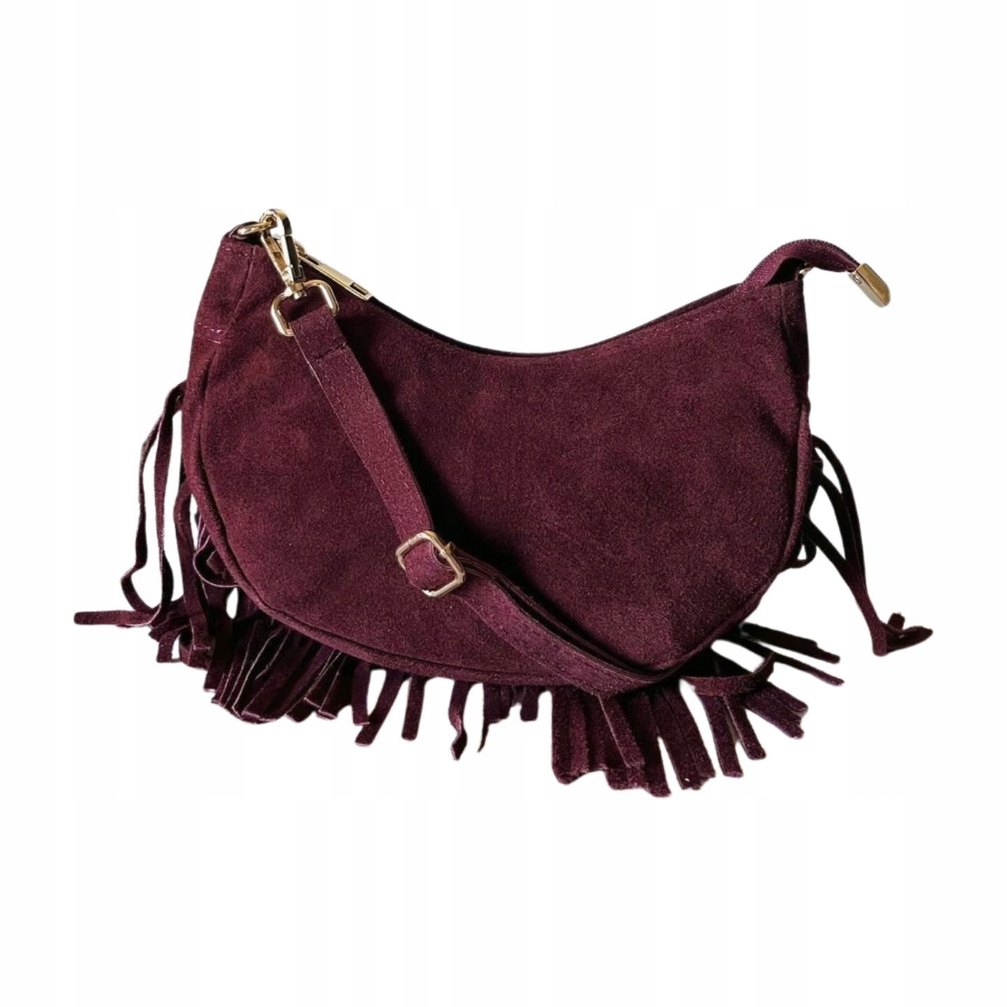 Vera Pelle - Włoska bordowa skórzana torebka listonoszka wykonana z wysokogatunkowej naturalnej skóry zamszowej.