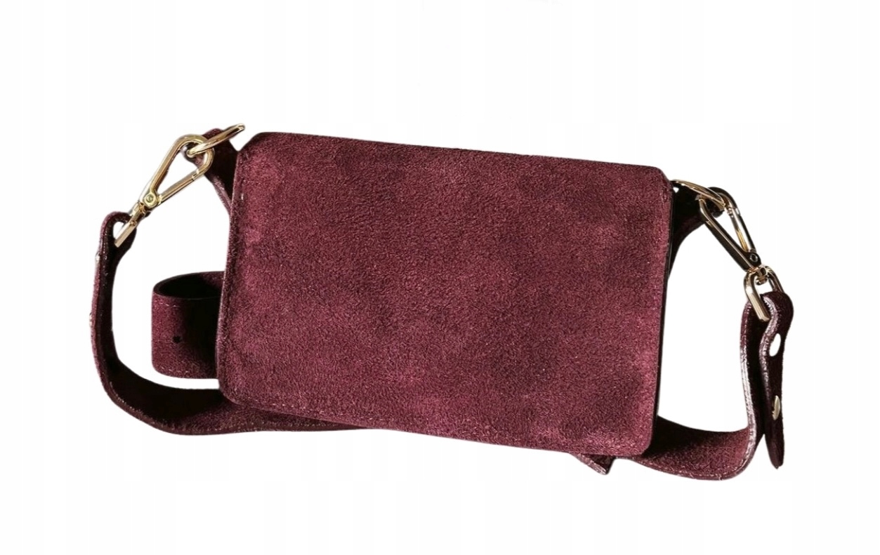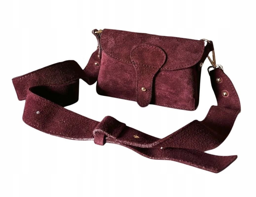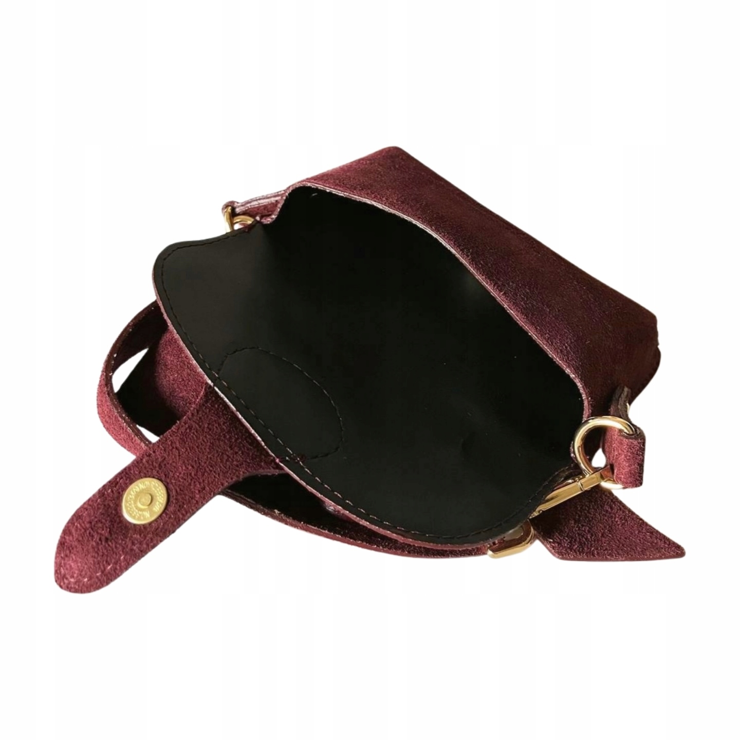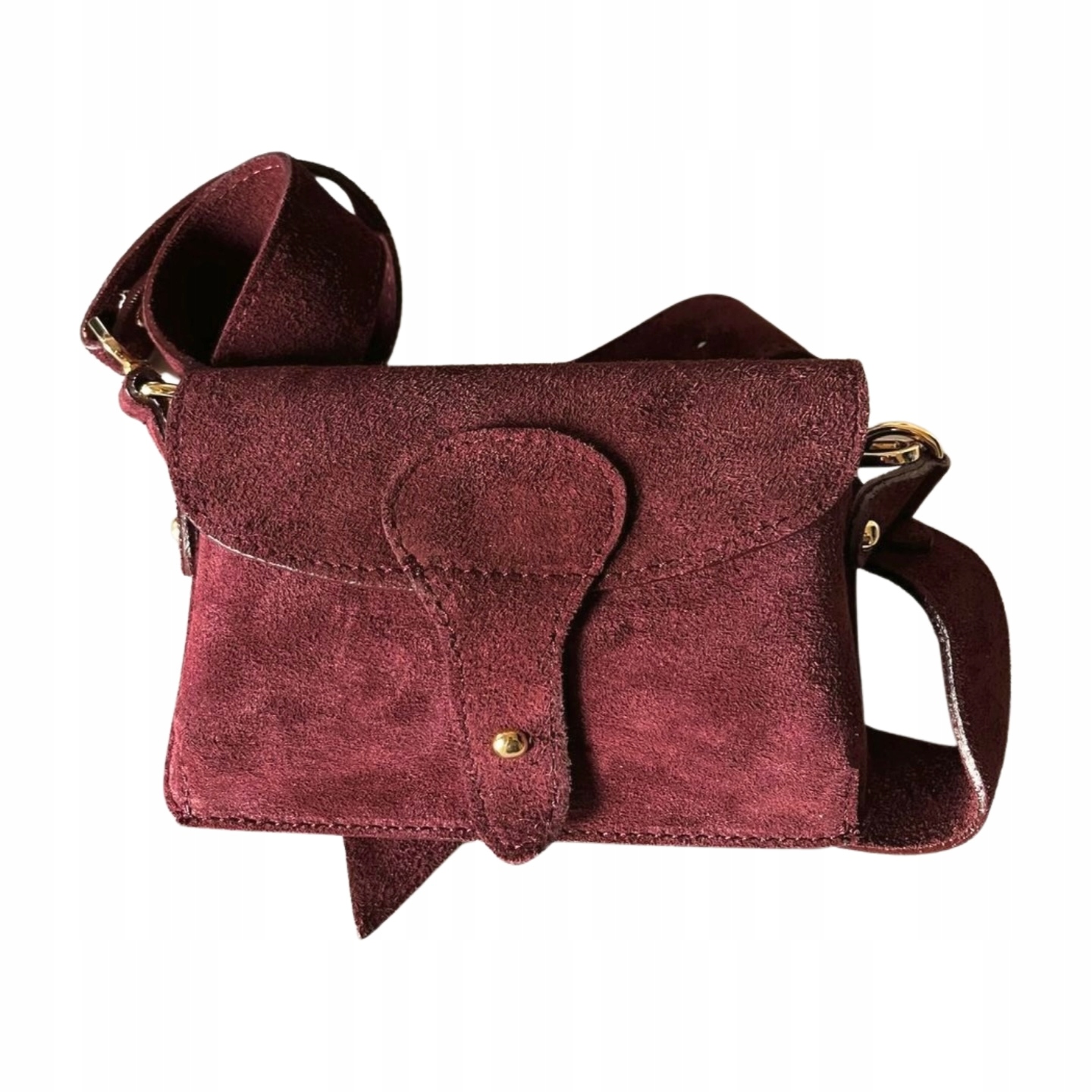 Vera Pelle - Włoska bordowa skórzana torebka listonoszka wykonana z wysokogatunkowej naturalnej skóry zamszowej.
