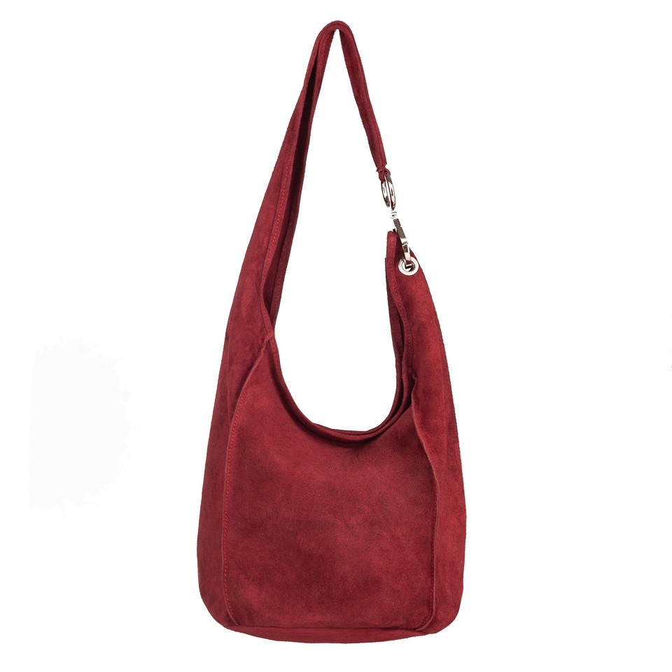 Włoska skórzana torebka worek wykonana w 100% z naturalnej skóry zamszowej najwyższej jakości. Zamsz nie farbuje. Torebka zamykana z góry na zamek. Torebka jednokomorowa przedzielona dużą kieszenią na suwak. Wewnątrz jedna kieszonka na zamek. Wnętrze wykończone gładką skórą naturalną. Metalowe elementy w kolorze srebrnym. Szeroki pasek zapewni wygodne noszenie na ramieniu.