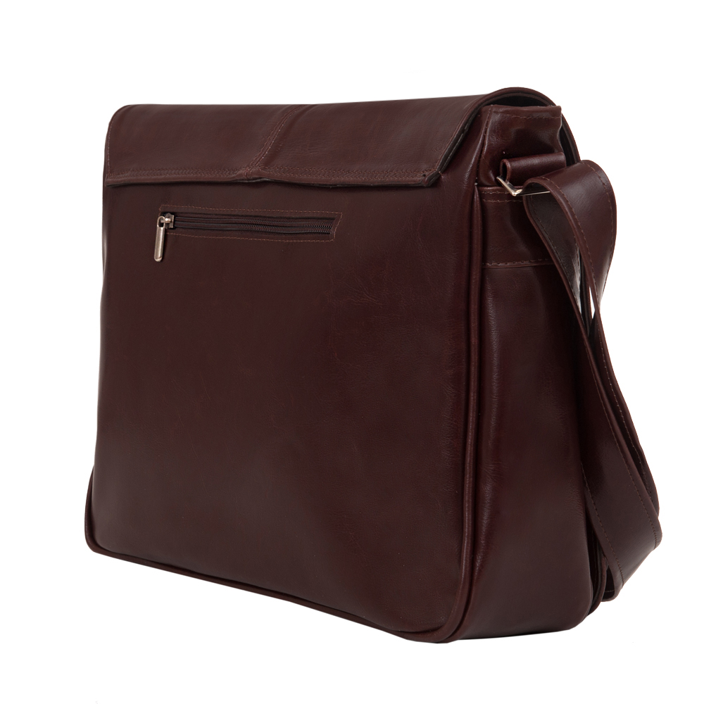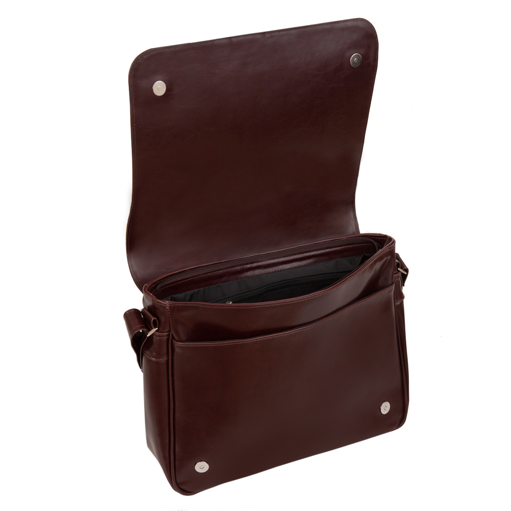 Polska skórzana torba wykonana z wysokogatunkowej naturalnej skóry licowej. Zamykana na solidną klapę + suwak na całej długości. Torba dwukomorowa przedzielona dużą kieszenią na suwak. Dodatkowo wewnątrz jedna kieszeń na zamek + kieszonka na telefon + miejsce na wizytówki, długopisy. Z tyłu torby pojemna kieszeń na suwak. Wnętrze wykończone trwałą, czarną podszewką. Od spodu usztywniona oraz podbita metalowymi nóżkami, przeciw niszczeniu się spodu. Elementy wykończenia w kolorze srebrnym. Długi, szeroki (3,5cm) regulowany pasek na ramię umożliwia wygodne noszenie.
