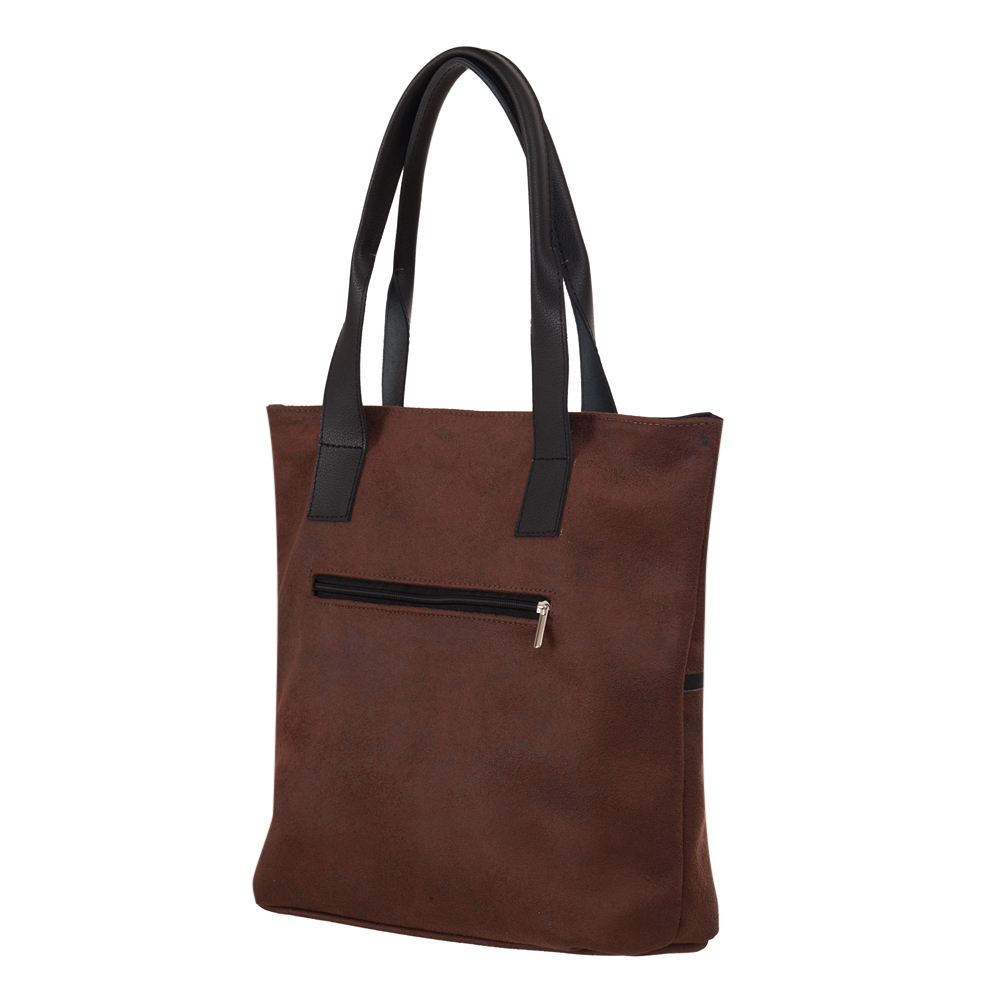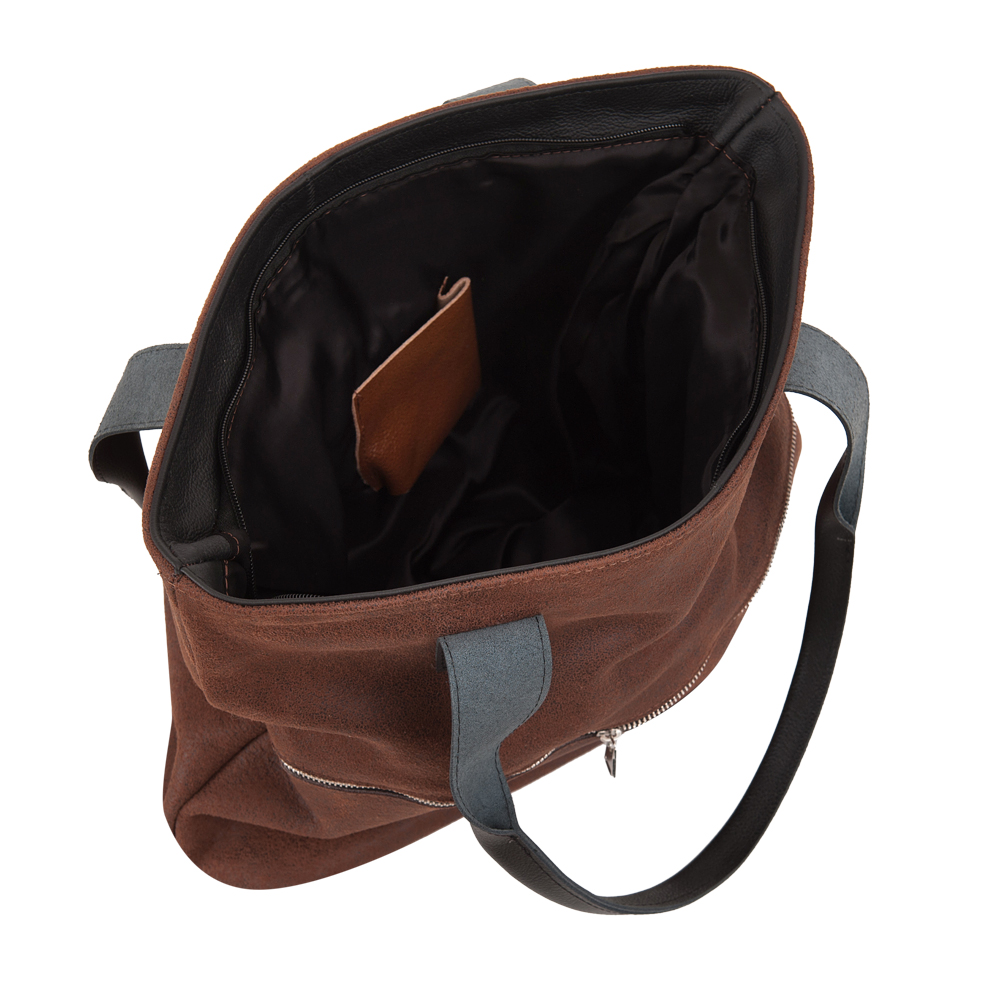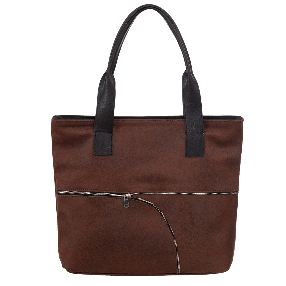 Skórzana modna, pojemna torebka wykonana w całości z miękkiej skóry naturalnej. Zamykana od góry na zamek na całej szerokości. Torebka jednokomorowa. Wewnątrz jedna kieszonka na zamek oraz jedna na telefon. Dodatkowo z tyłu kieszonka na zamek. Wnętrze wykończone trwałą, czarną podszewką. Metalowe elementy w kolorze srebrnym. Dno torebki usztywnione.