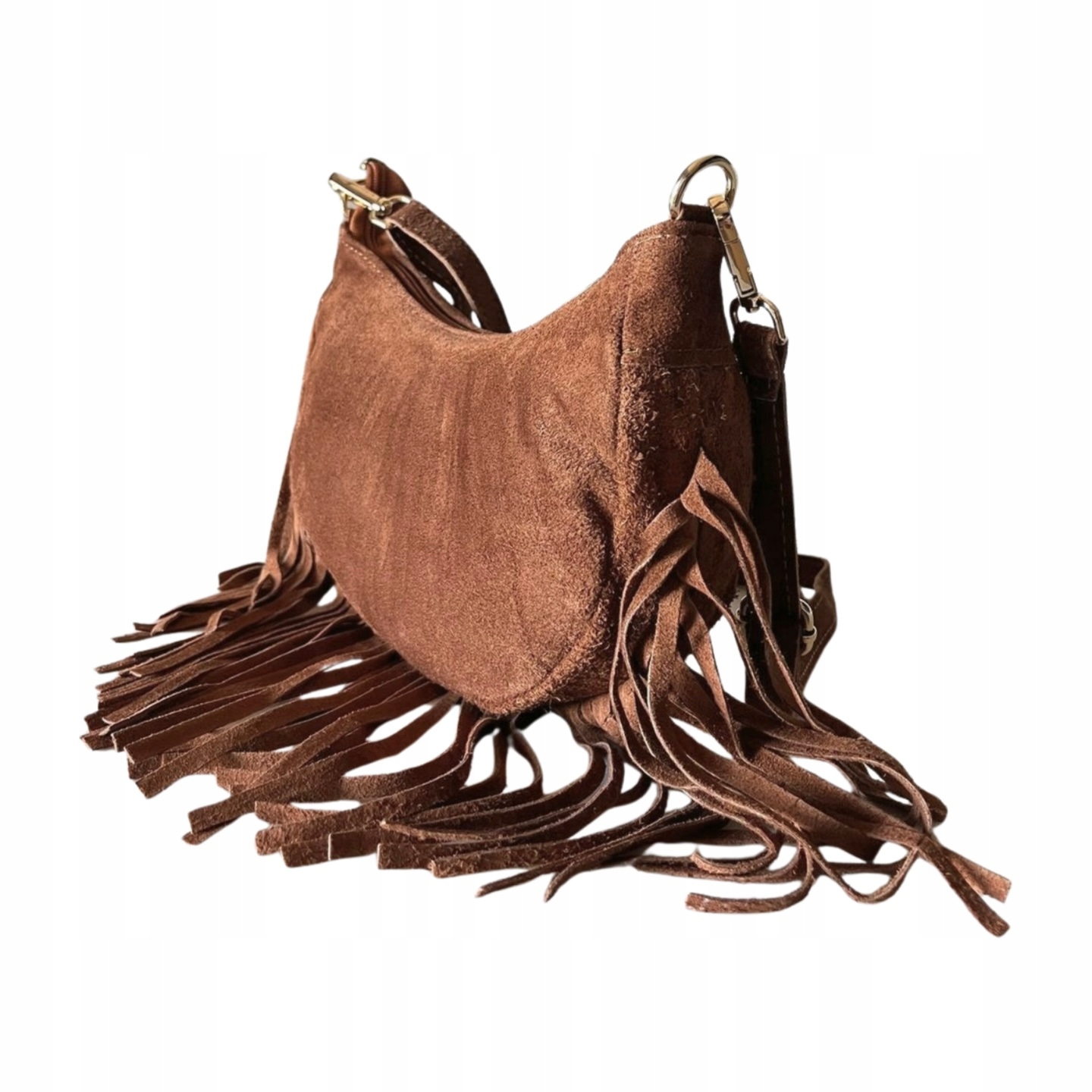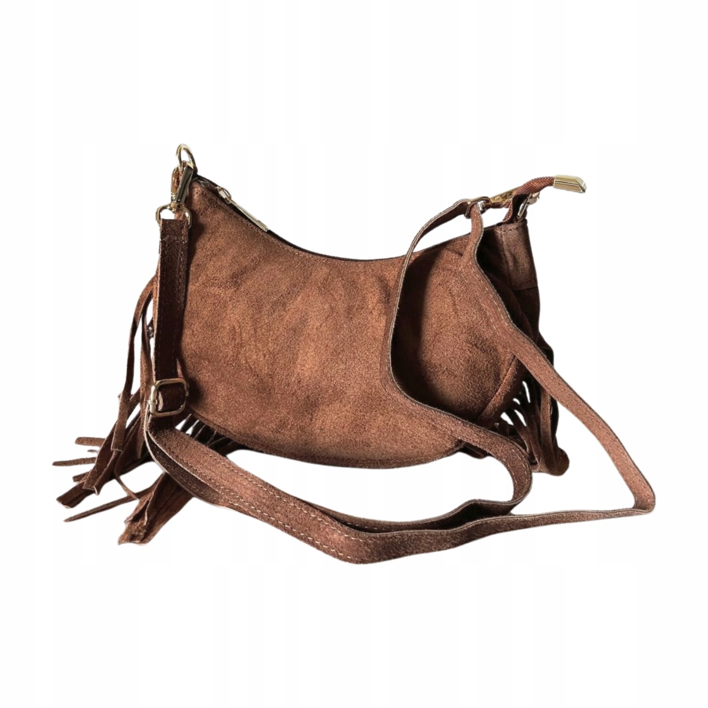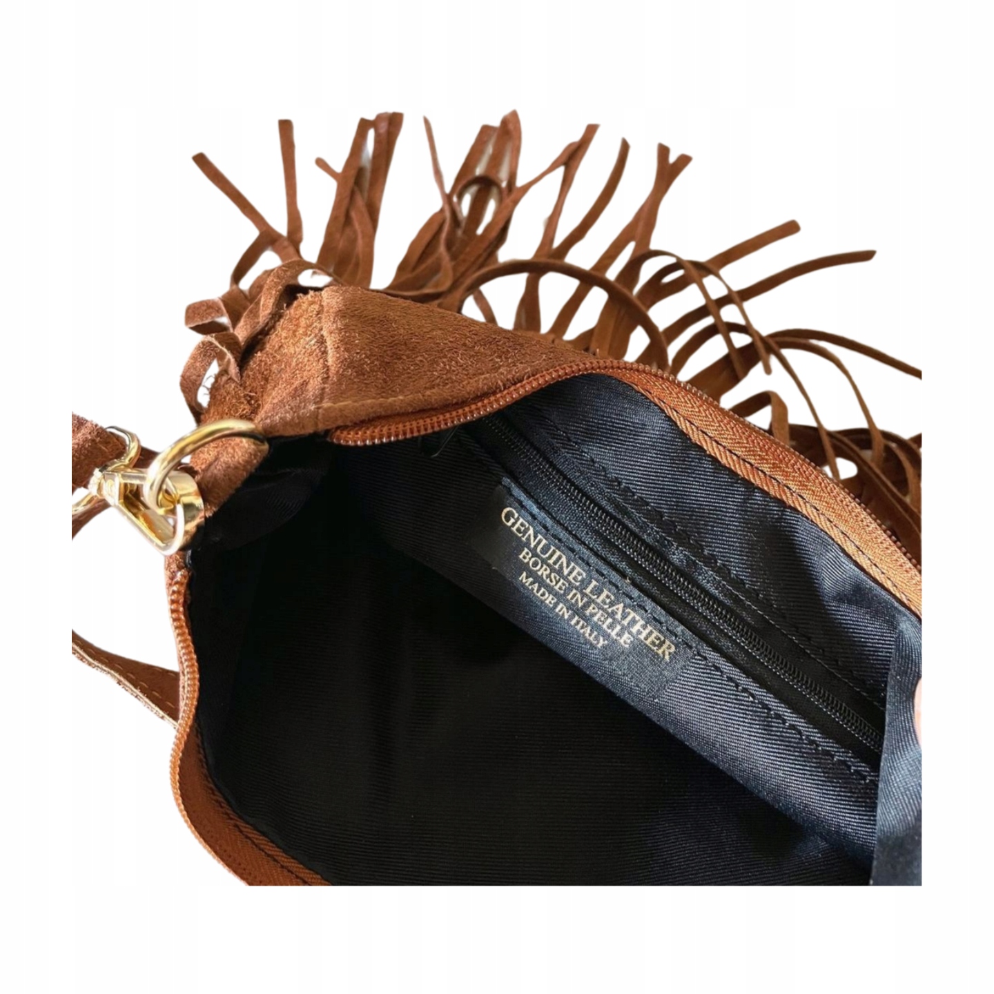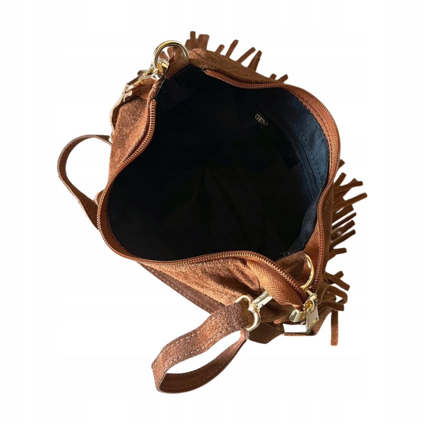 Vera Pelle - Włoska brązowa karmelowa skórzana torebka listonoszka wykonana z wysokogatunkowej naturalnej skóry zamszowej.