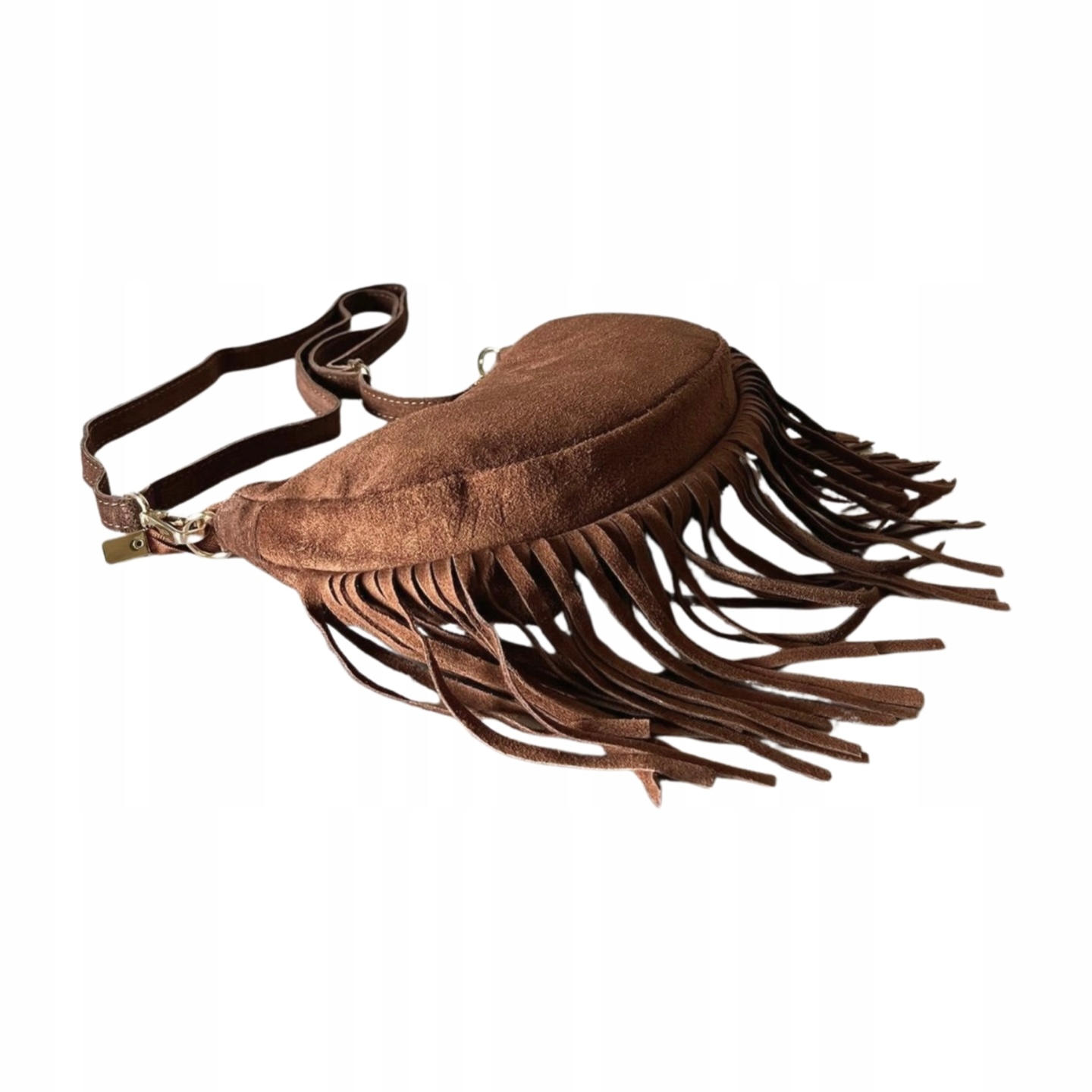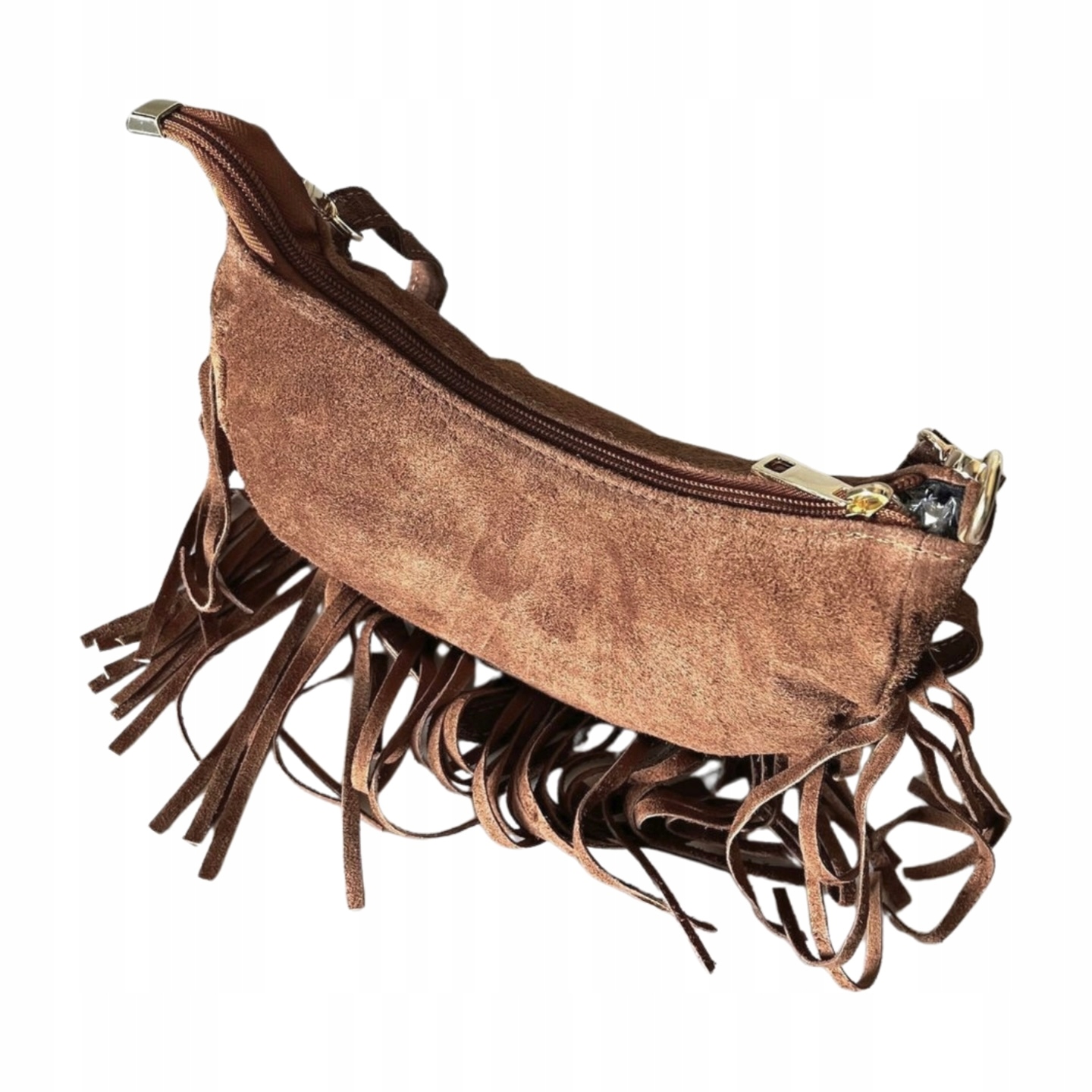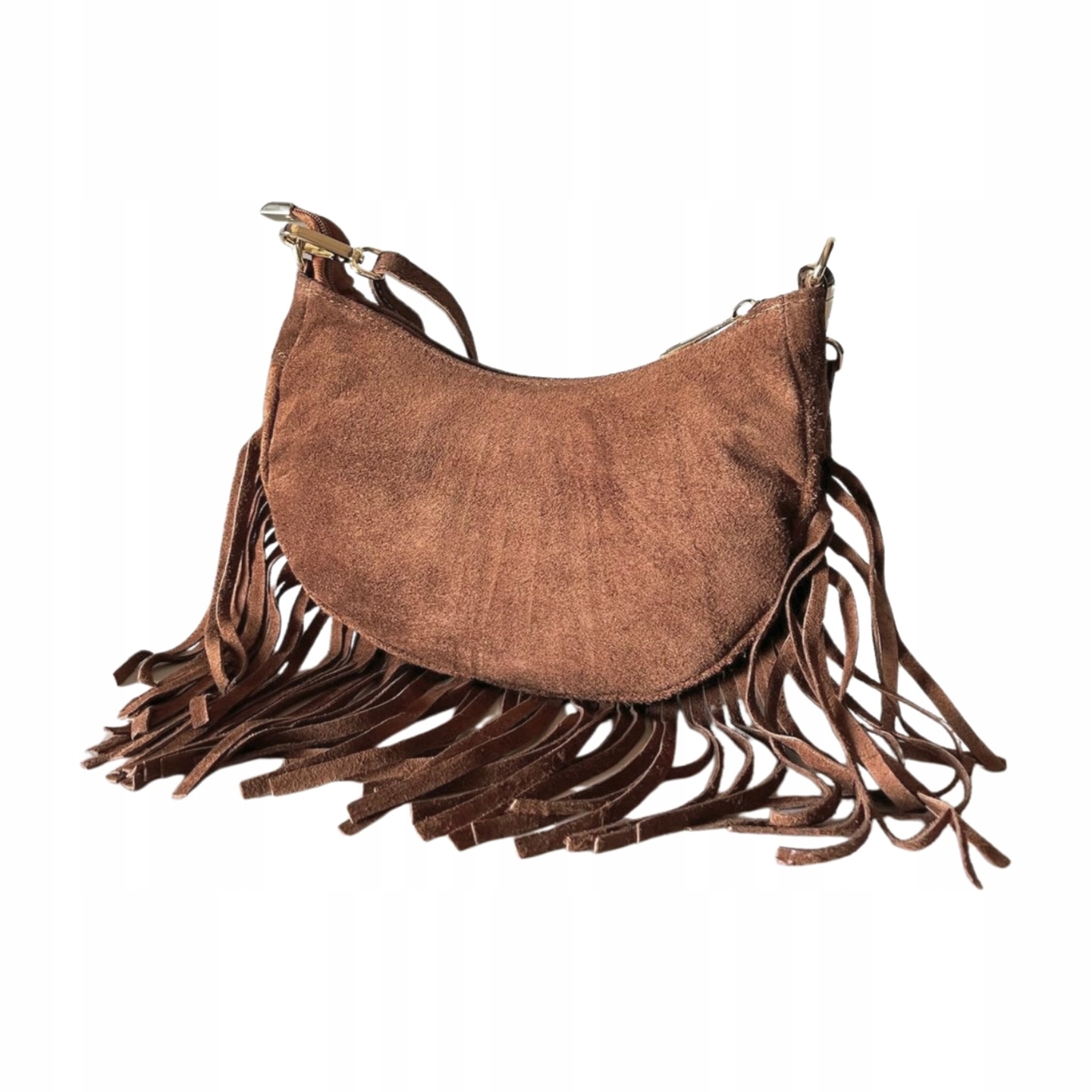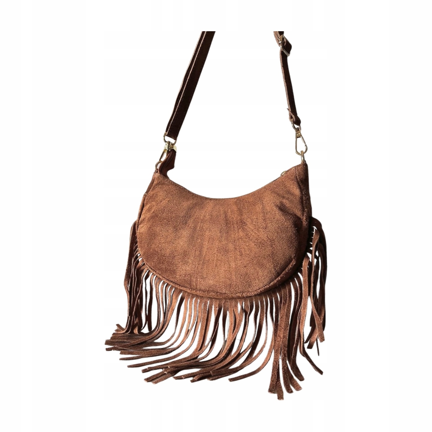 Vera Pelle - Włoska brązowa karmelowa skórzana torebka listonoszka wykonana z wysokogatunkowej naturalnej skóry zamszowej.